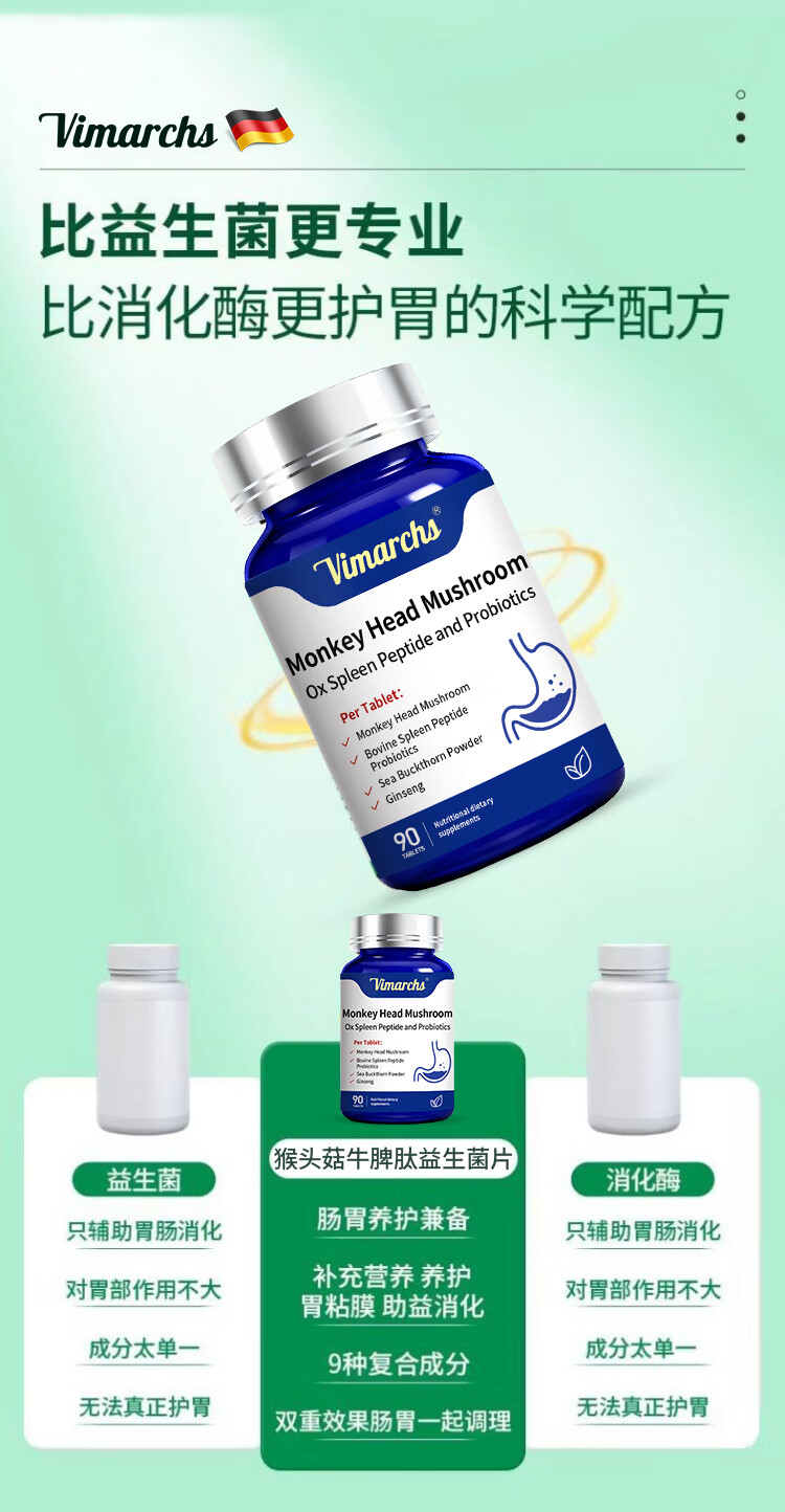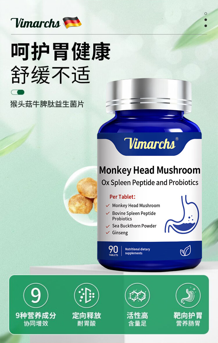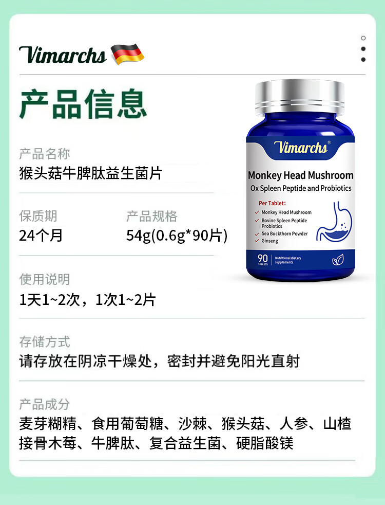 VIMARCHS年货德国益生菌咀嚼片肠胃道脾菌群成人儿童营养虚弱活性调理 90片*2瓶