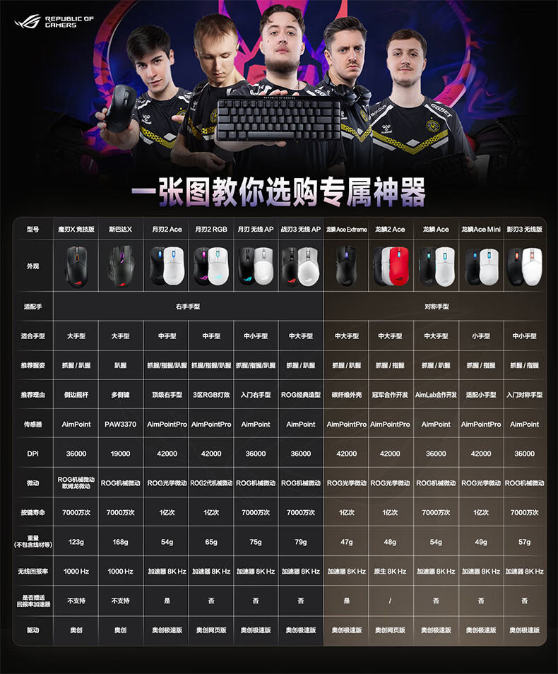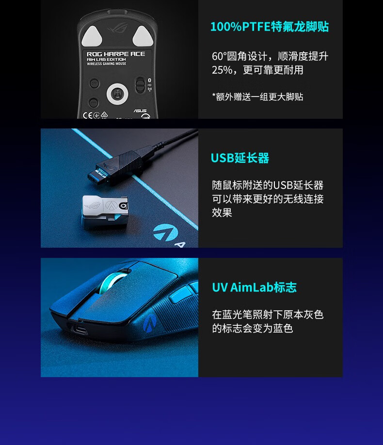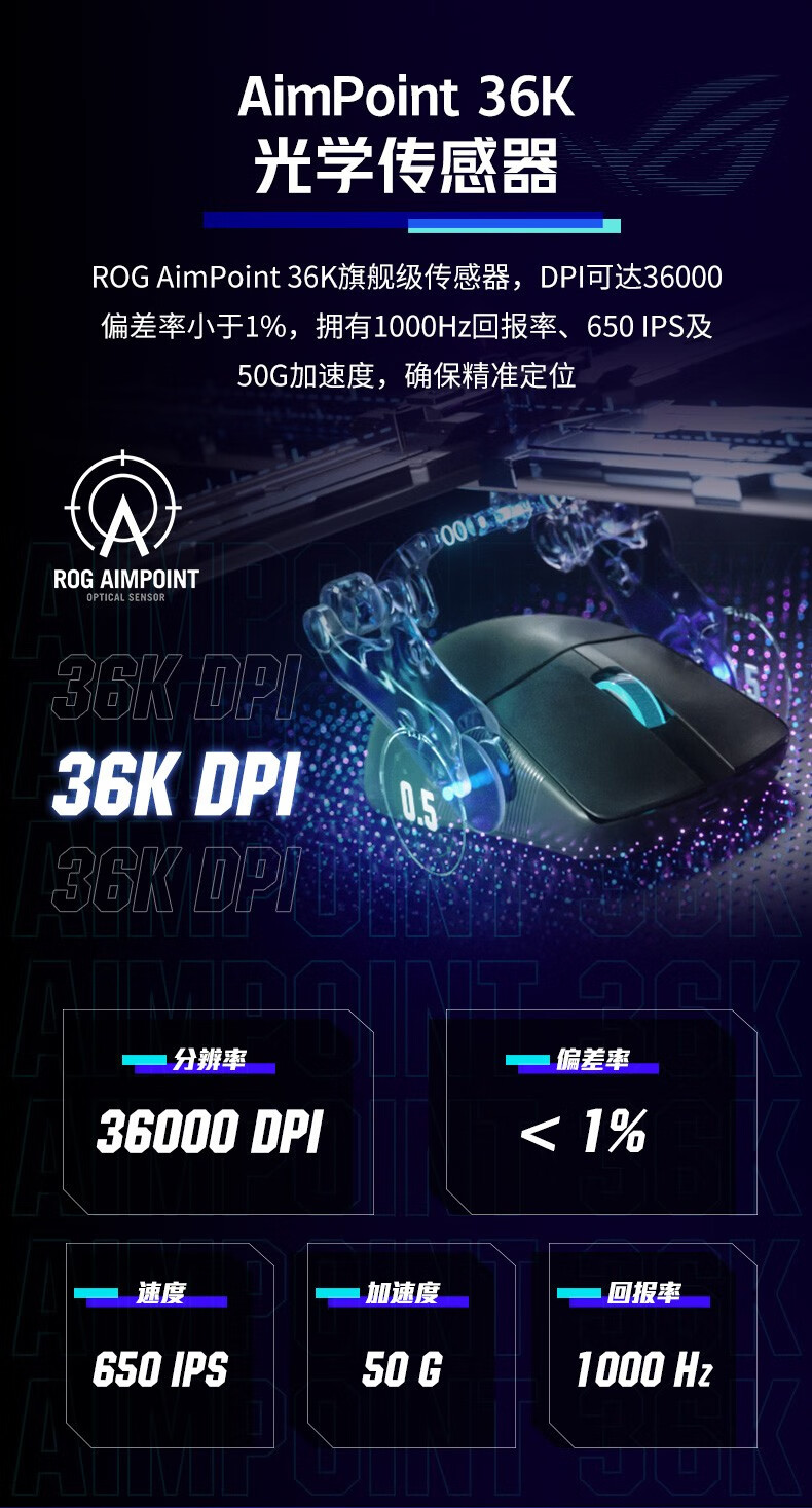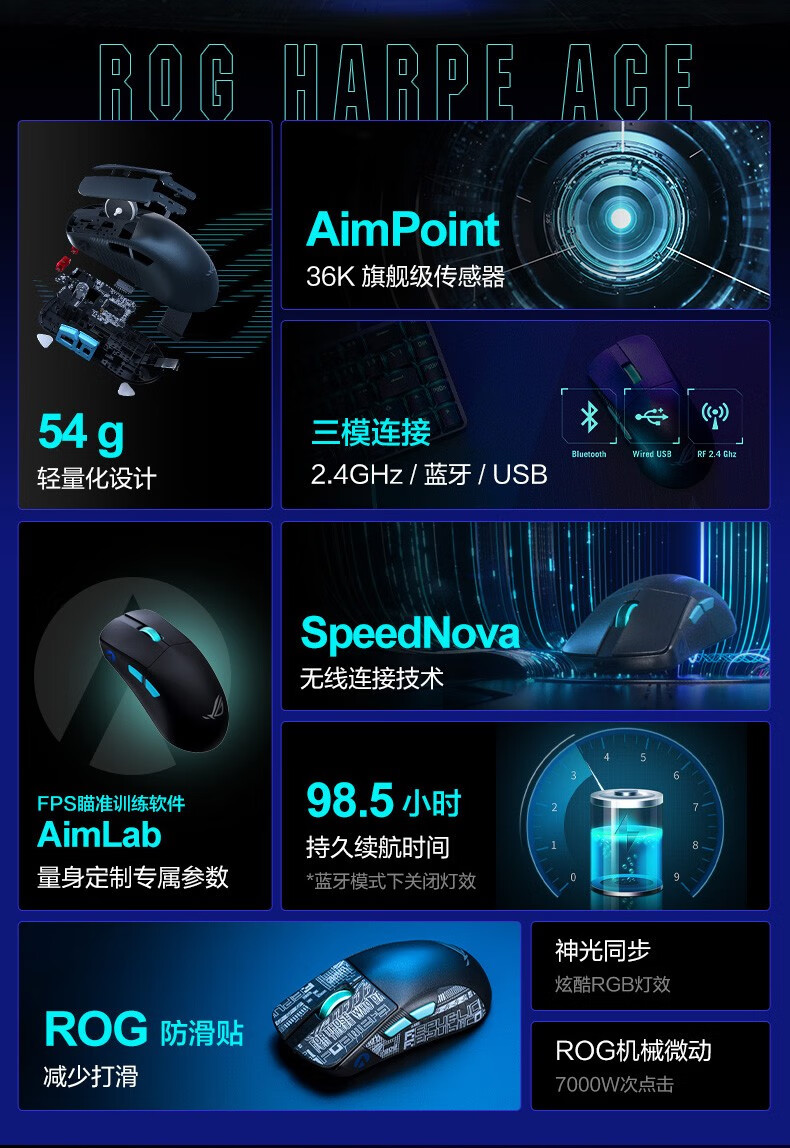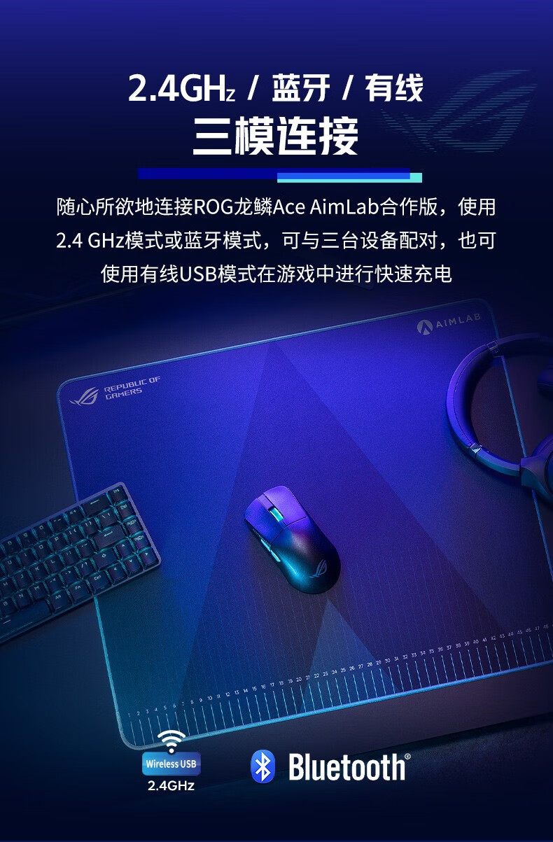 ROG龙鳞ACE X AimLab合作版 AimPoint 36k传感器 无线蓝牙三模游戏电竞鼠标 玩家国度鼠标 轻量化54g 龙鳞 Mini 标准版