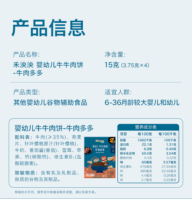 禾泱泱婴幼儿牛牛肉饼牛肉多多15g宝宝零食高钙高蛋白溶豆6月+