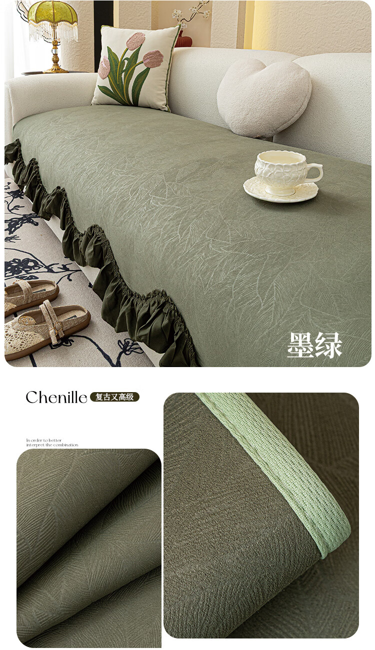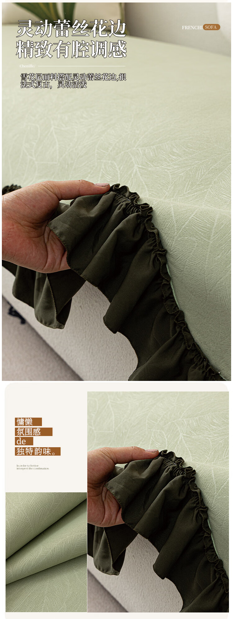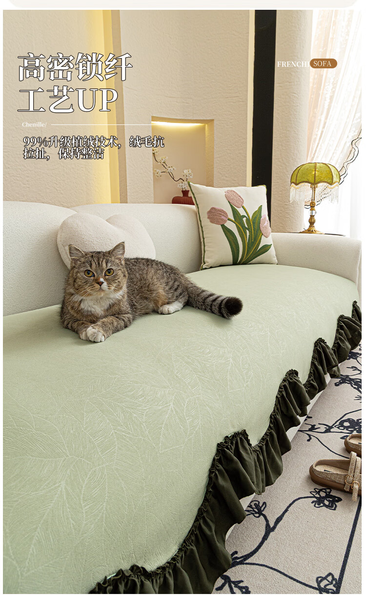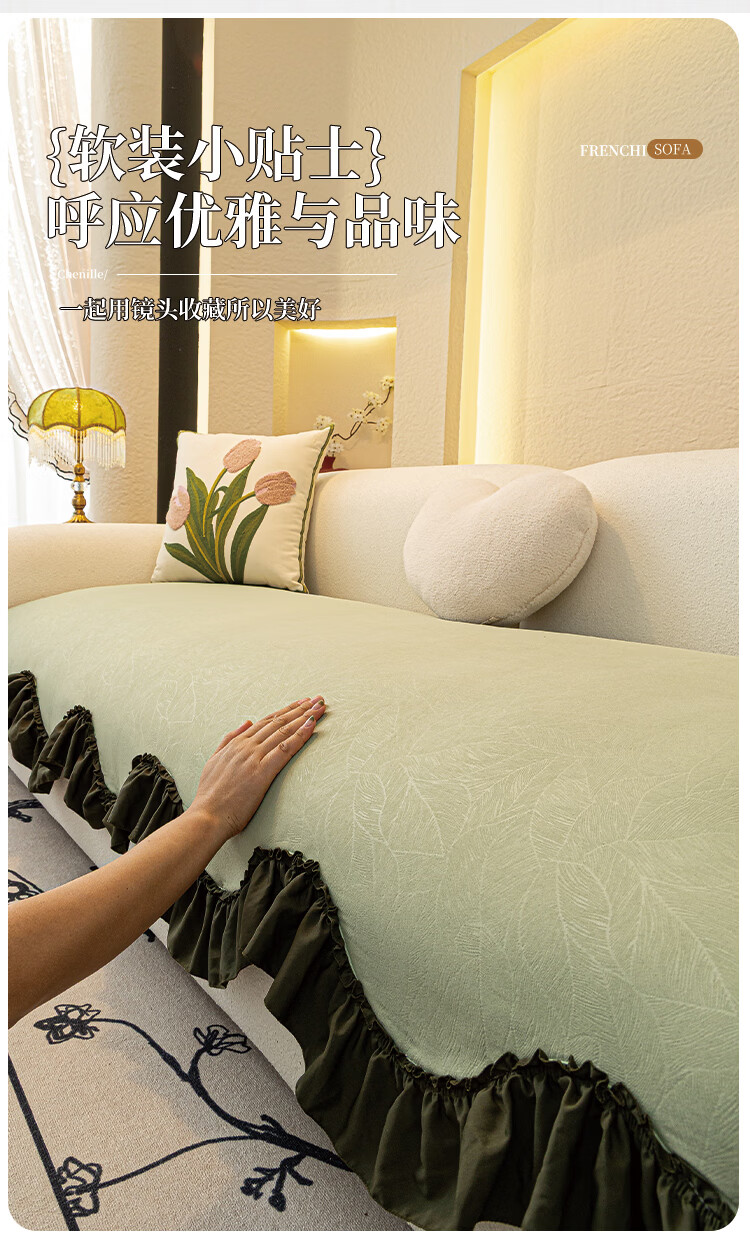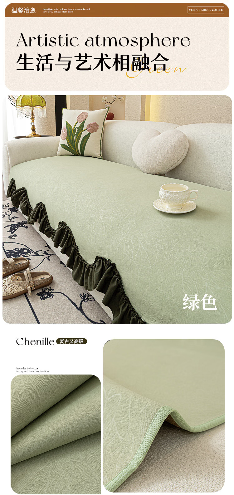金拾美月2025新款四季通用沙发垫直排裙边盖布巾高级感防滑沙发坐垫套罩 盎然-绿色 70cm*70cm