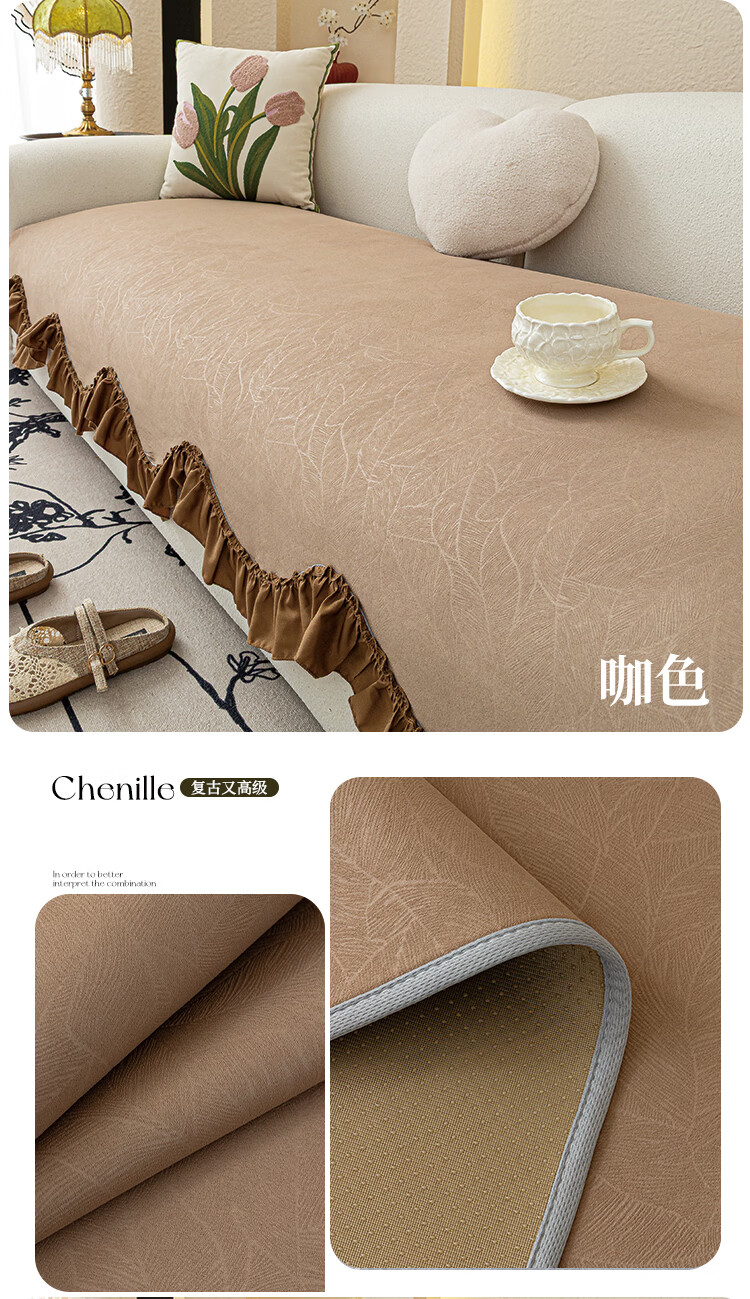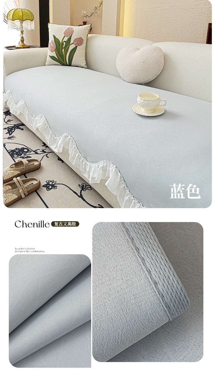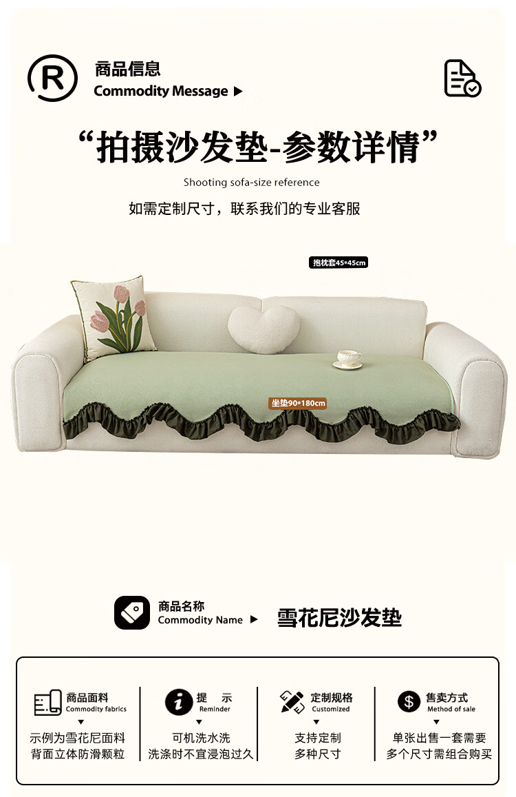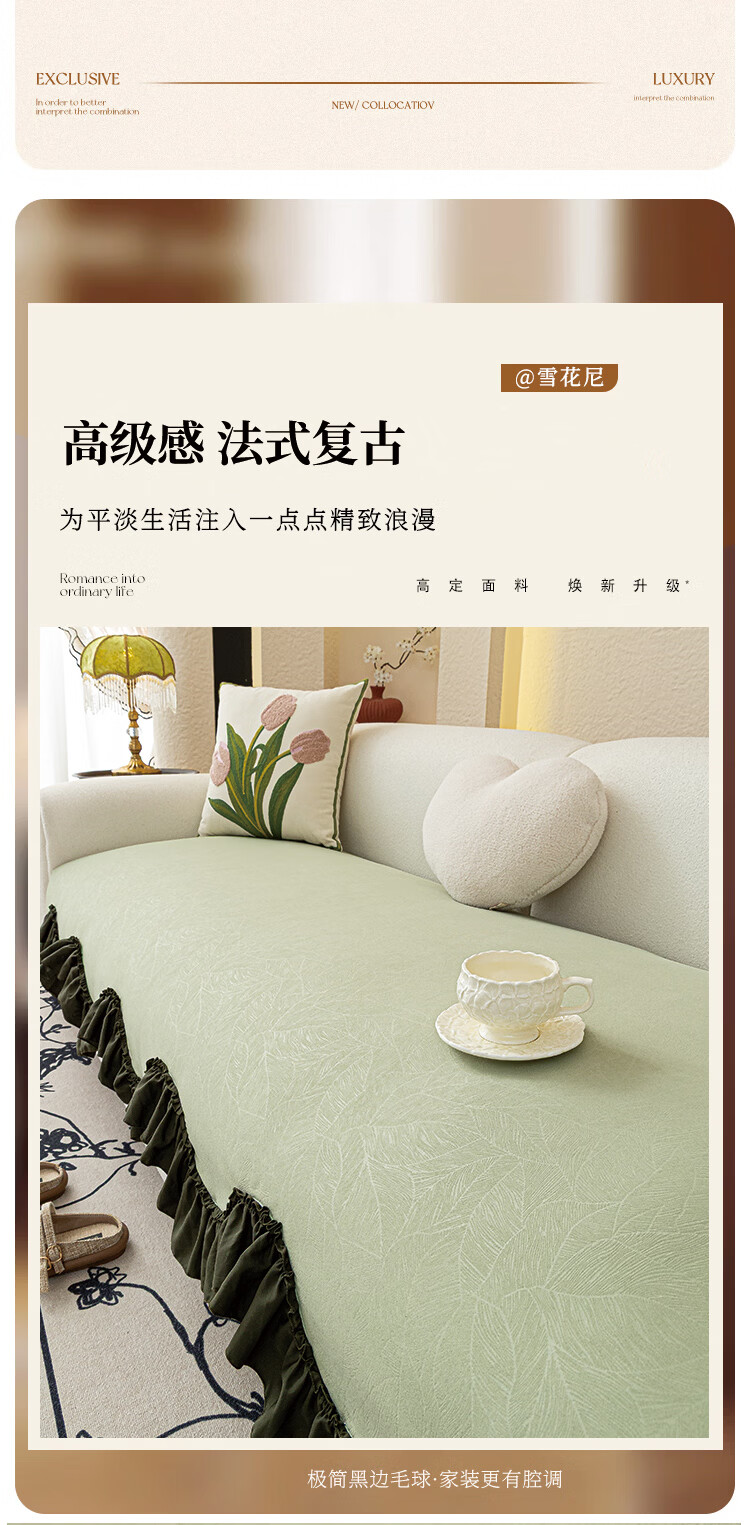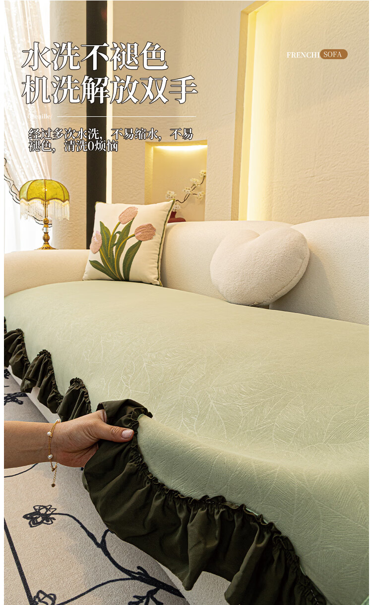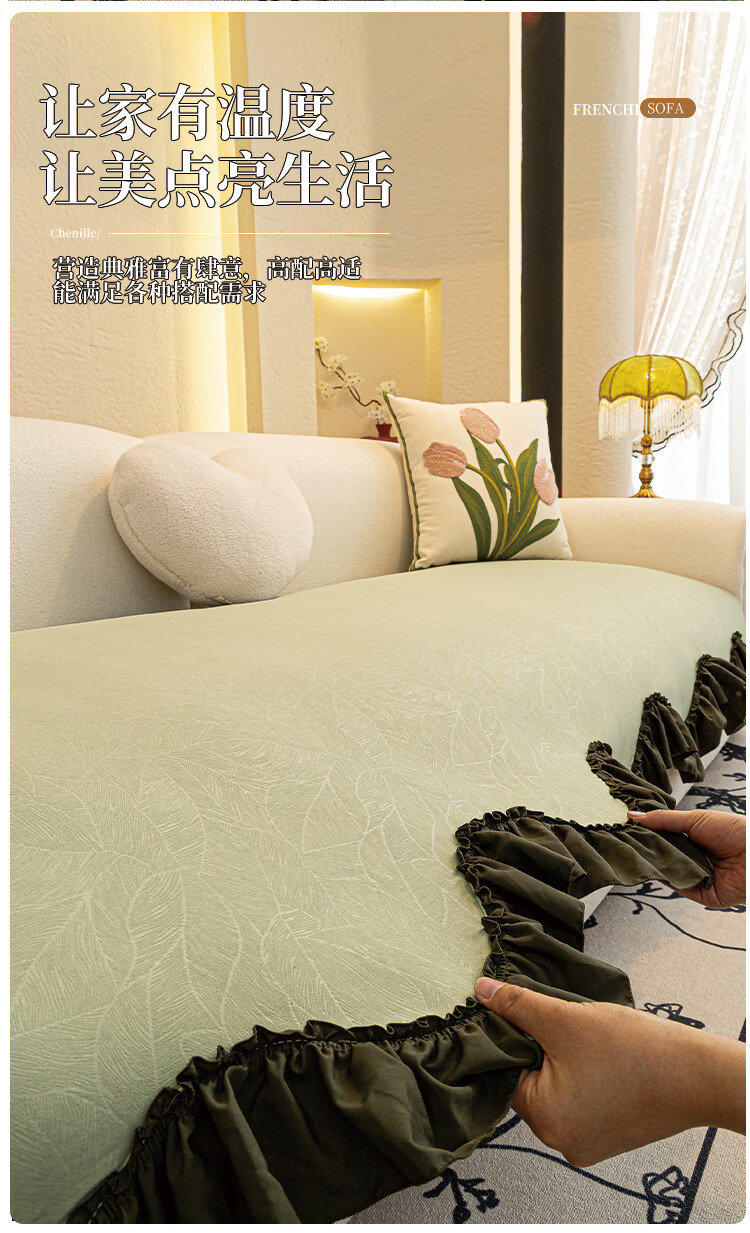 金拾美月2025新款四季通用沙发垫直排裙边盖布巾高级感防滑沙发坐垫套罩 盎然-绿色 70cm*70cm