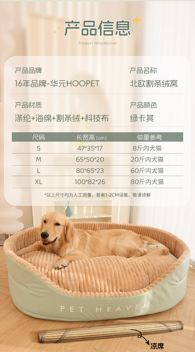 华元宠具(hoopet)狗窝四季通用狗狗床中大型犬超大可拆洗宠物睡垫子秋冬季保暖猫窝