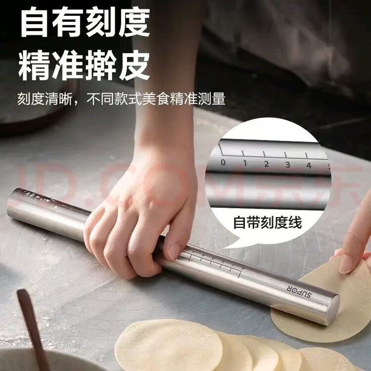 苏泊尔同款304不锈钢刻度擀面杖擀面棍加粗杆家用擀饺子皮神器 可调节刻度擀面杖 33cm