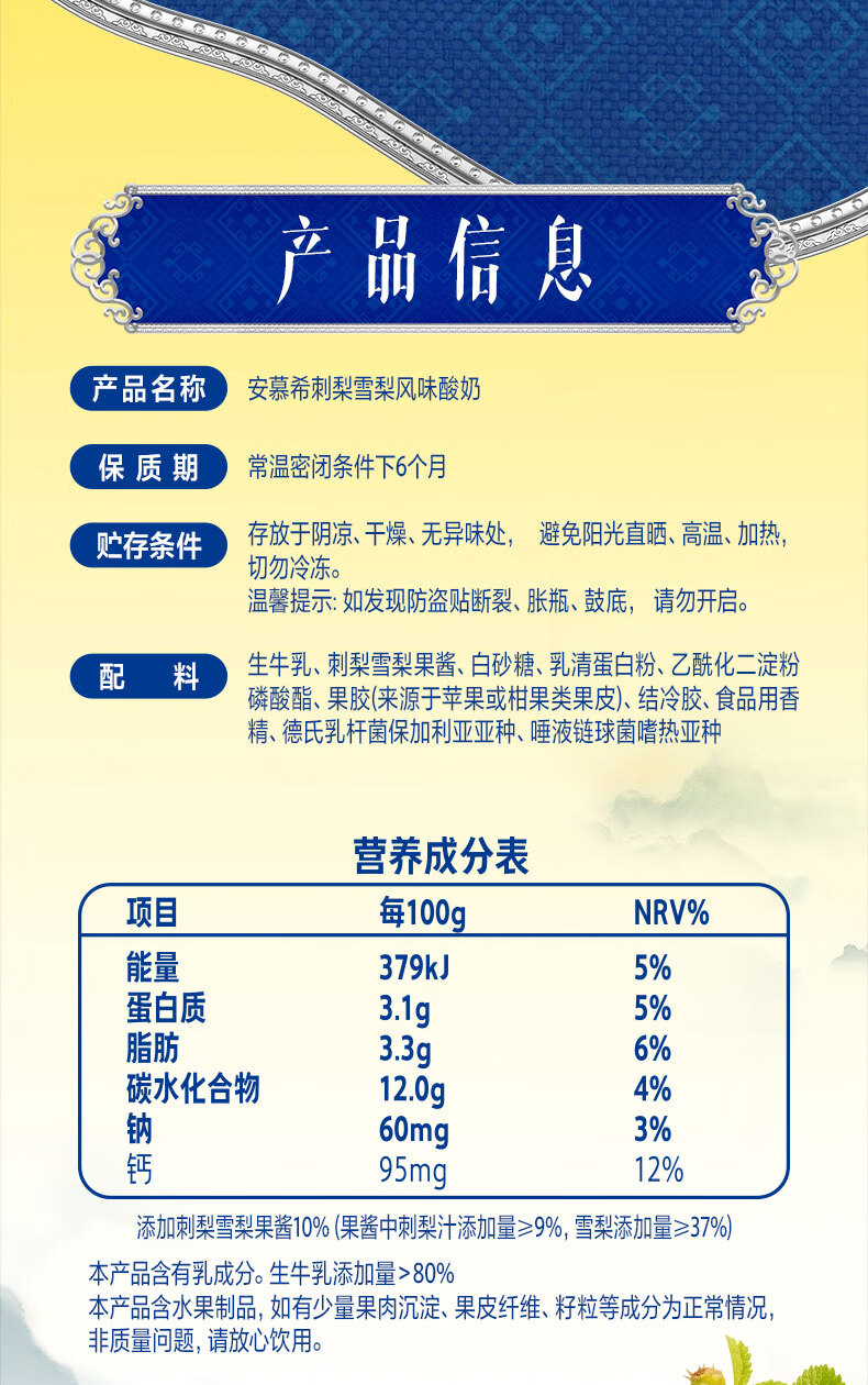 伊利安慕希刺梨雪梨风味酸奶230g*10瓶 礼盒装