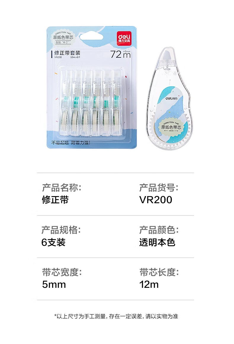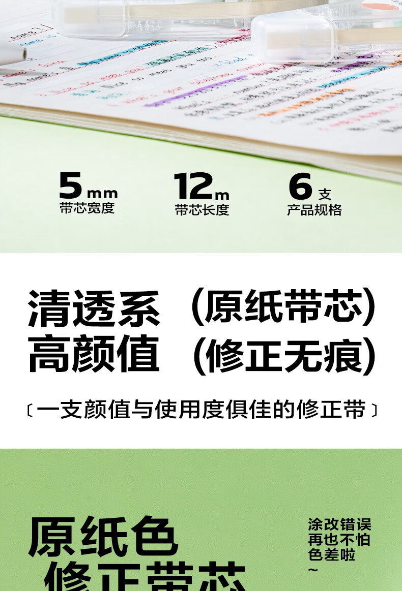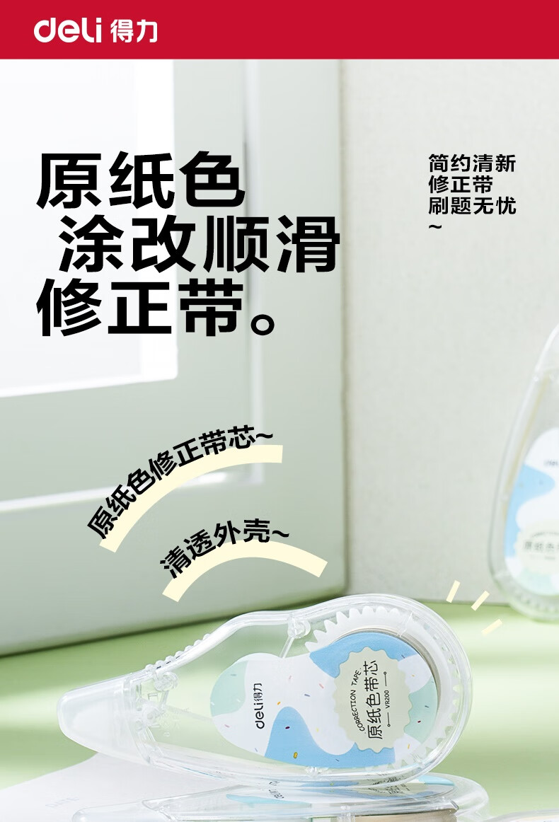 得力(deli)72米原纸色修正带隐形修正带修正带中小学生专用笔记本色大容量涂改带米黄色改正带护眼色开学无痕