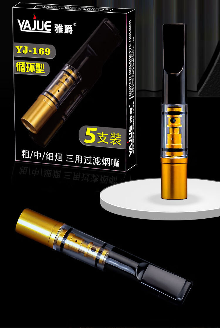 【直发】烟嘴过滤器过滤嘴男士循环型可清洗粗中细三用吸烟滤嘴 YAJUE-169 5支 一盒装【5支】
