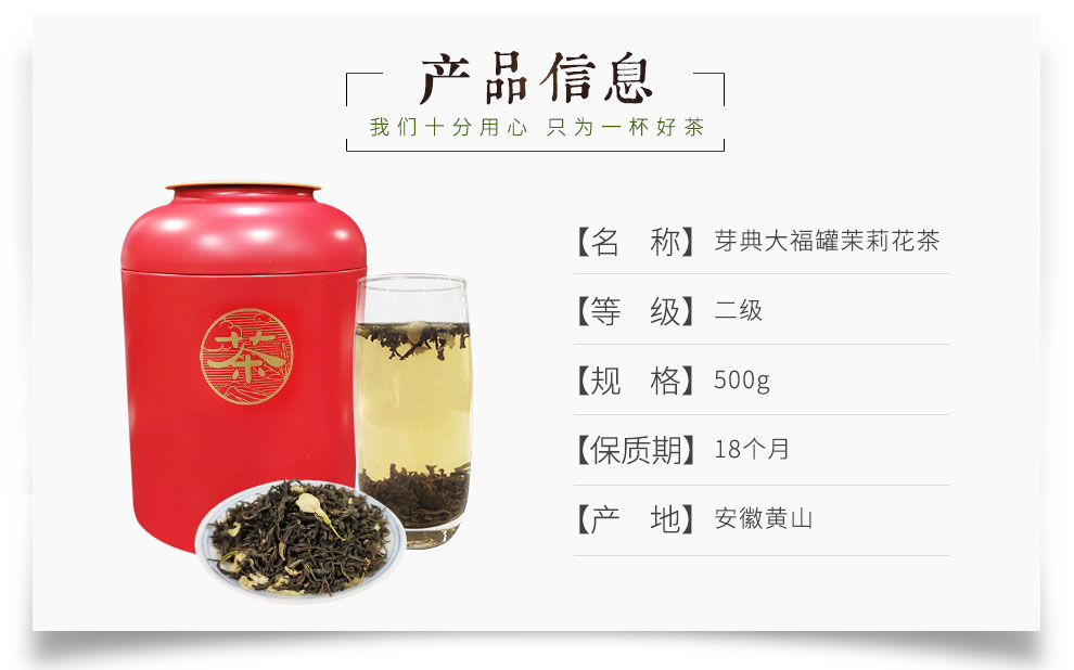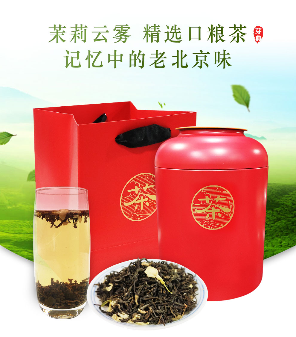 芽典 茉莉花茶 茉莉云雾老北京花茶茉莉香片 徽胚苏窨 福随礼至 大福罐500克