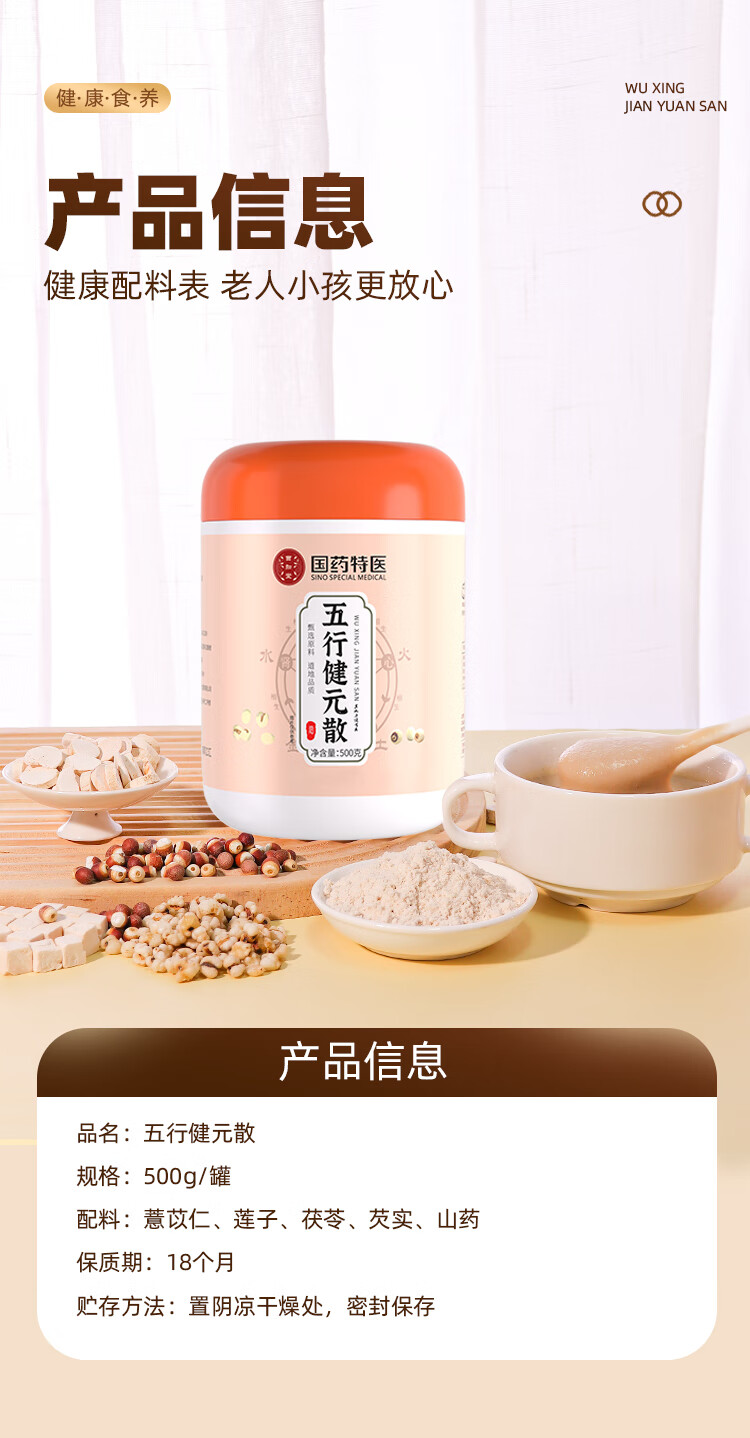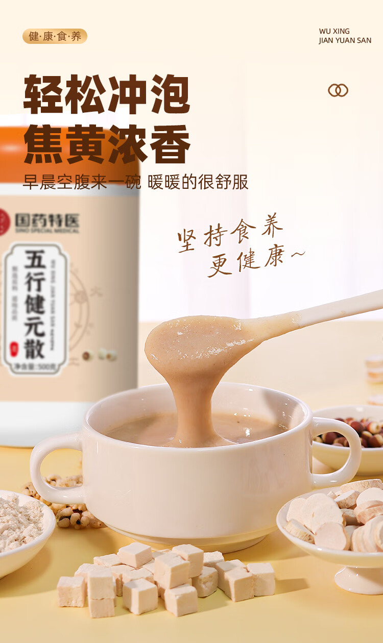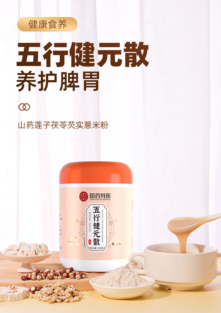 西知堂国药五行健睥散500g罐装芡实茯苓薏苡仁山药粉冲泡营养早餐 超值装 500g*5罐 【买三送二】