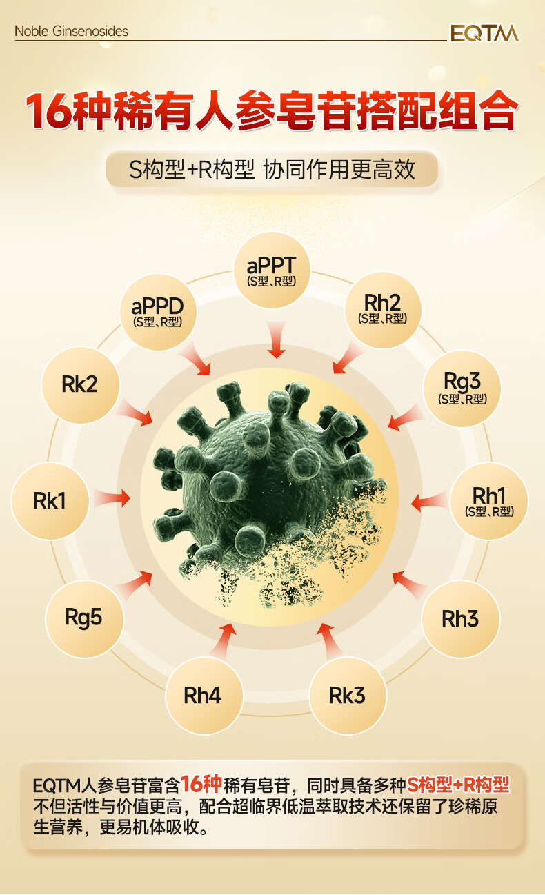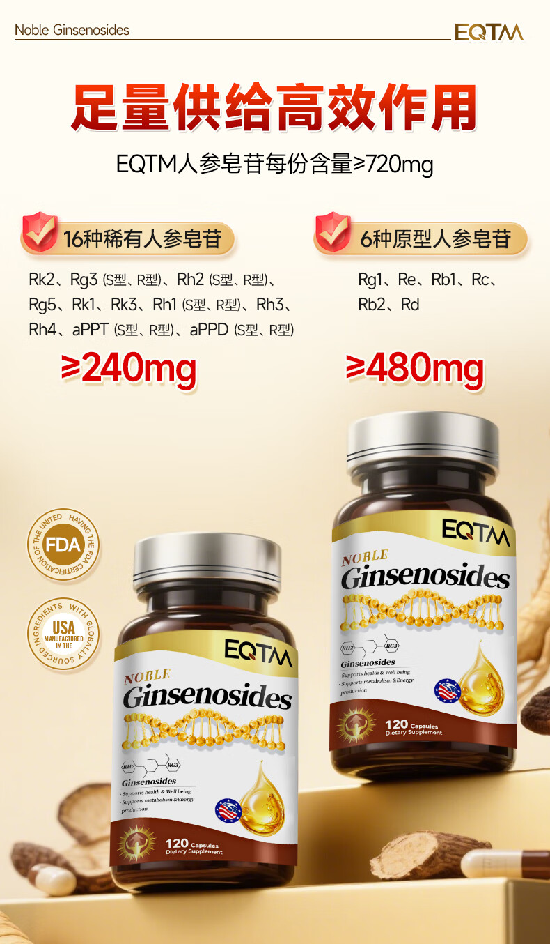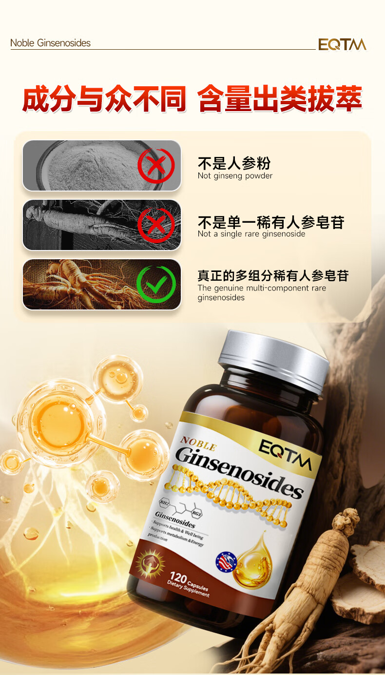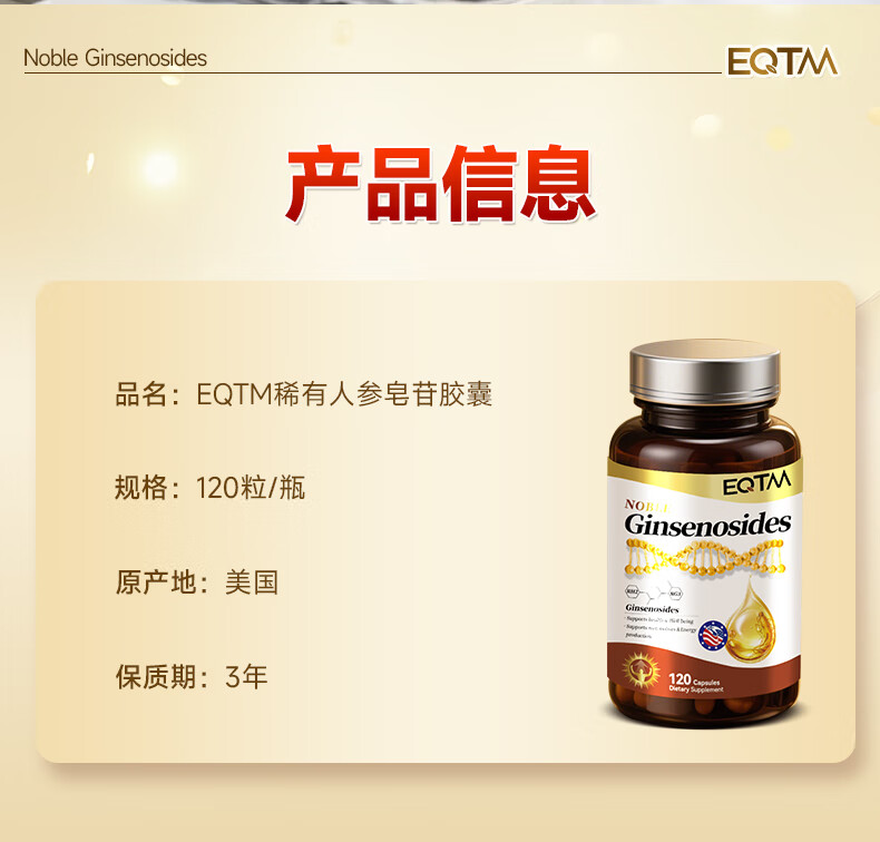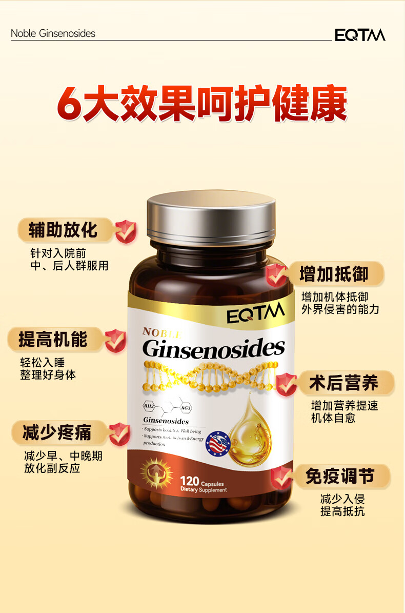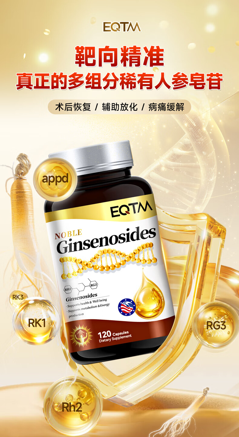 EQTM美国进口16种稀有人参皂苷胶囊rg3rh2放化疗术后营养品增强免疫 【3瓶周期装】增强免疫术后恢复 120粒*3瓶