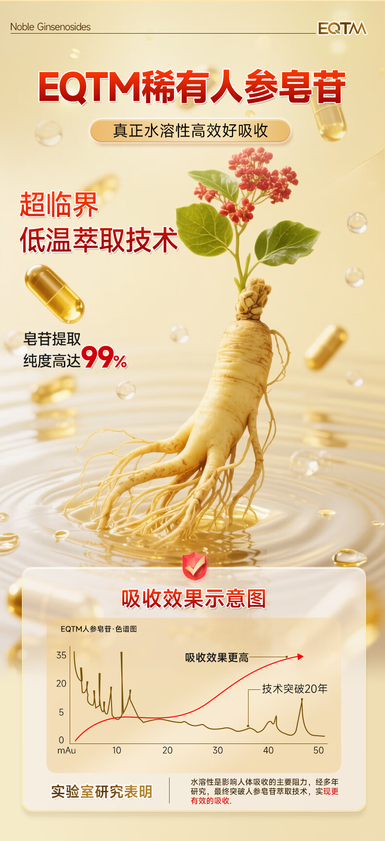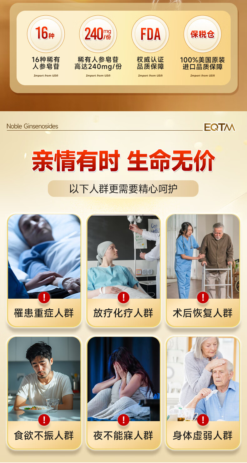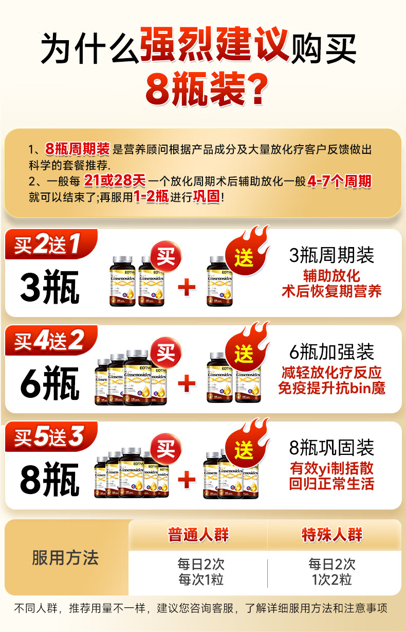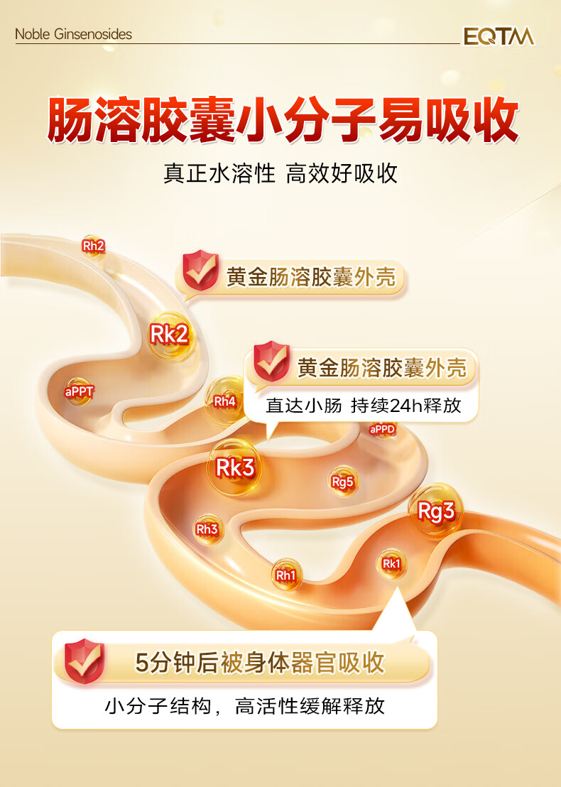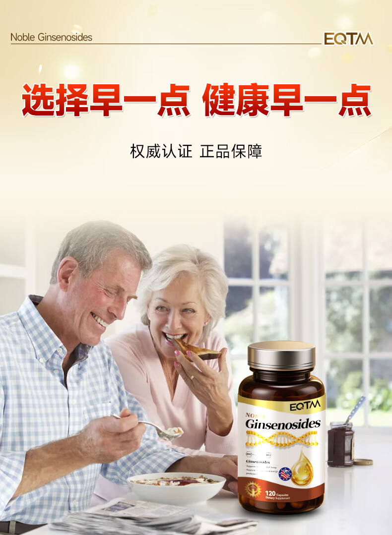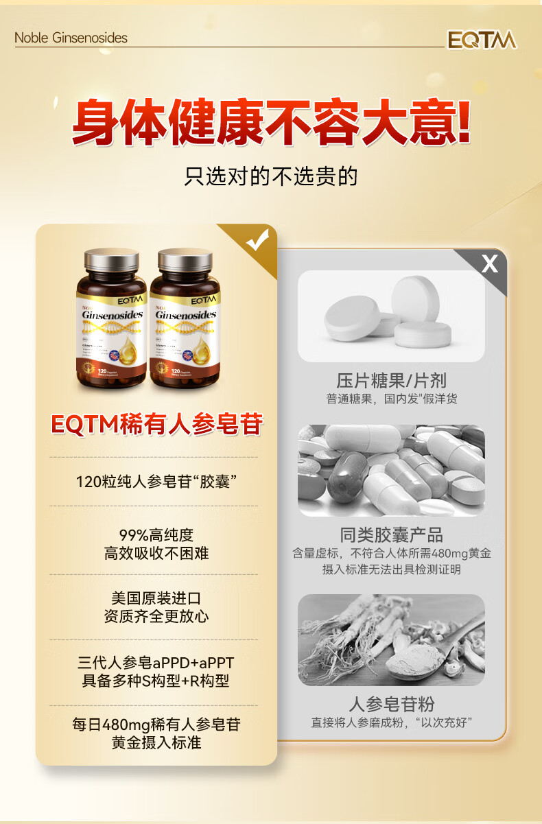 EQTM美国进口16种稀有人参皂苷胶囊rg3rh2放化疗术后营养品增强免疫 【3瓶周期装】增强免疫术后恢复 120粒*3瓶