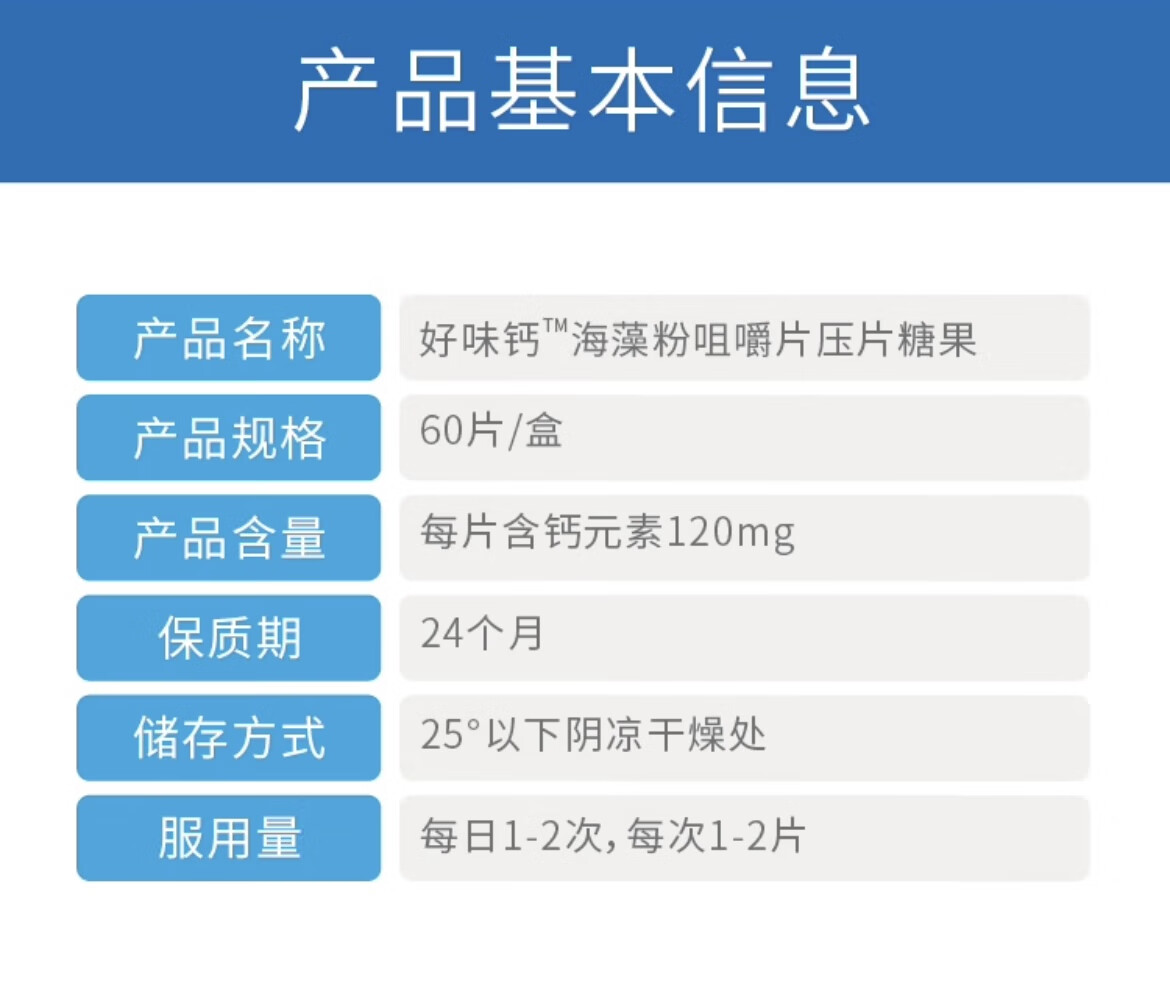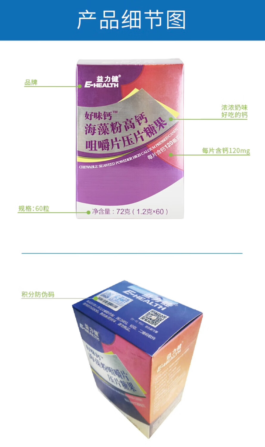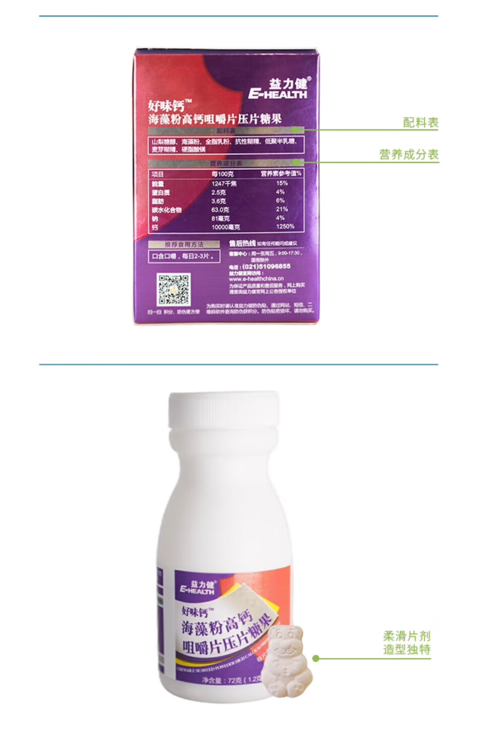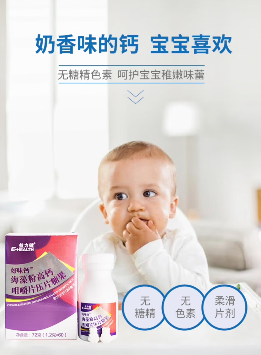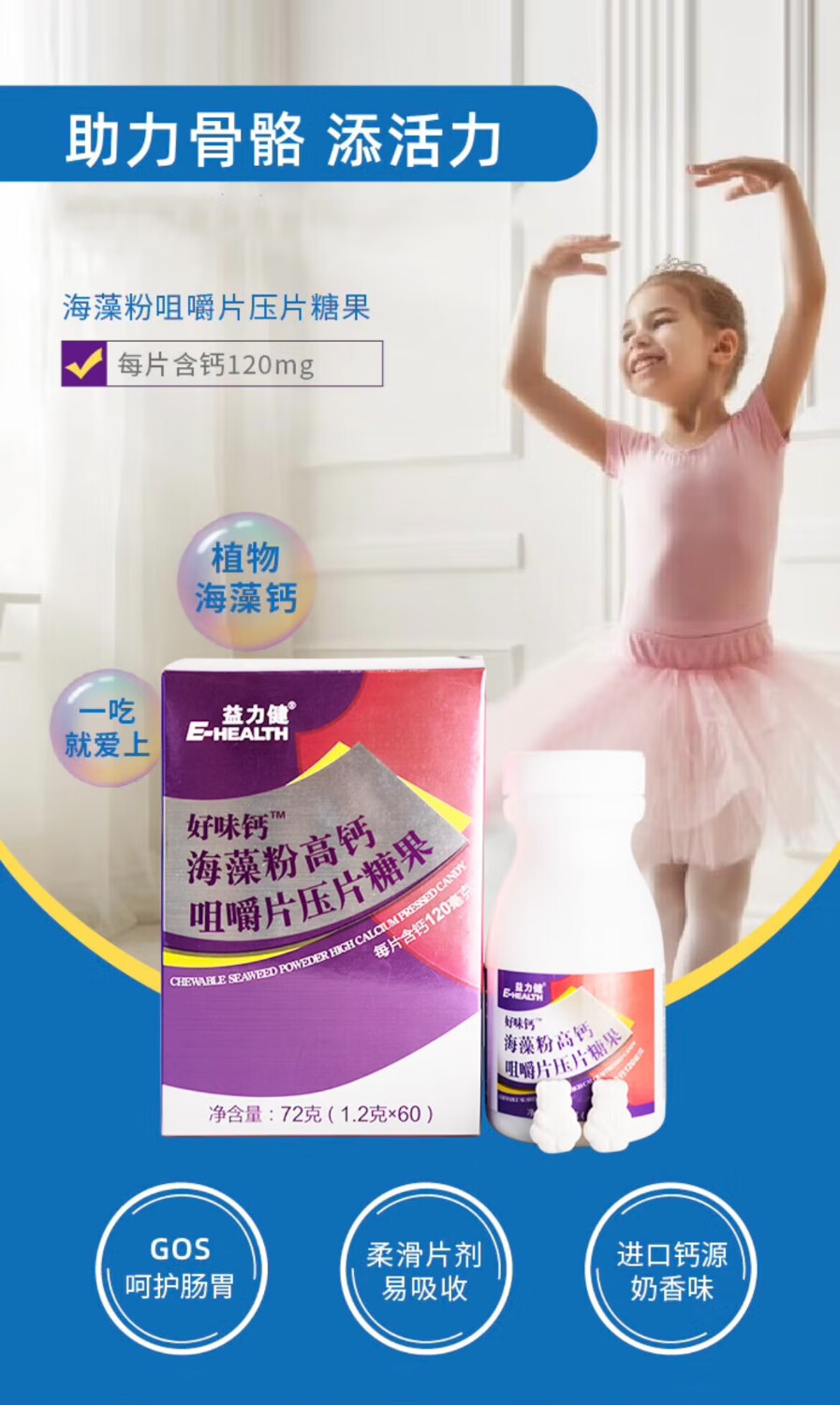 益力健海藻粉高钙咀嚼片海藻钙钙片宝宝学生青少年奶香含钙120毫克60粒 25年8月生产批次 60片*1盒