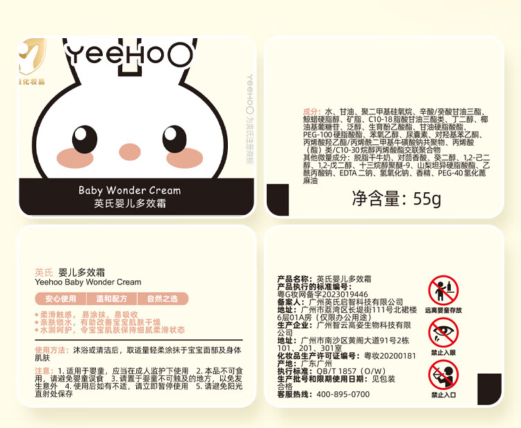 英氏(YEEHOO)婴儿多效霜天然润肤保湿温和滋润新生儿童护肤霜 多效霜55g