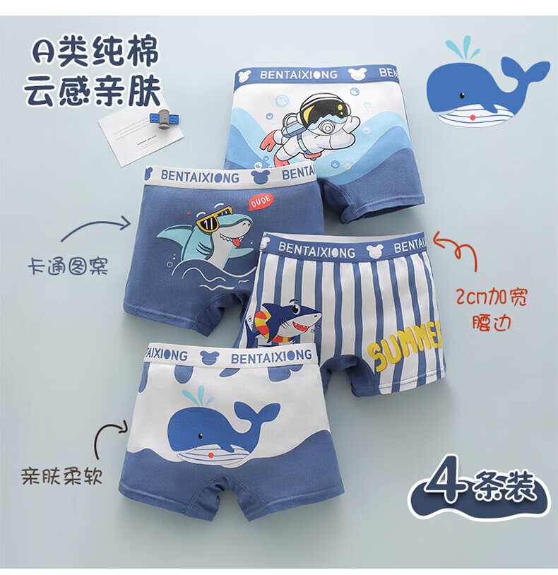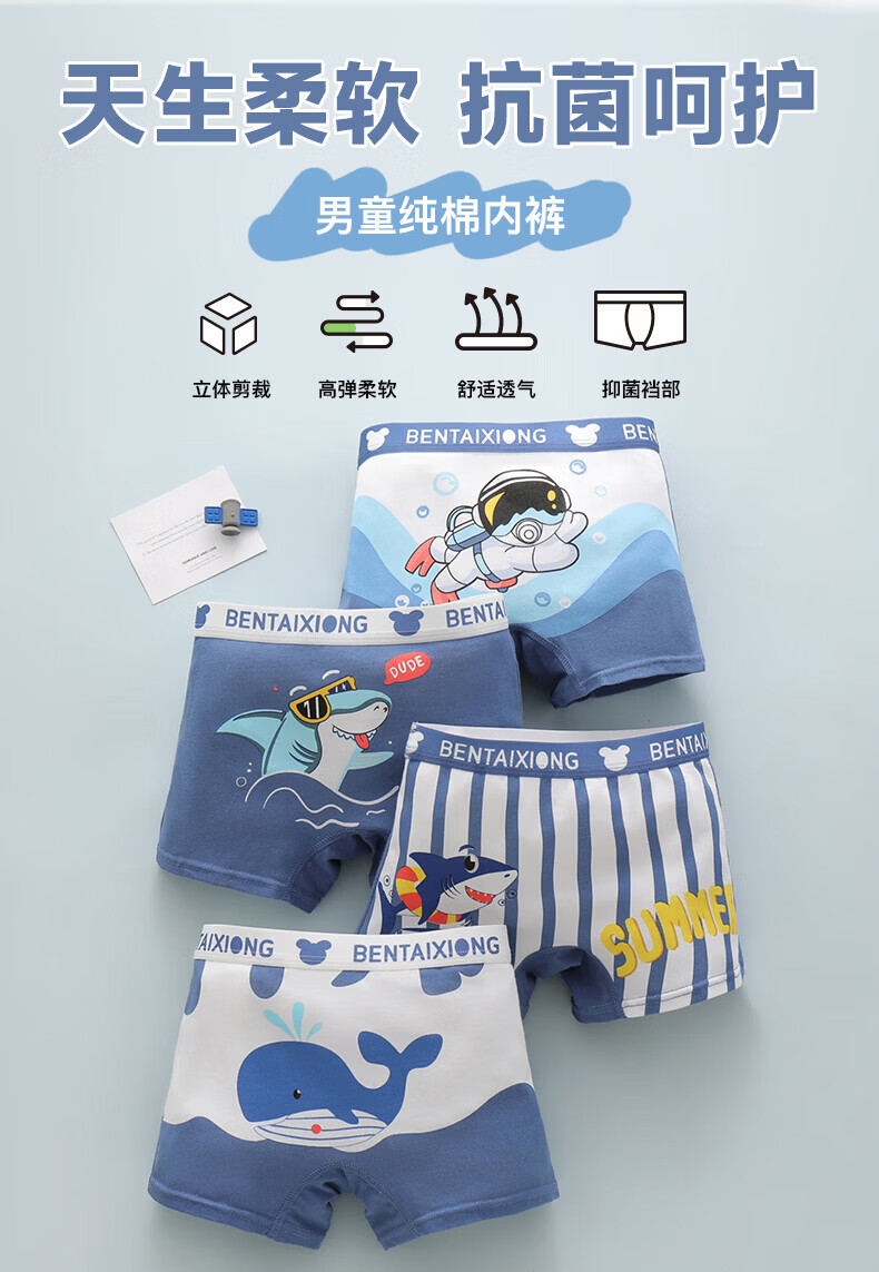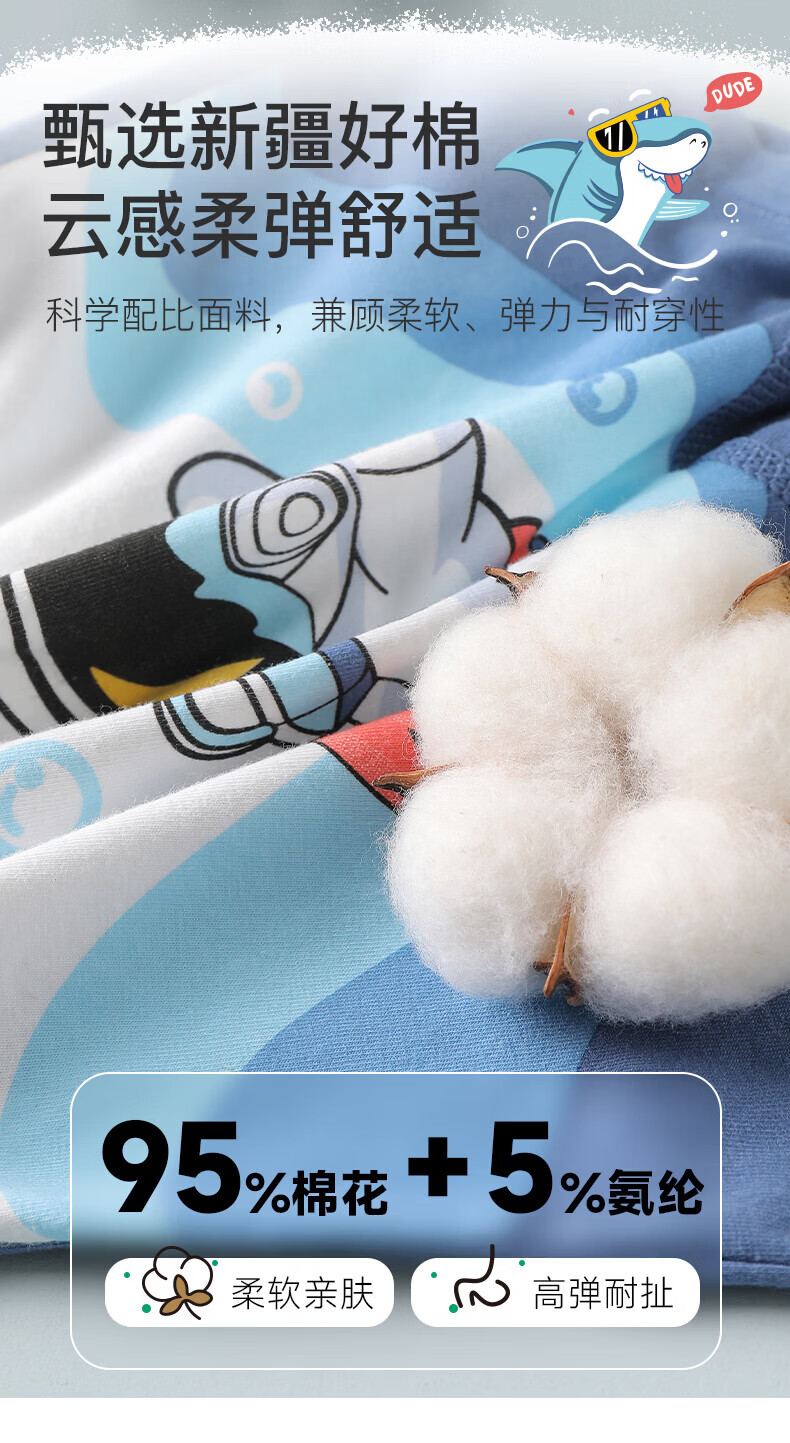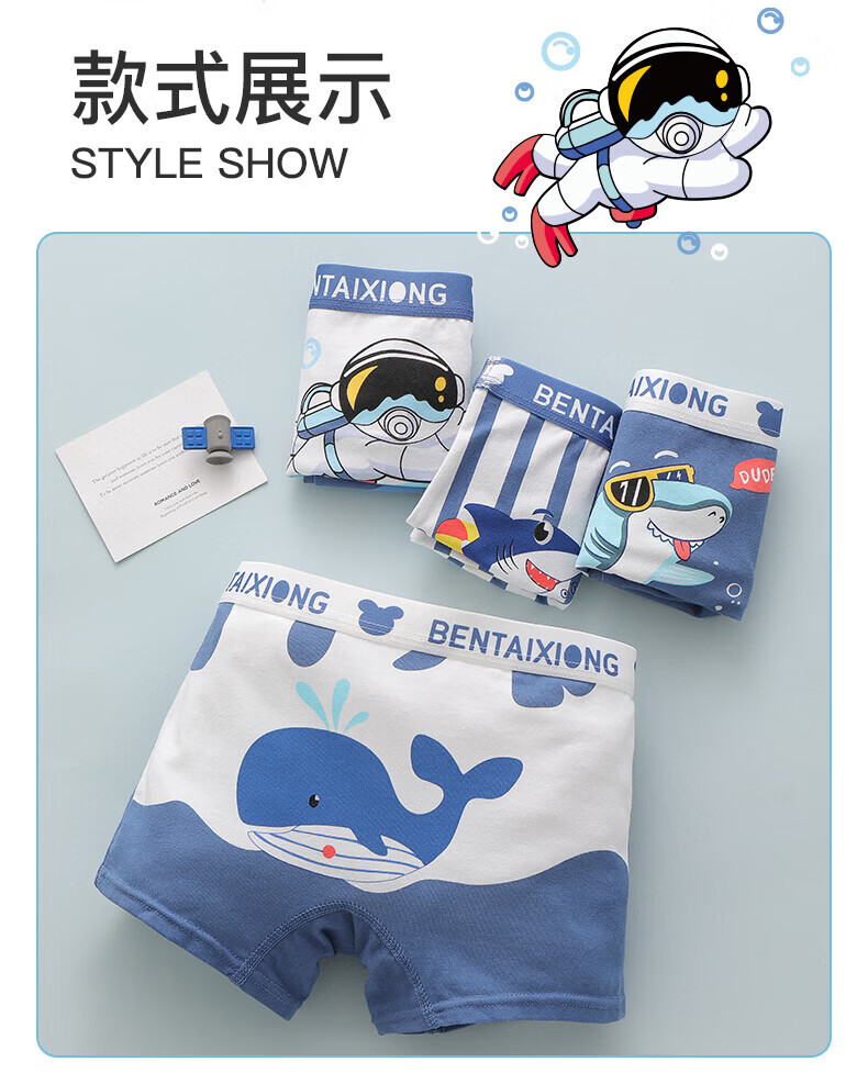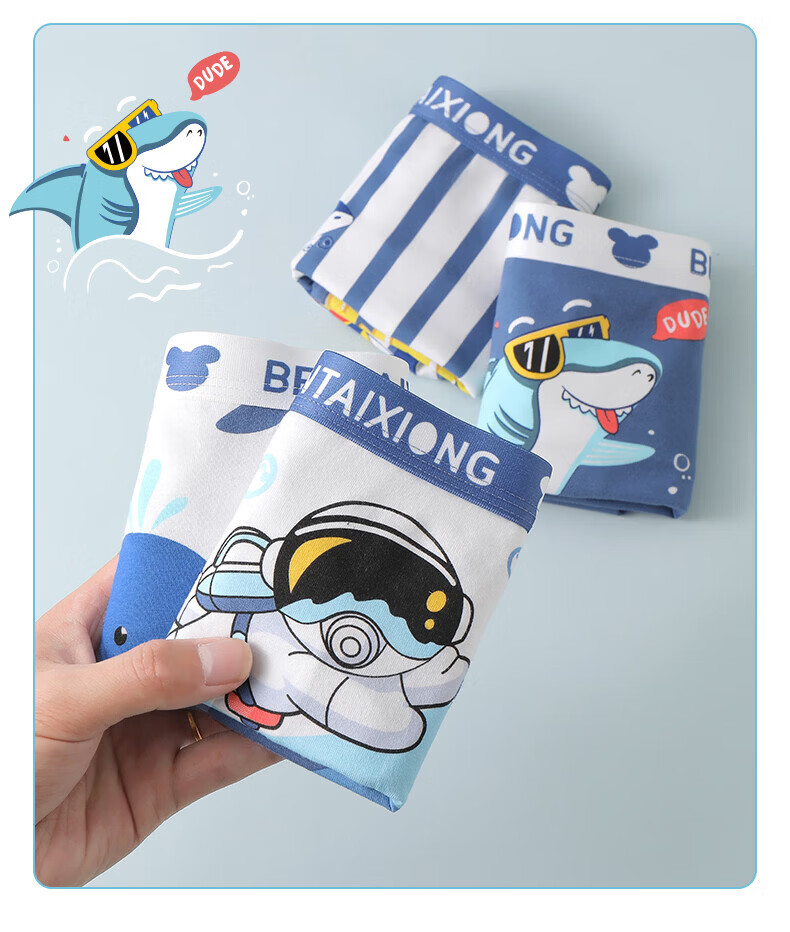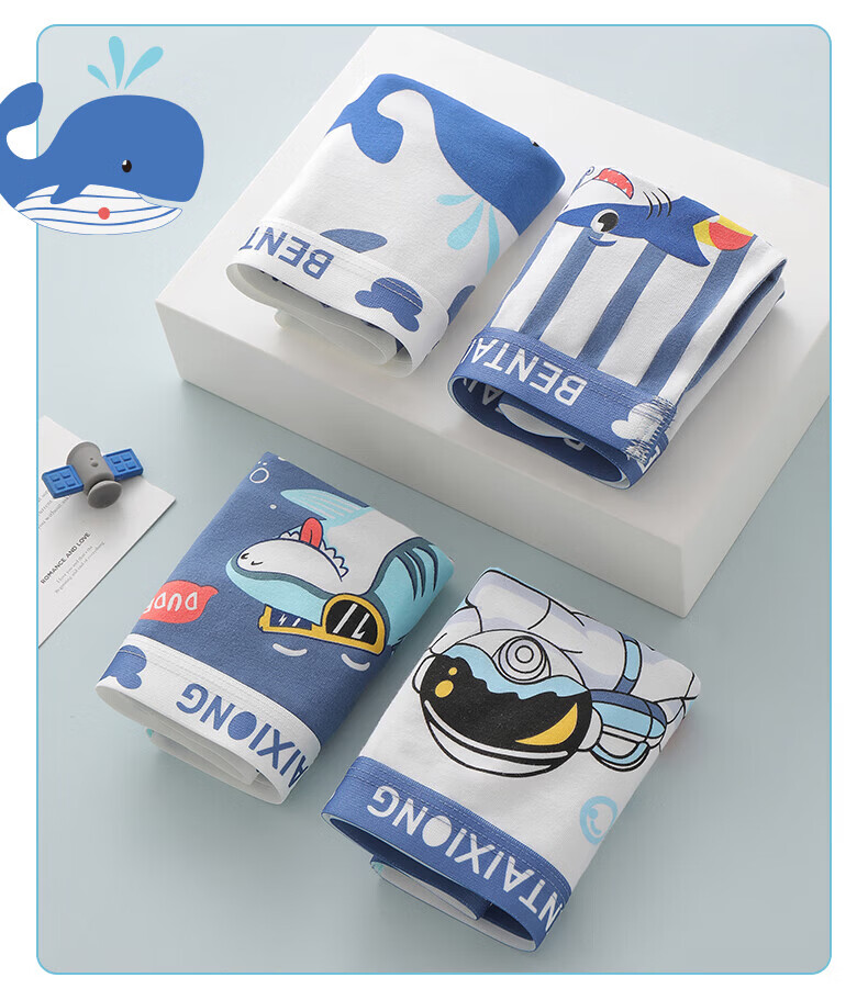 MQDMINI男童内裤A类抗菌小男孩儿童纯棉全棉四平角底裤中小童宝宝 卡通海洋组合-【四条装透气】 均码 S码1-3岁15-25斤