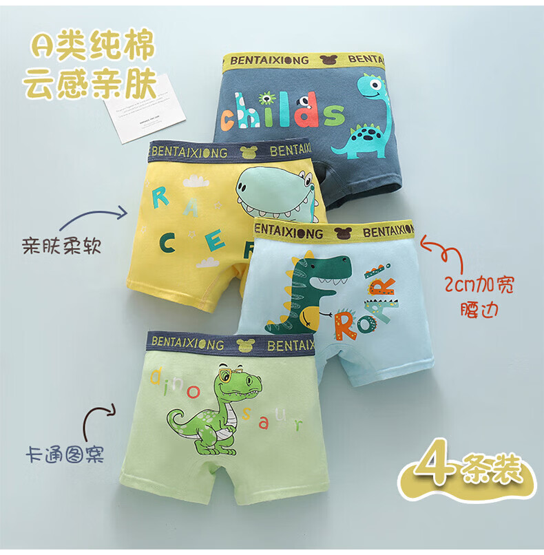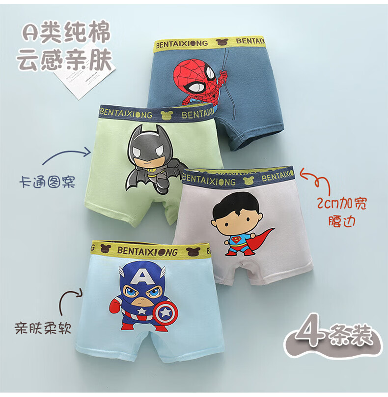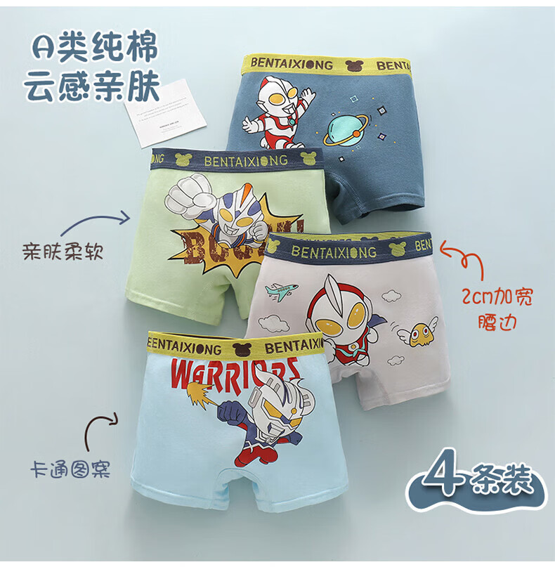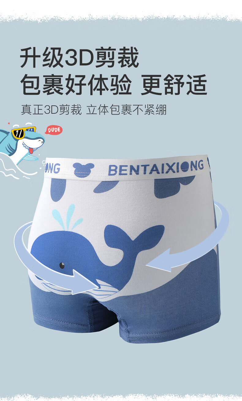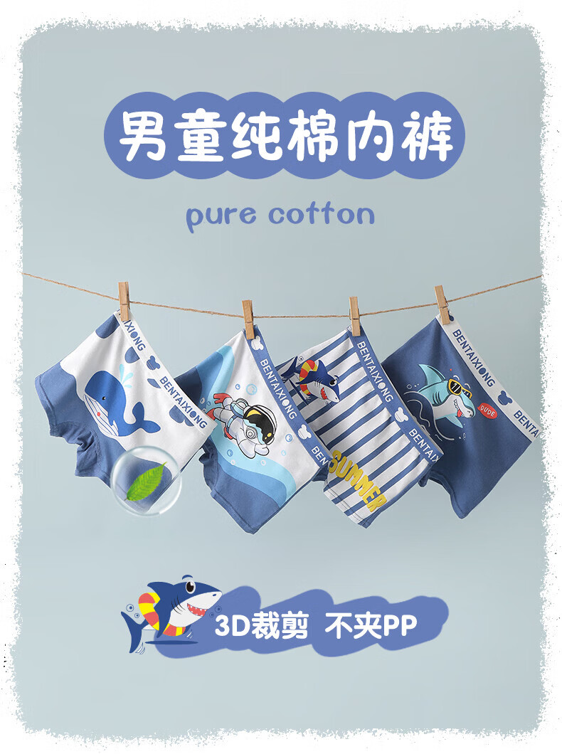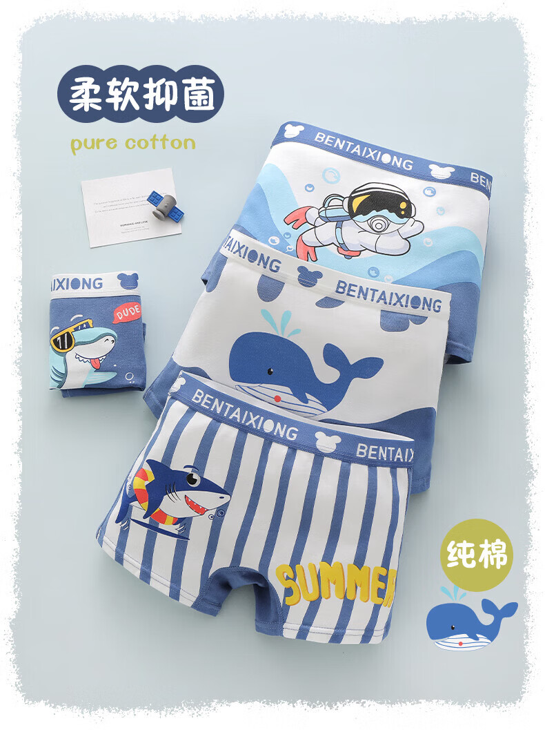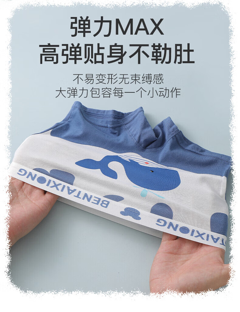 MQDMINI男童内裤A类抗菌小男孩儿童纯棉全棉四平角底裤中小童宝宝 卡通海洋组合-【四条装透气】 均码 S码1-3岁15-25斤