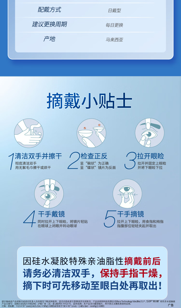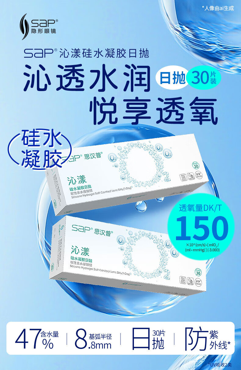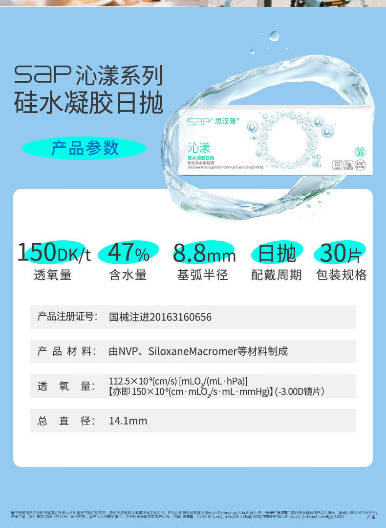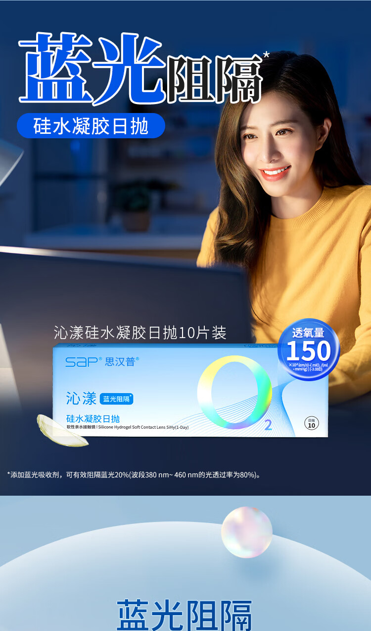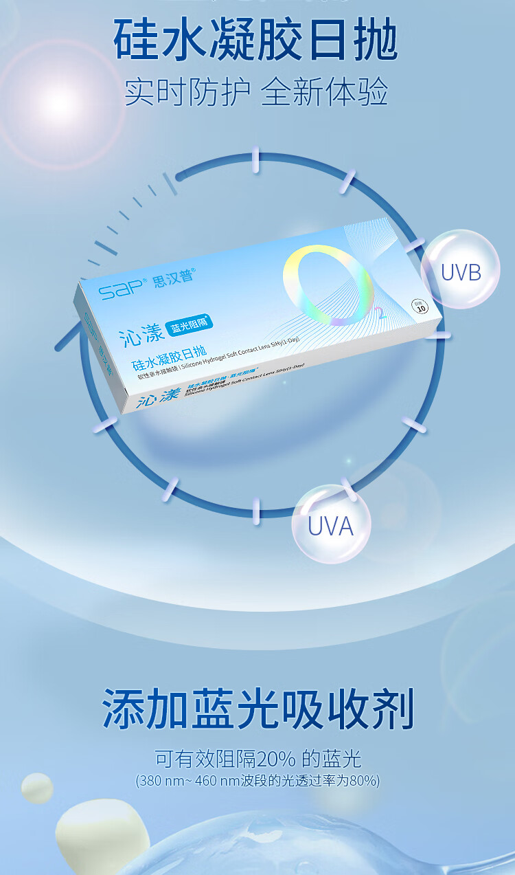 SAP思汉普沁漾小蓝盾防蓝光高透氧硅水凝胶近视隐形眼镜日抛10/30片 【升级防蓝光】沁漾小蓝盾日抛10片装 800度