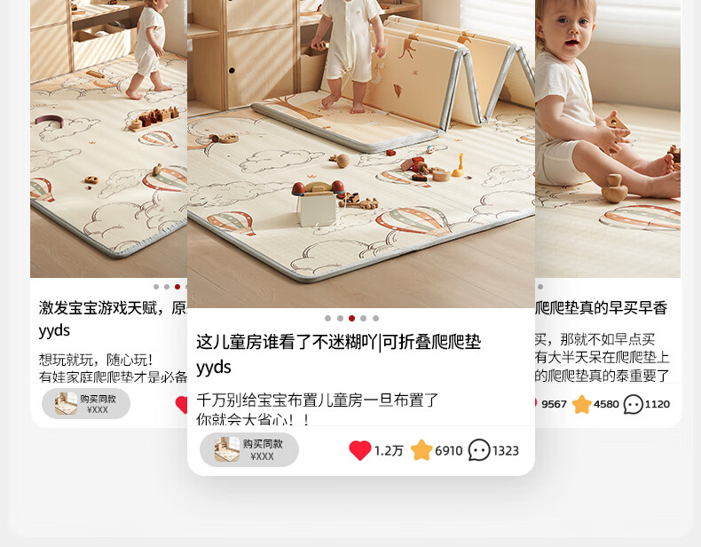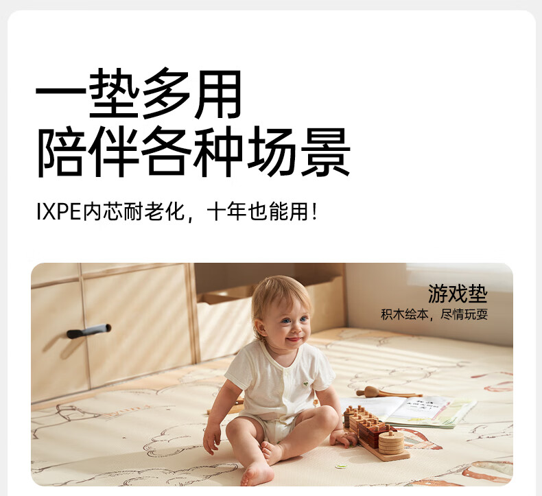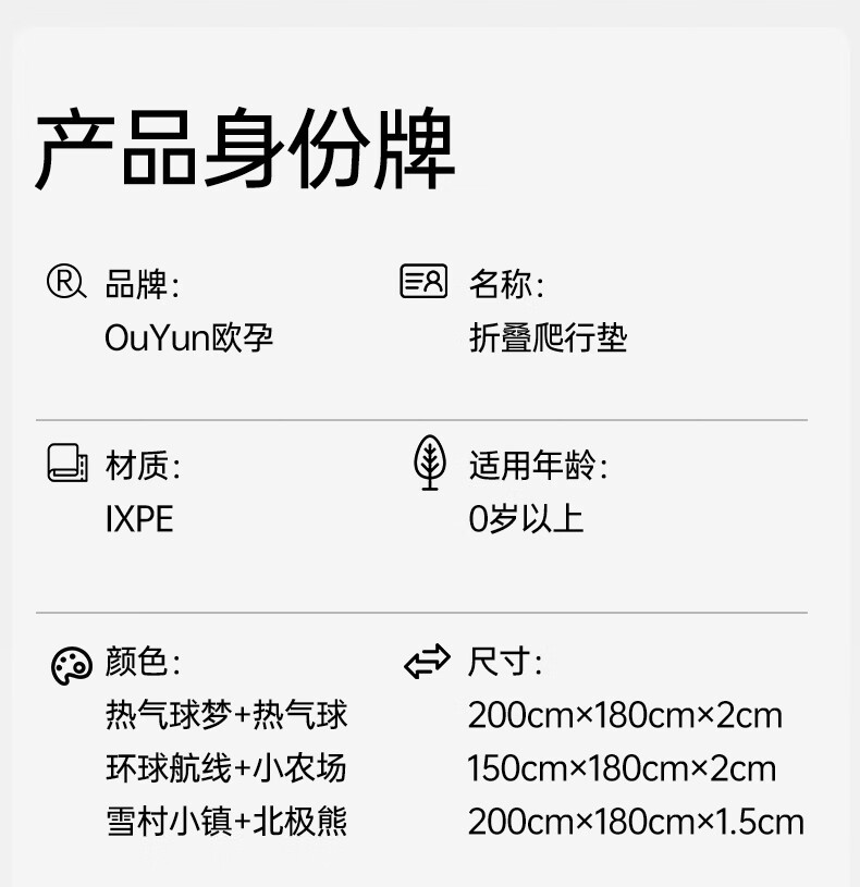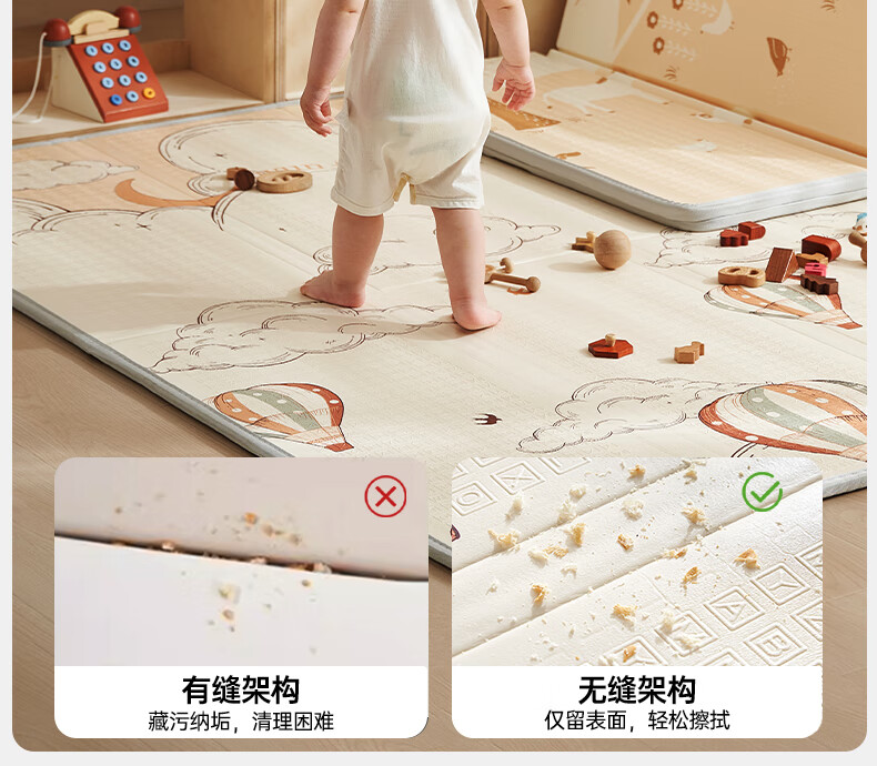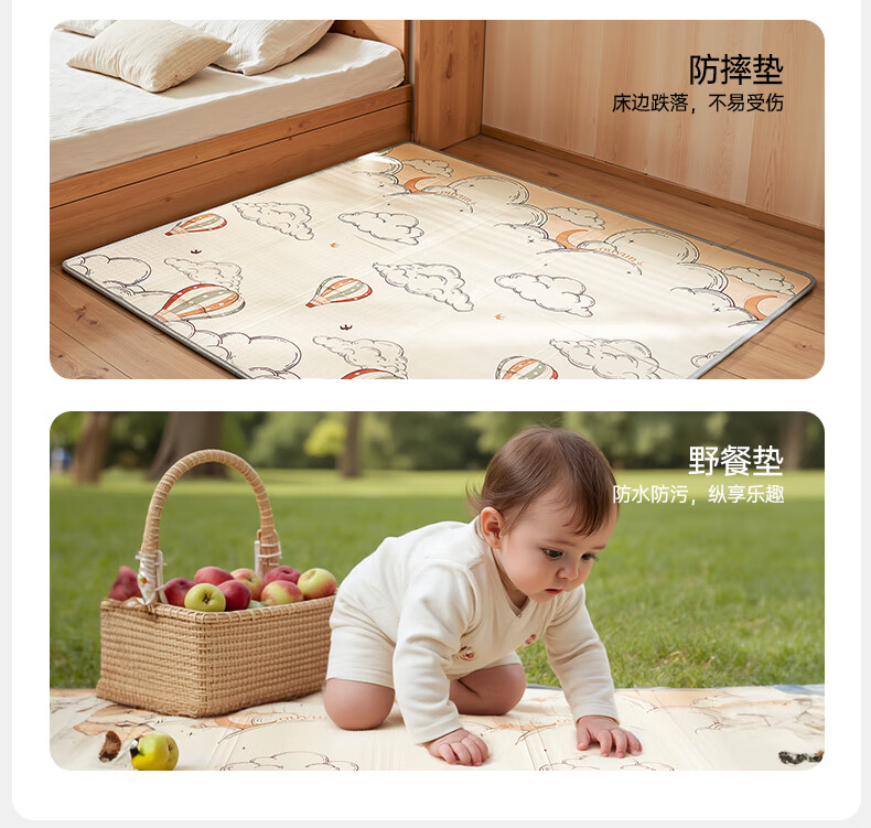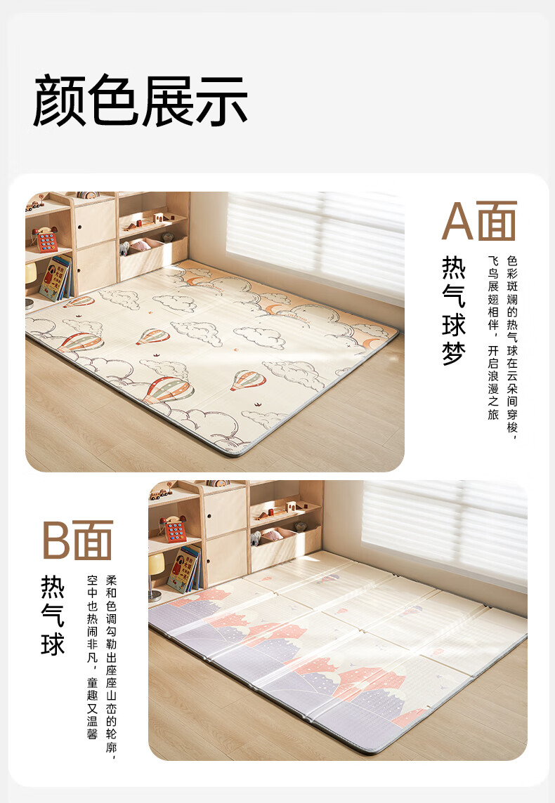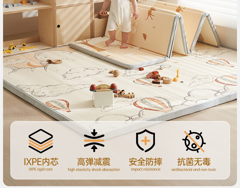 欧孕欧孕爬爬垫婴儿加厚家用无甲醛ixpe无毒无味地垫宝宝折叠爬行垫童 【折叠款IXPE】热气球梦+热气球 200cm×180cm【厚2cm】