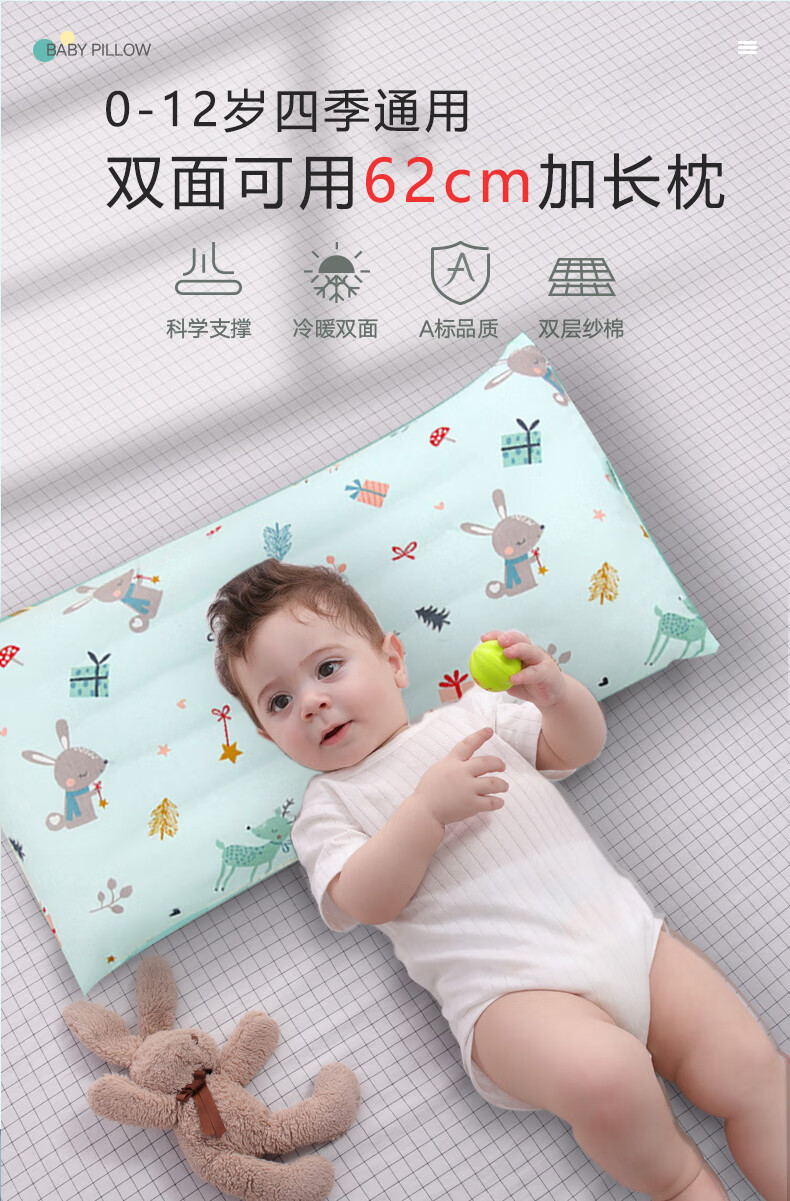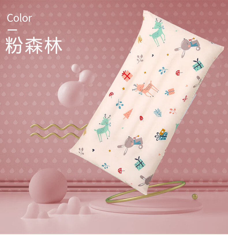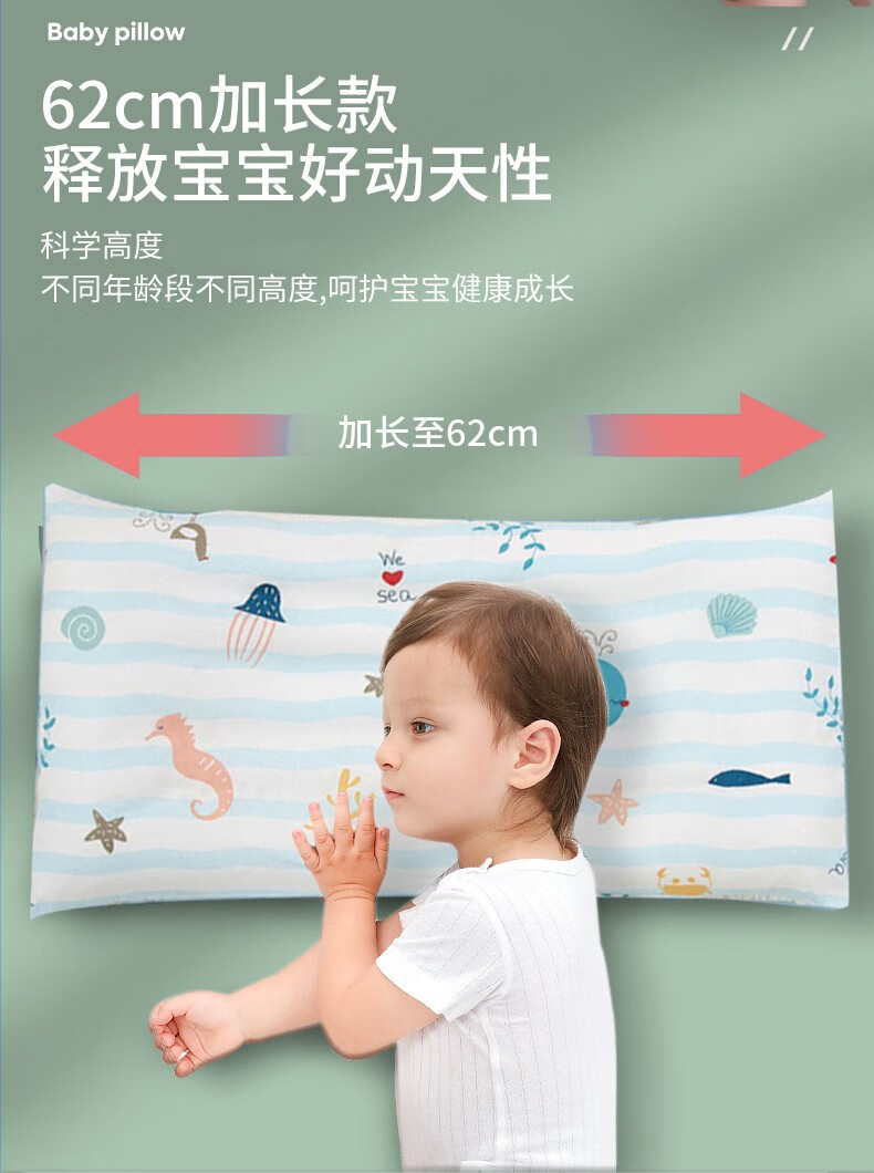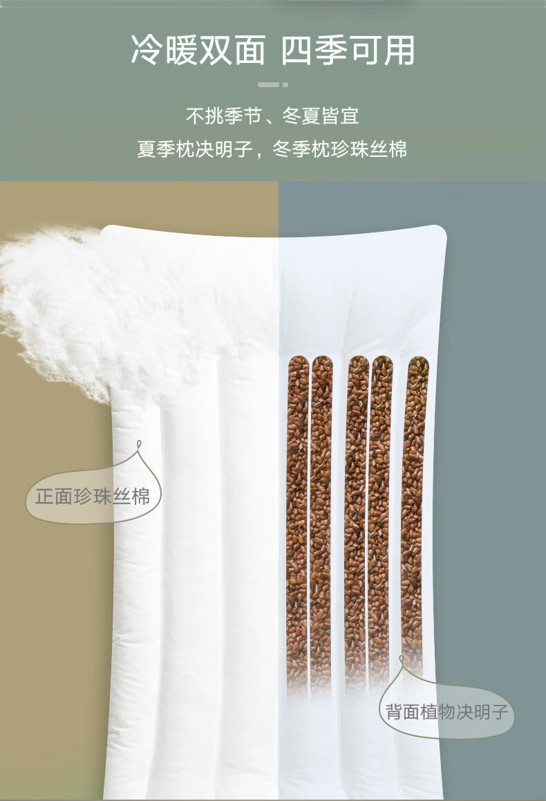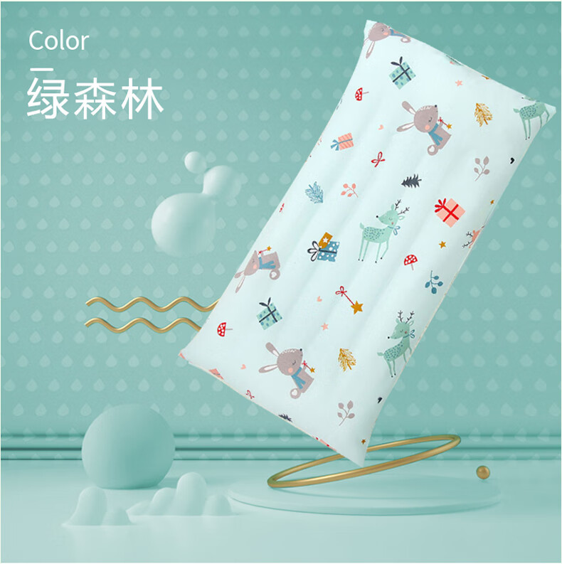 科迷熊儿童决明子枕头婴儿枕头0-3-7-12岁双面可用四季通用加长枕 3-7岁绿森林 决明子冷暖双面枕