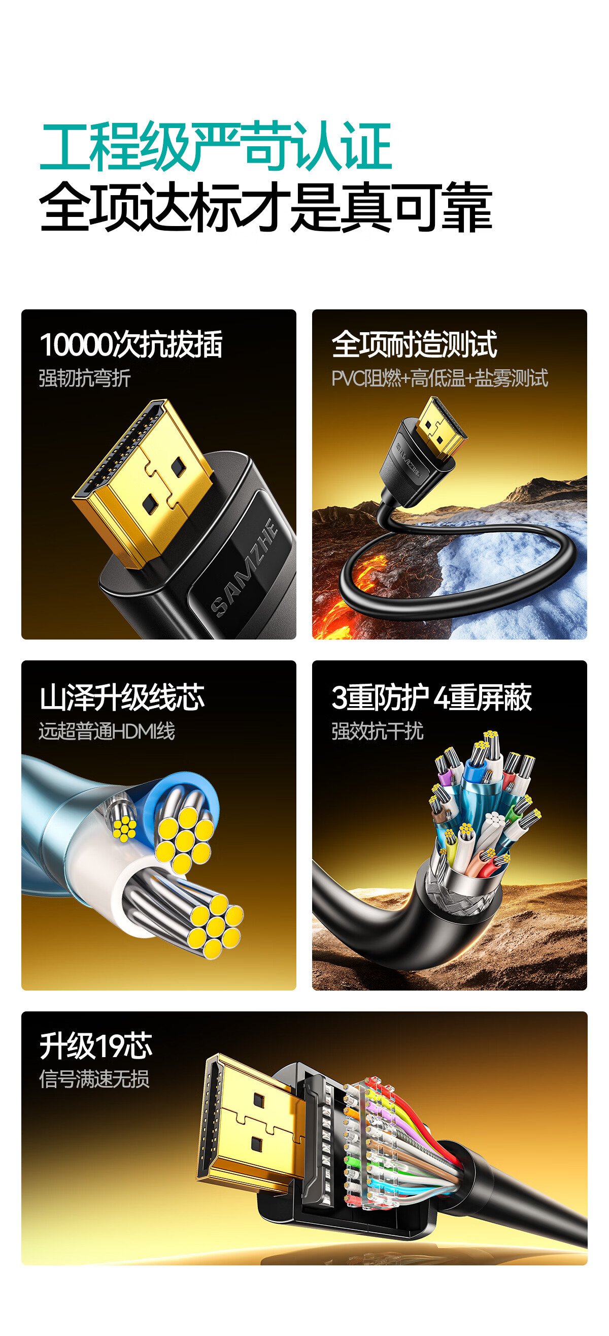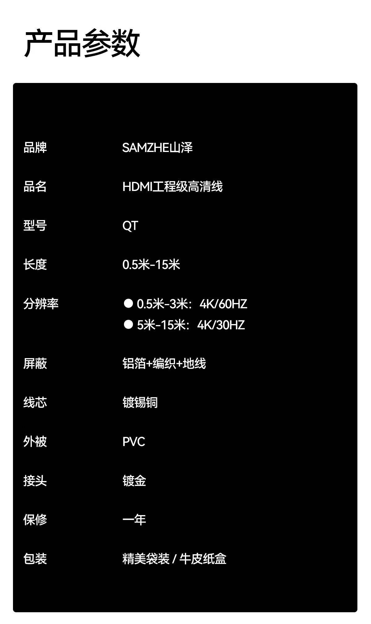 山泽HDMI线2.0版 4K数字高清线2米 3D视频线工程级 投影仪笔记本电脑电视机机顶盒数据连接线 QT20