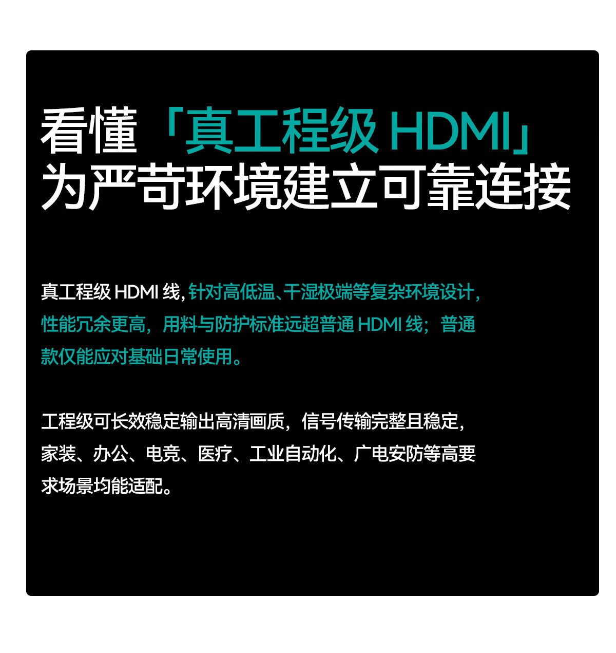 绿联HDMI线2.0版 4K数字高清线 3D视频线工程级笔记本电视投影仪大屏装修穿管视频线显示器连接线 黑色工程版 【京配】3米