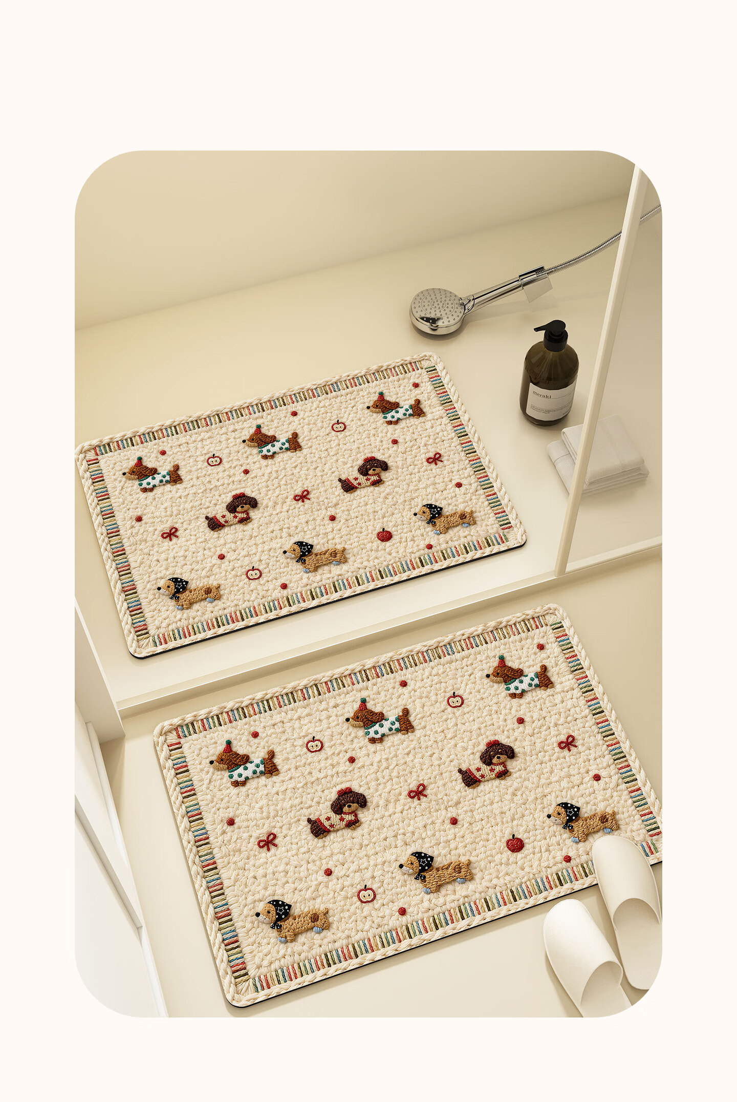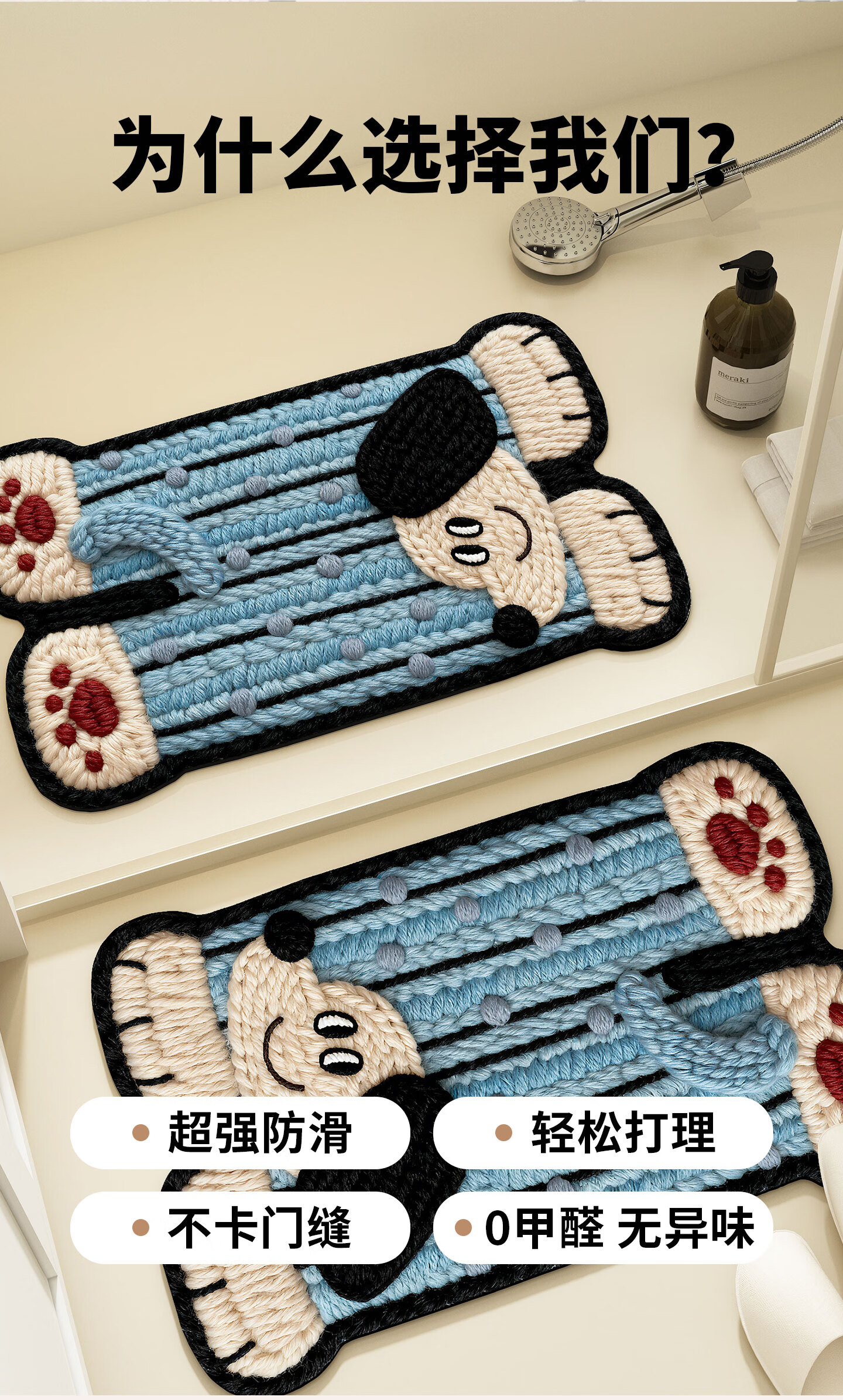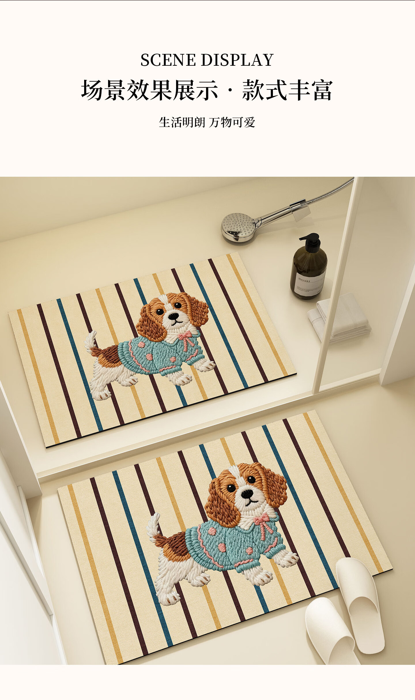 情更浓蓝色小狗浴室地垫防滑垫厕所门口地毯硅藻泥卫生间吸水垫速干脚垫 N去看云 40*60CM