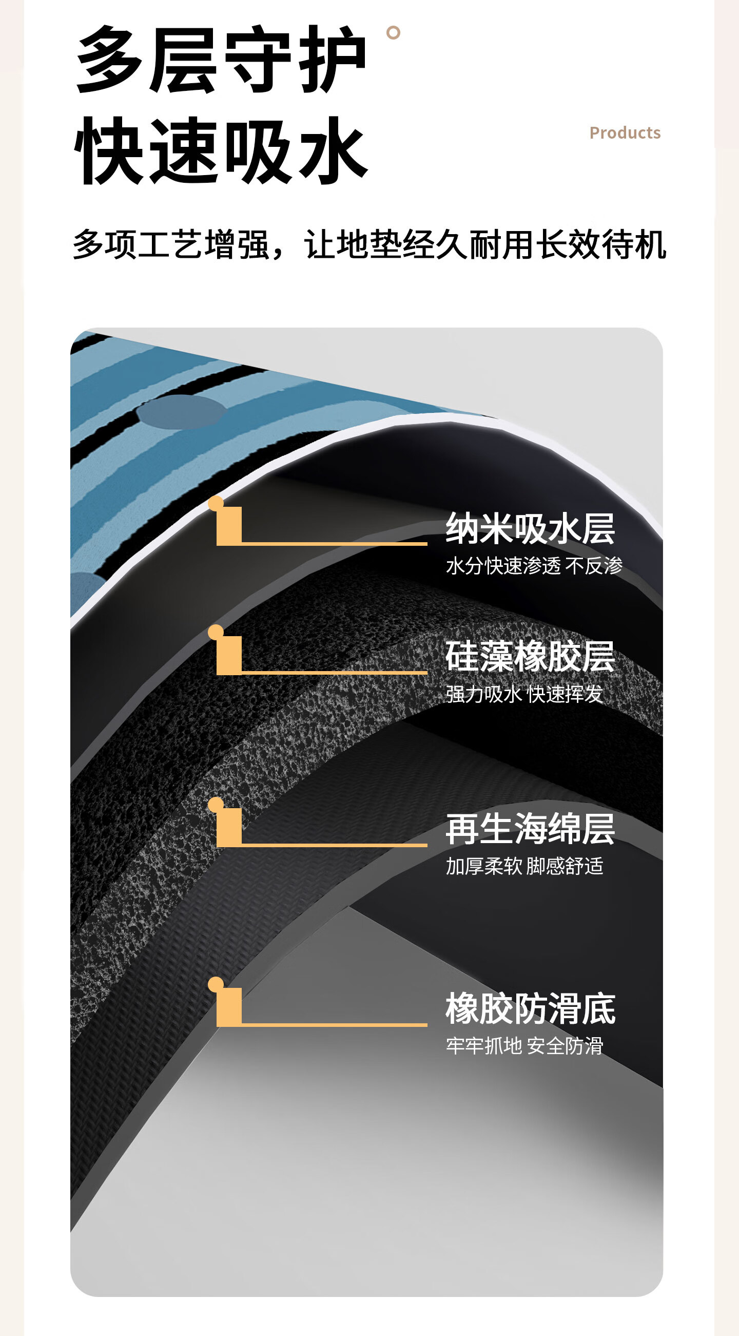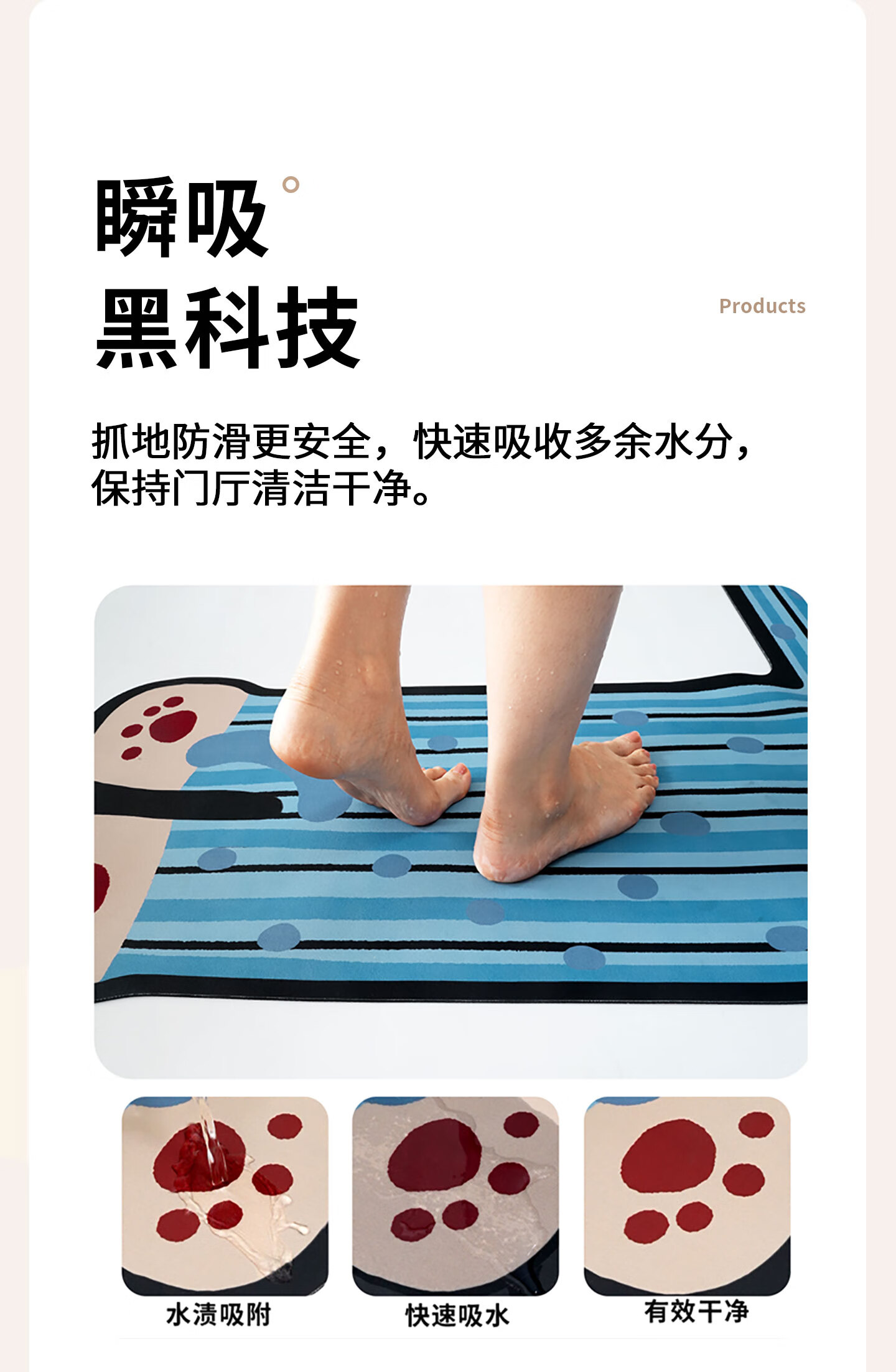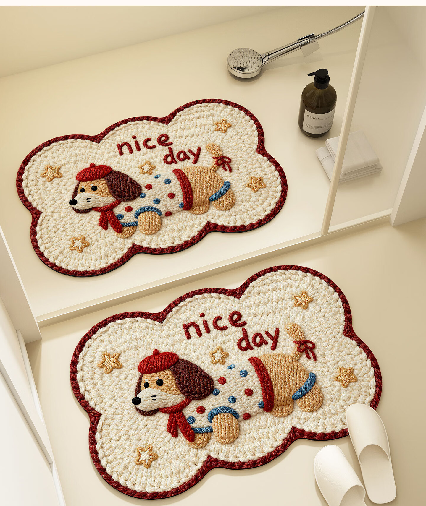 情更浓蓝色小狗浴室地垫防滑垫厕所门口地毯硅藻泥卫生间吸水垫速干脚垫 N去看云 40*60CM