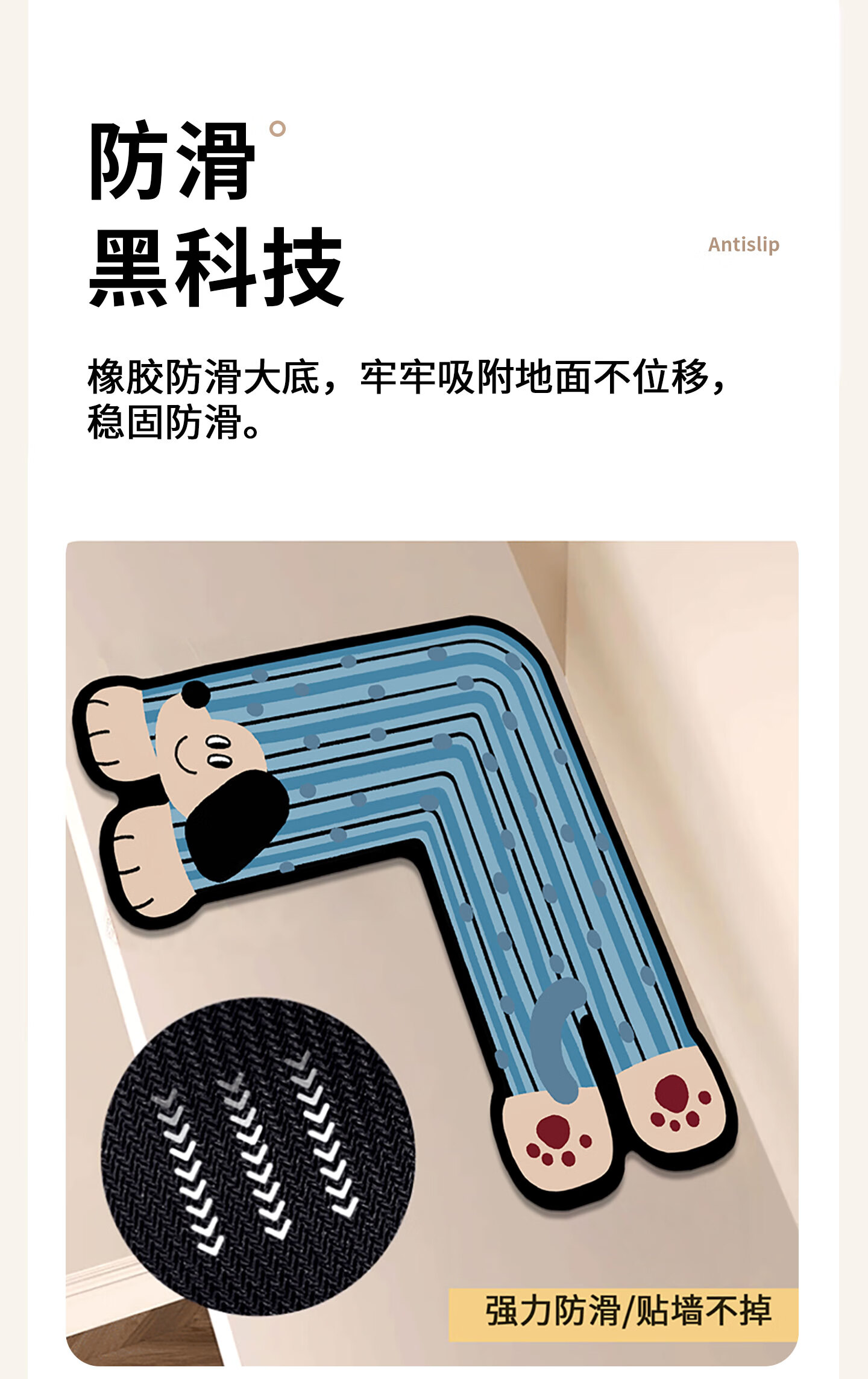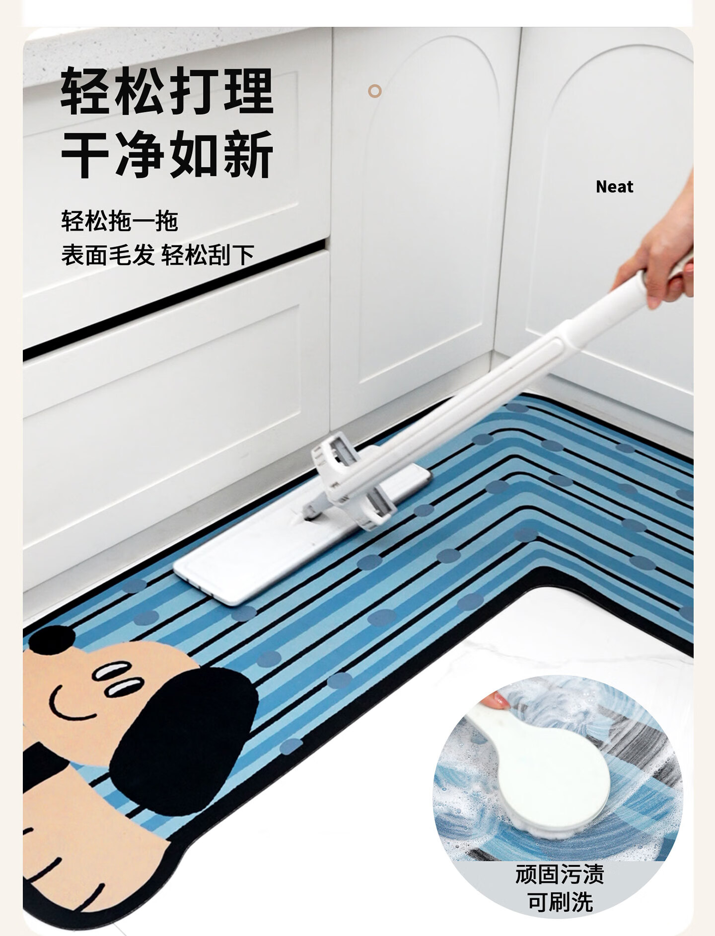 京华厨房地垫防滑防油可擦免洗美式卡通条纹小狗免洗可擦吸水速干脚垫 达奇萌 45cm*75cm 厨房蹭尘小能手
