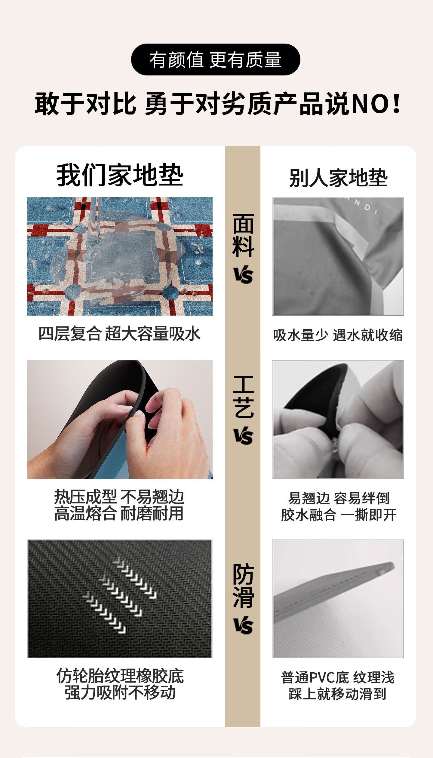 京华厨房地垫防滑防油波斯风耐脏可擦免洗易清洁可定制裁剪专用脚垫 琉尔 45cm*75cm