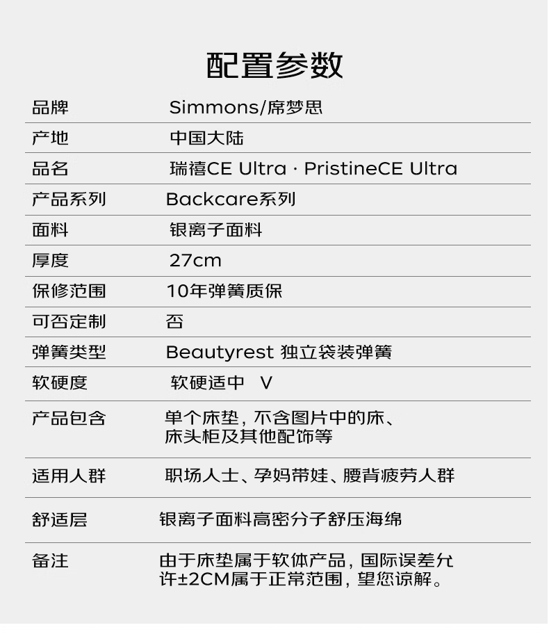 席梦思独立袋弹簧床垫 美式软垫银离子抑菌1.8x2米床垫 瑞禧CE Ultra 【瑞禧CE Ultra】【新品升级】 1800*2000