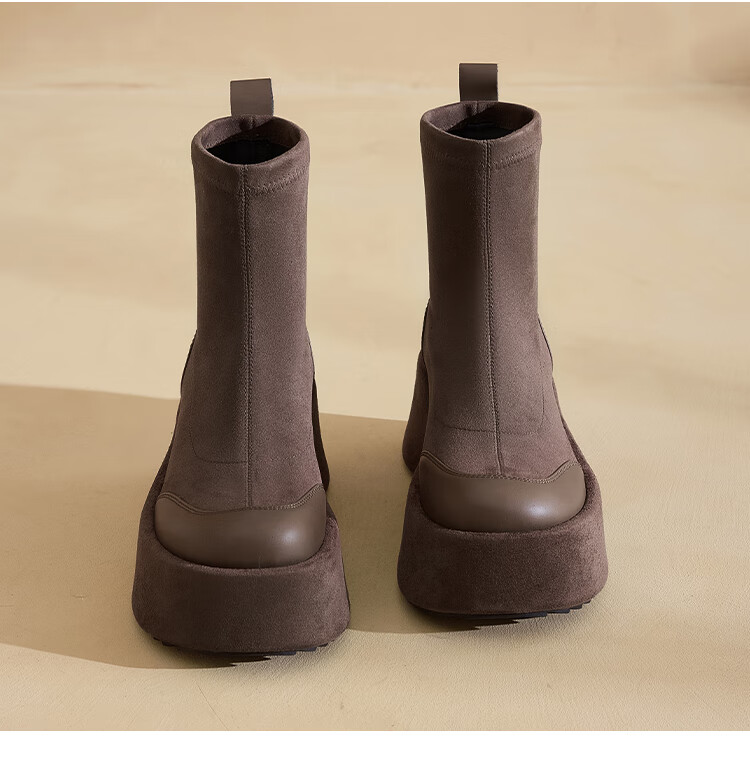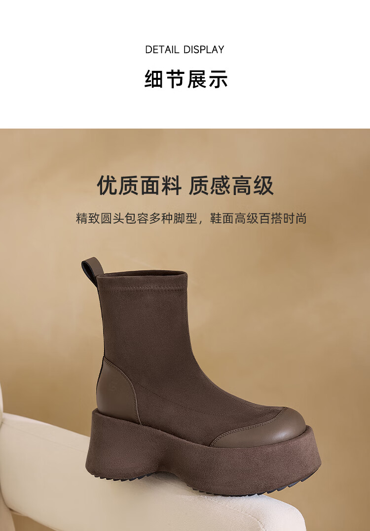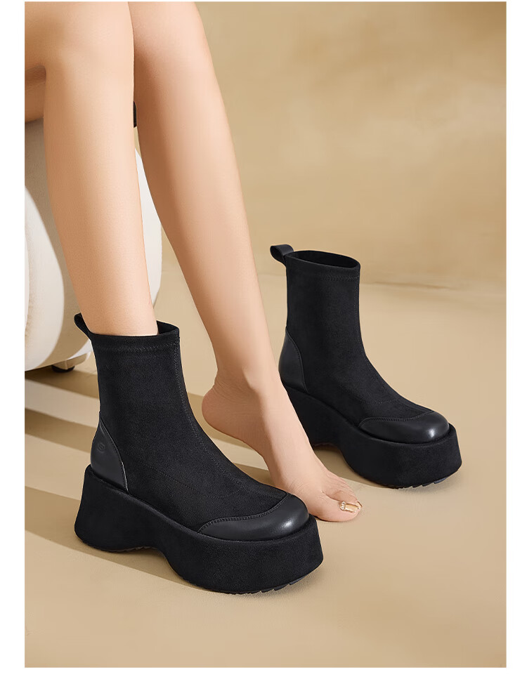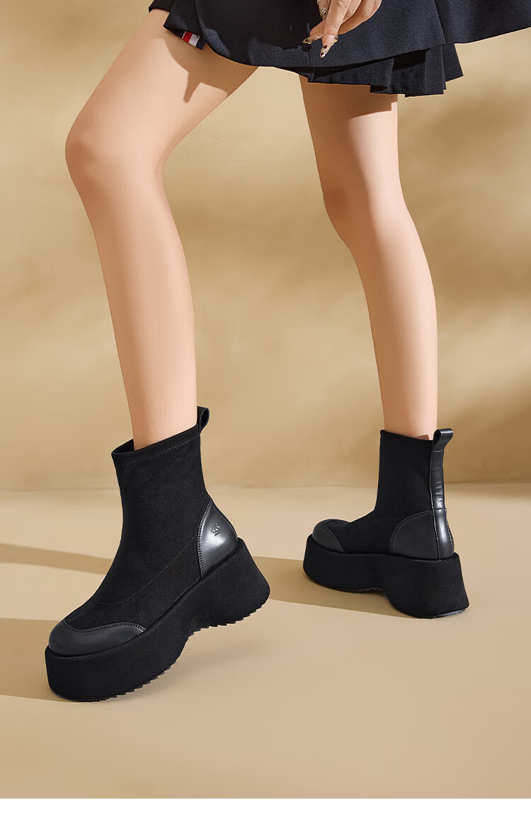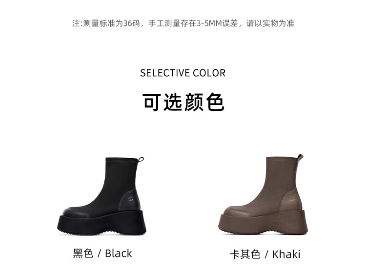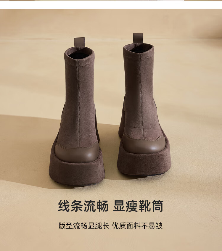 星期六(St&Sat)显瘦弹力靴女2025秋冬新款百搭气质袜靴厚底瘦瘦靴增高女靴 黑色【加绒款】 38