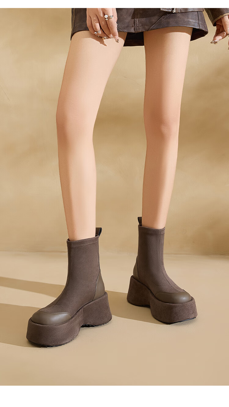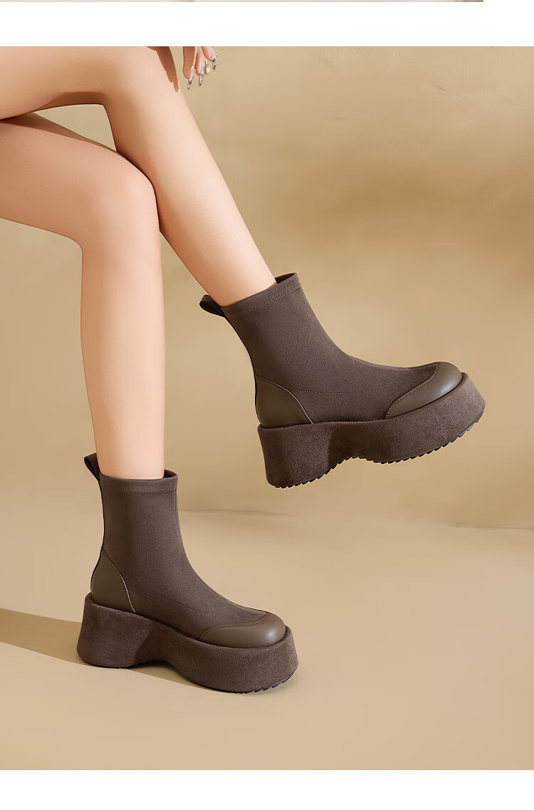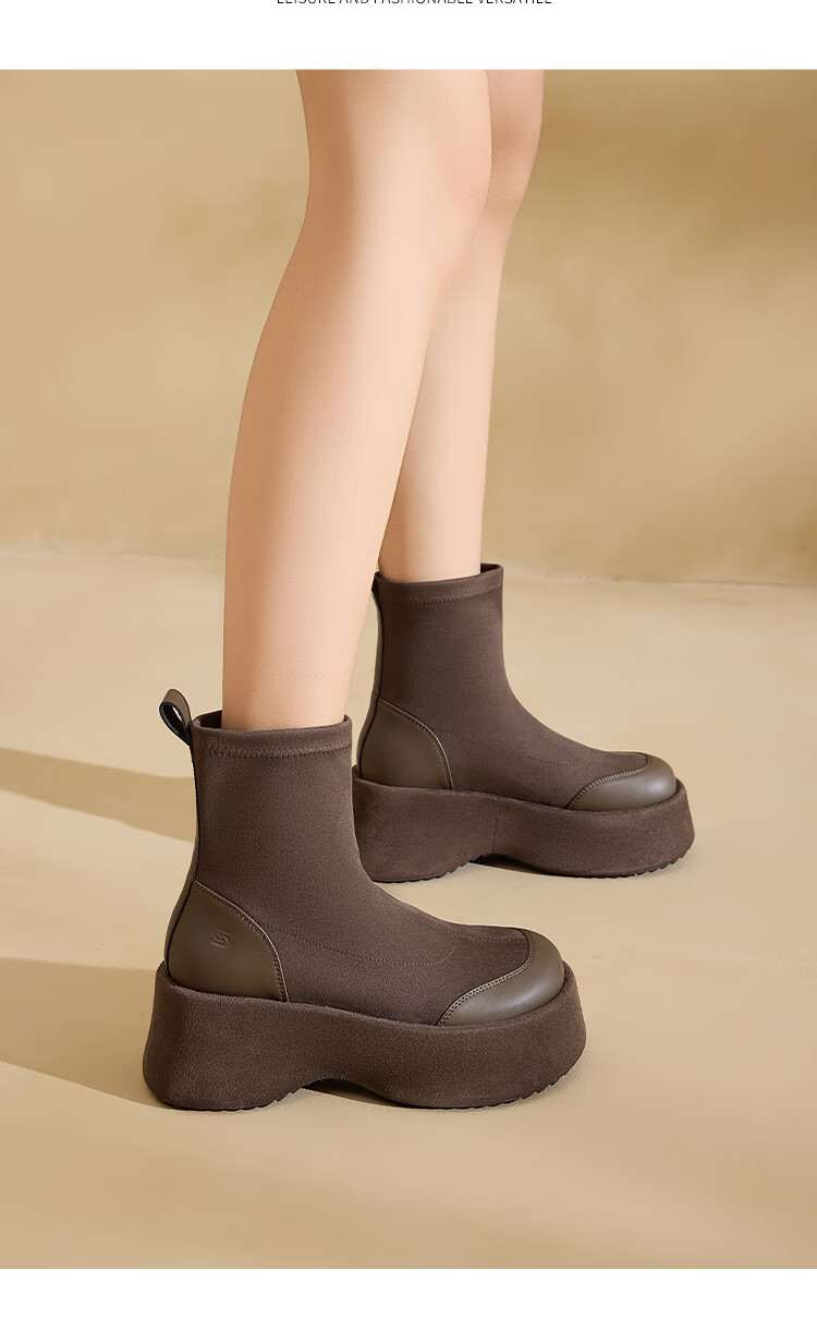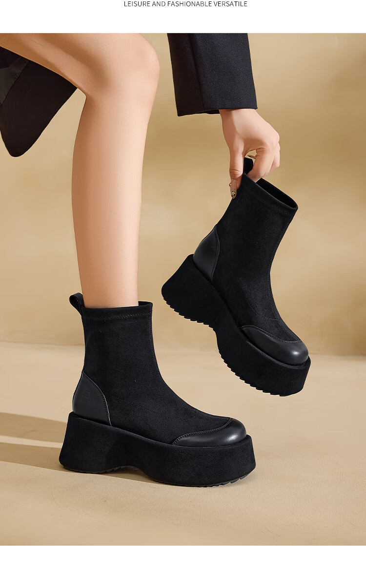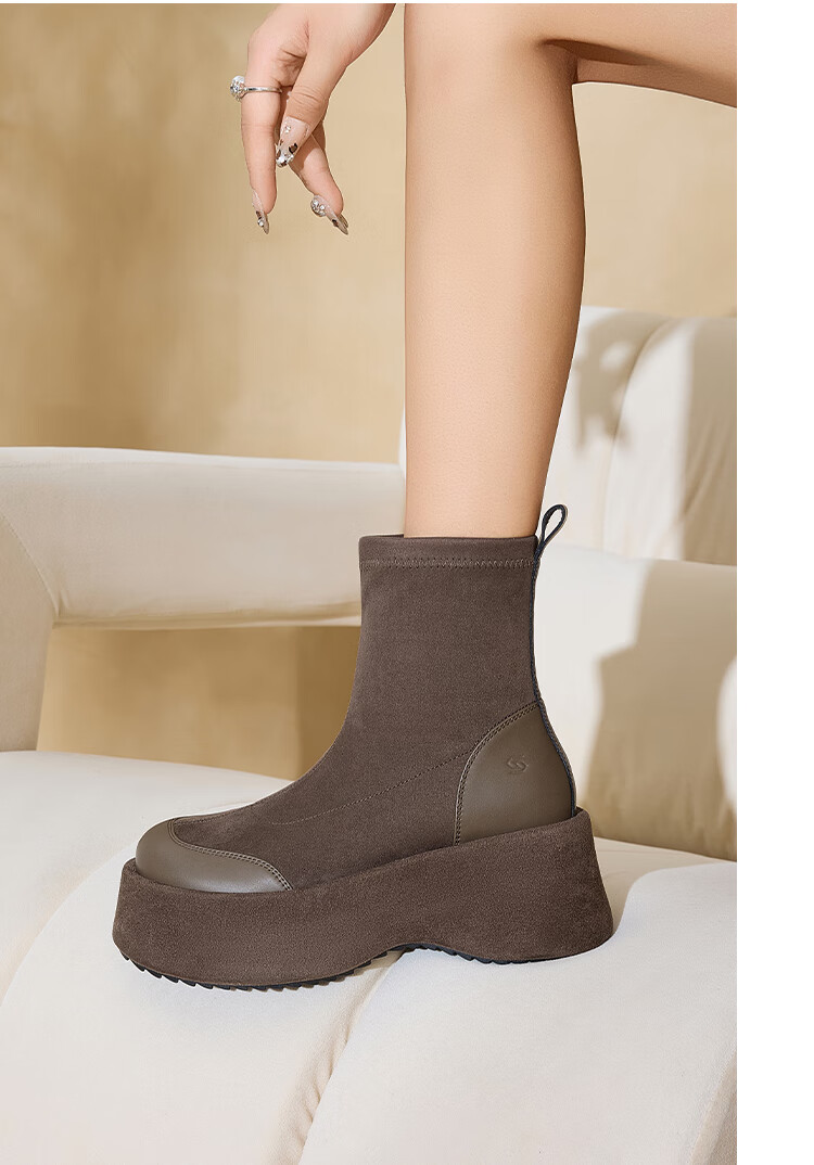 星期六(St&Sat)显瘦弹力靴女2025秋冬新款百搭气质袜靴厚底瘦瘦靴增高女靴 黑色【加绒款】 38