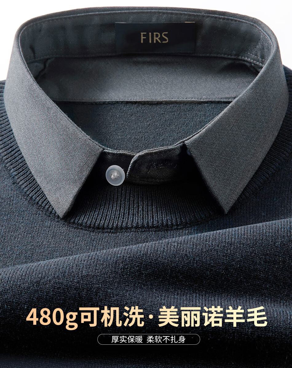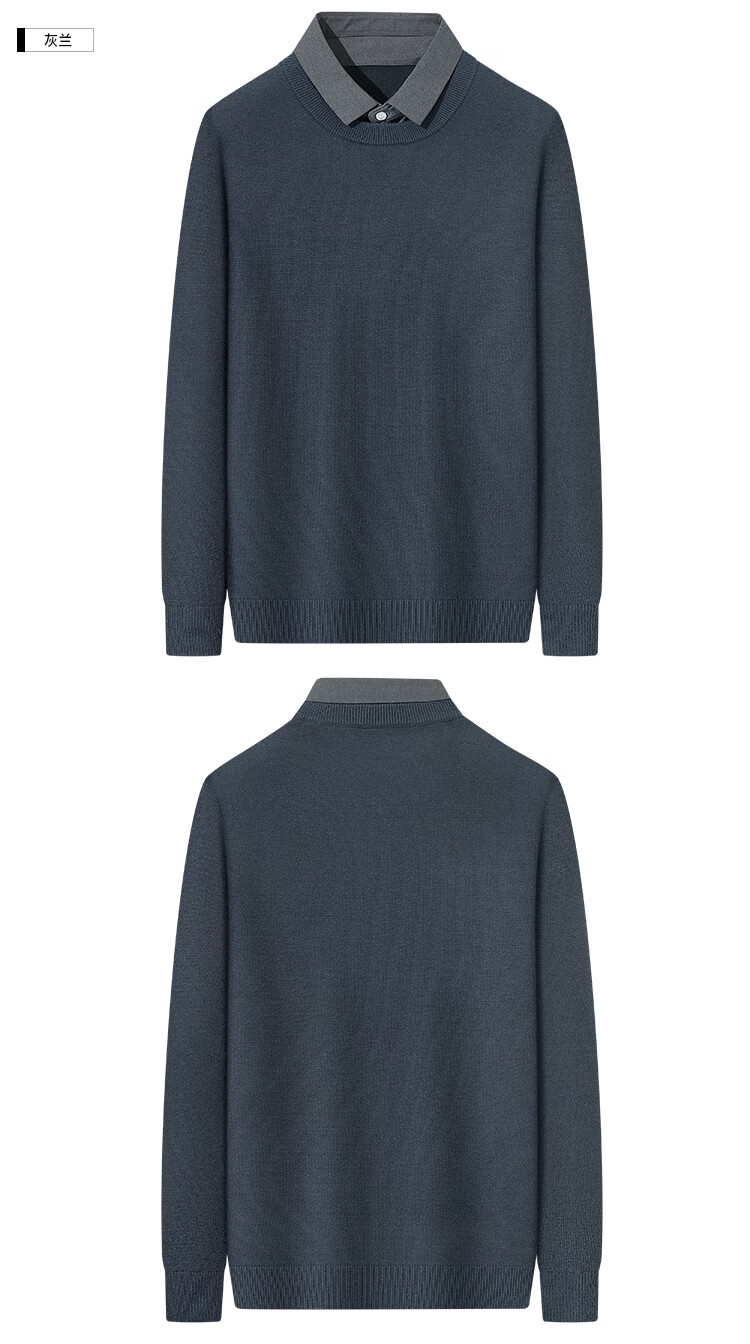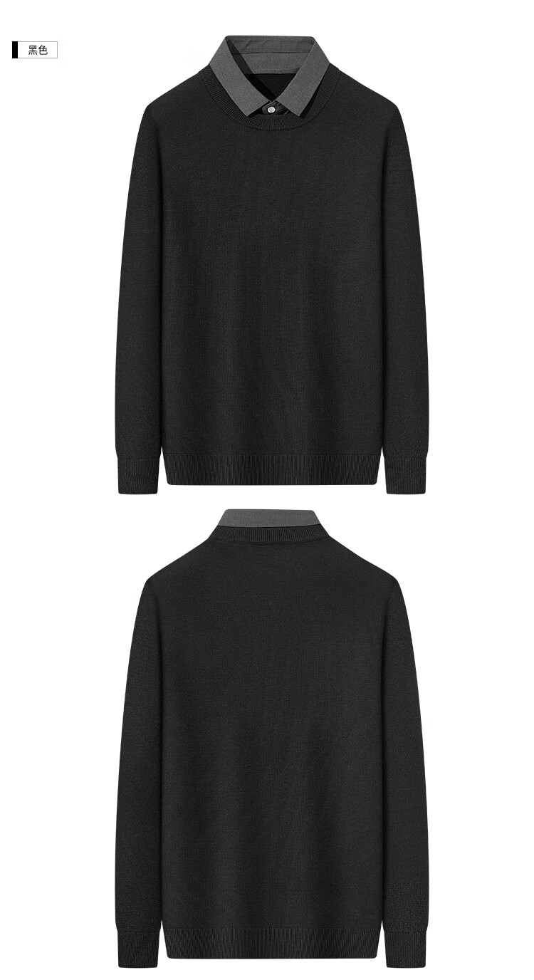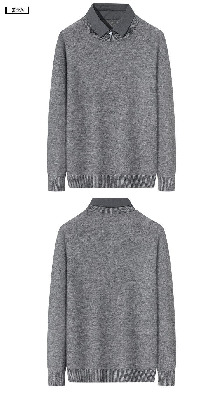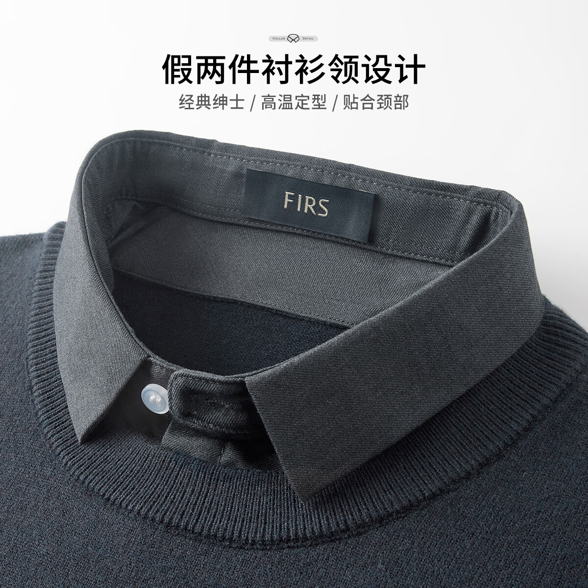 杉杉【可机洗重磅480g】秋冬羊毛新款长袖假两件毛衣男衬衫领针织衫