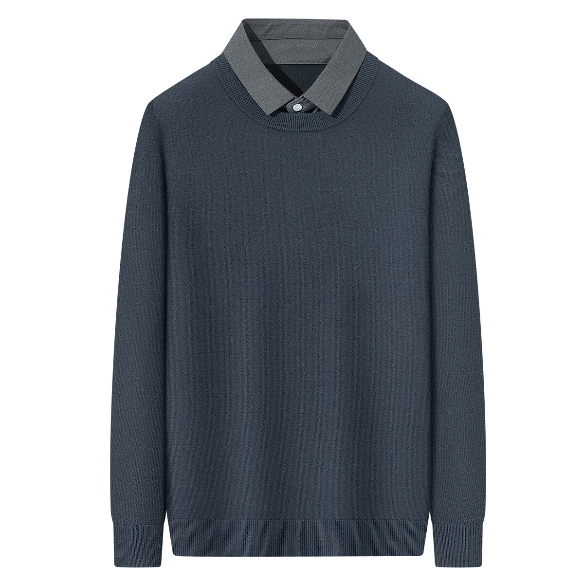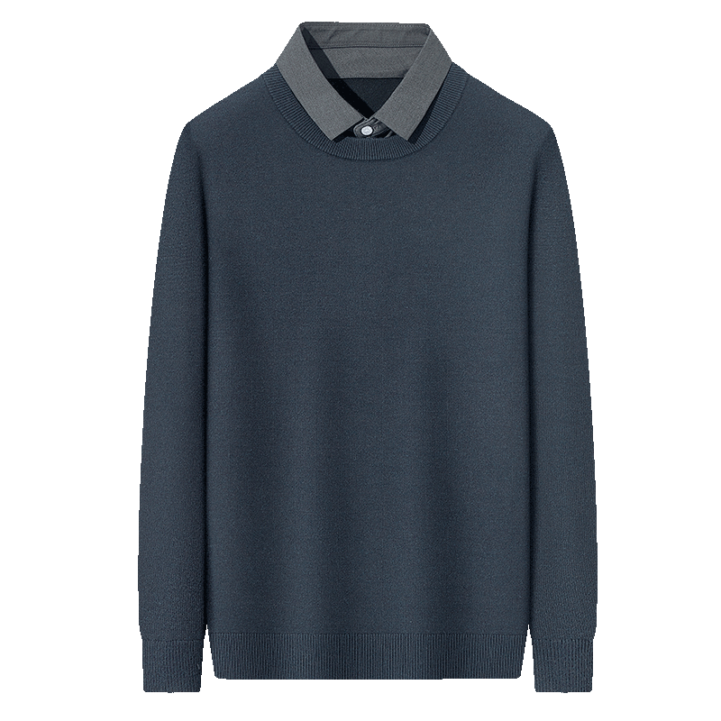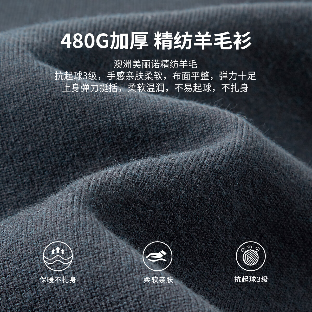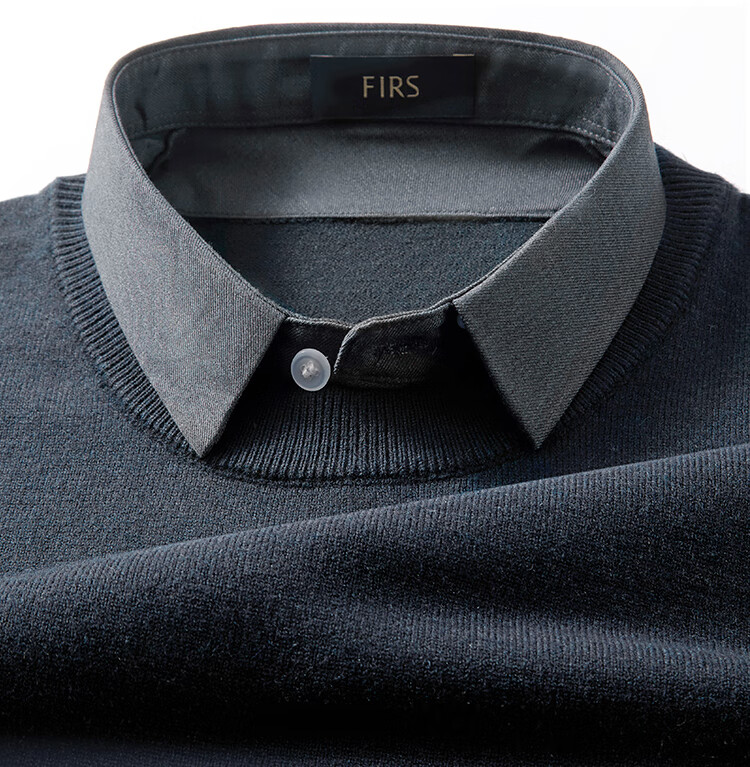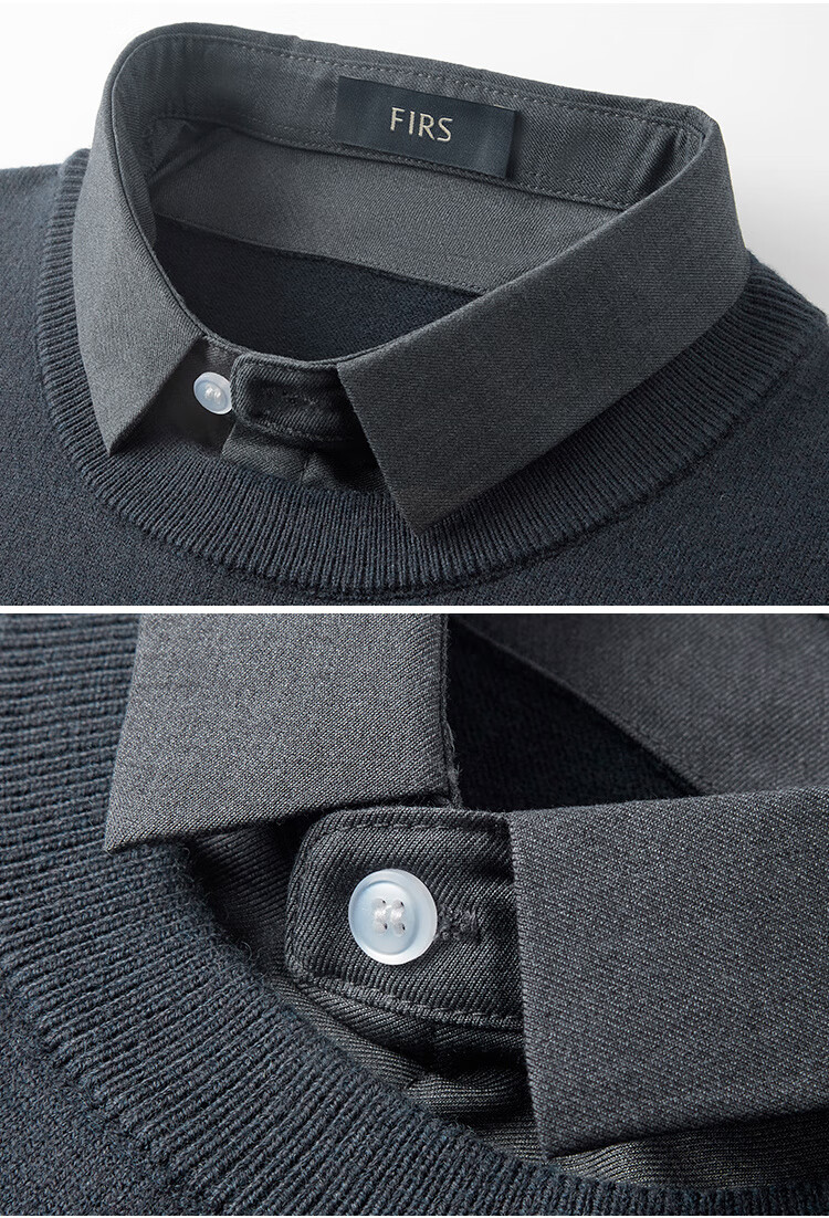 杉杉【可机洗重磅480g】秋冬羊毛新款长袖假两件毛衣男衬衫领针织衫