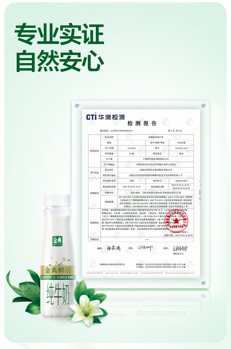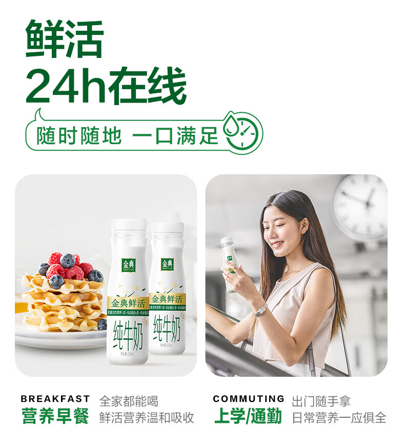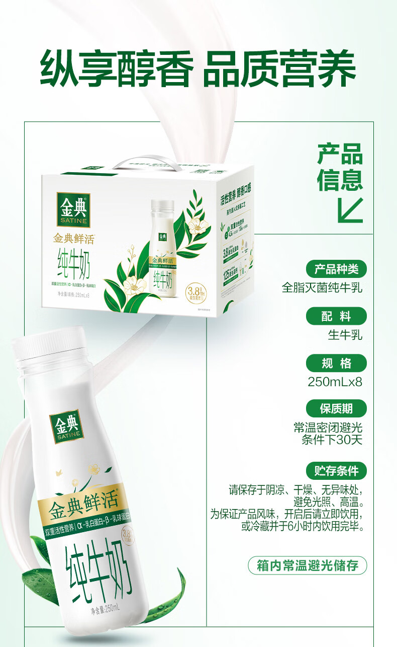 伊利金典3.8g乳蛋白 鲜活纯牛奶250ml*8瓶 30天常温短保 京东专供