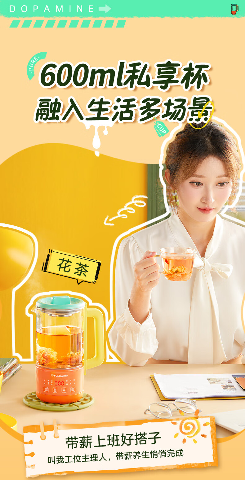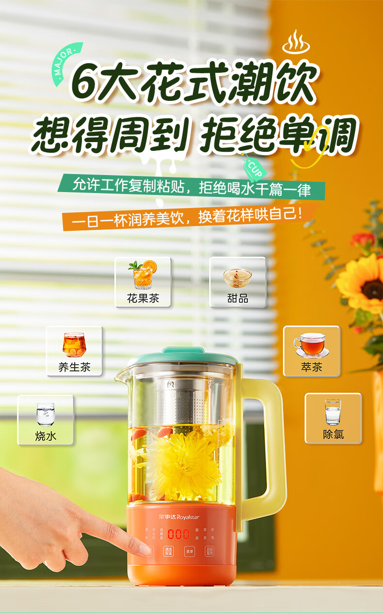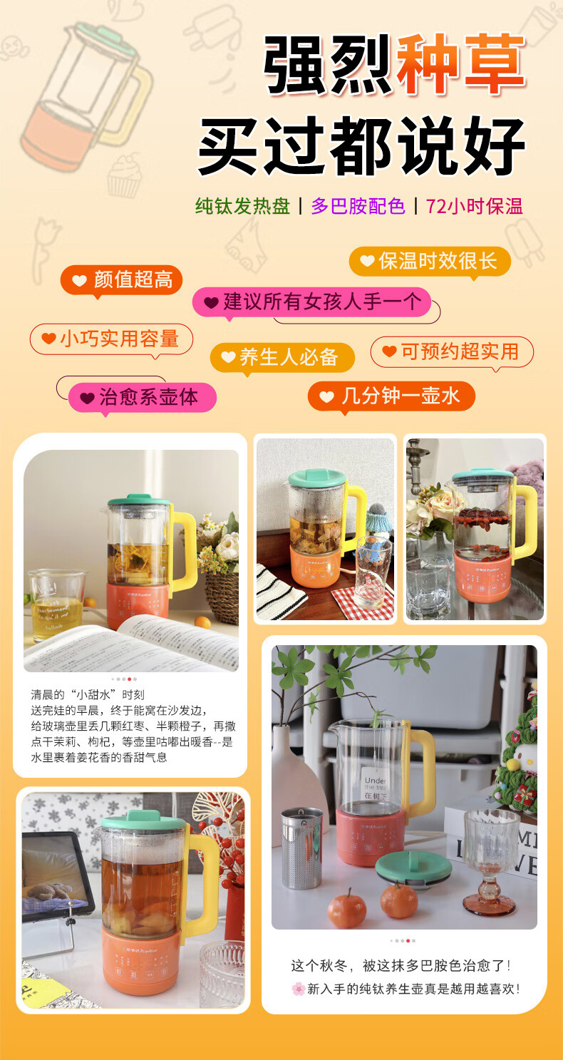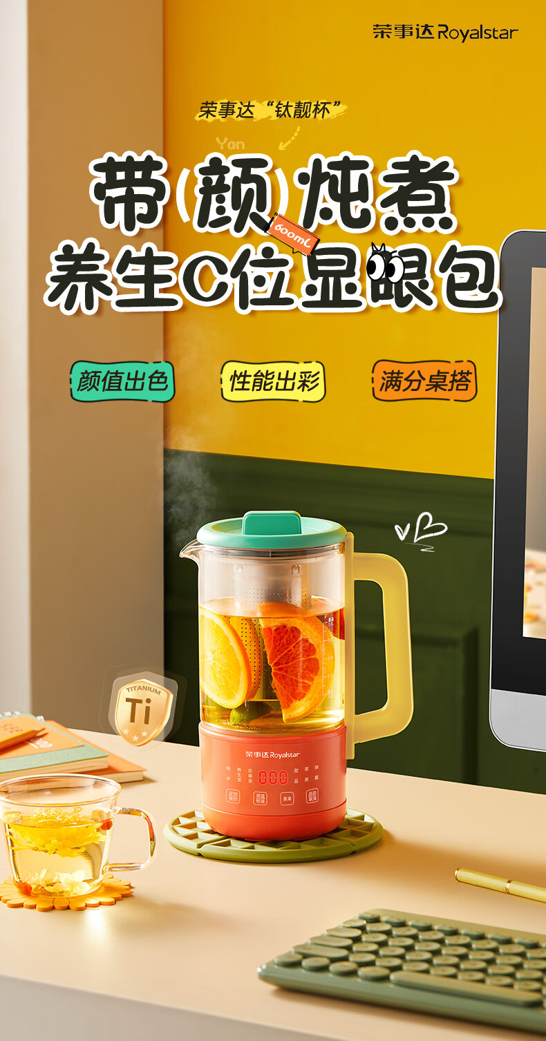 荣事达(Royalstar)养生壶纯钛 煮茶壶烧水壶热水壶办公室迷你恒温壶一人小型花茶壶女生圣诞礼物0.6升YSC618(Ti)
