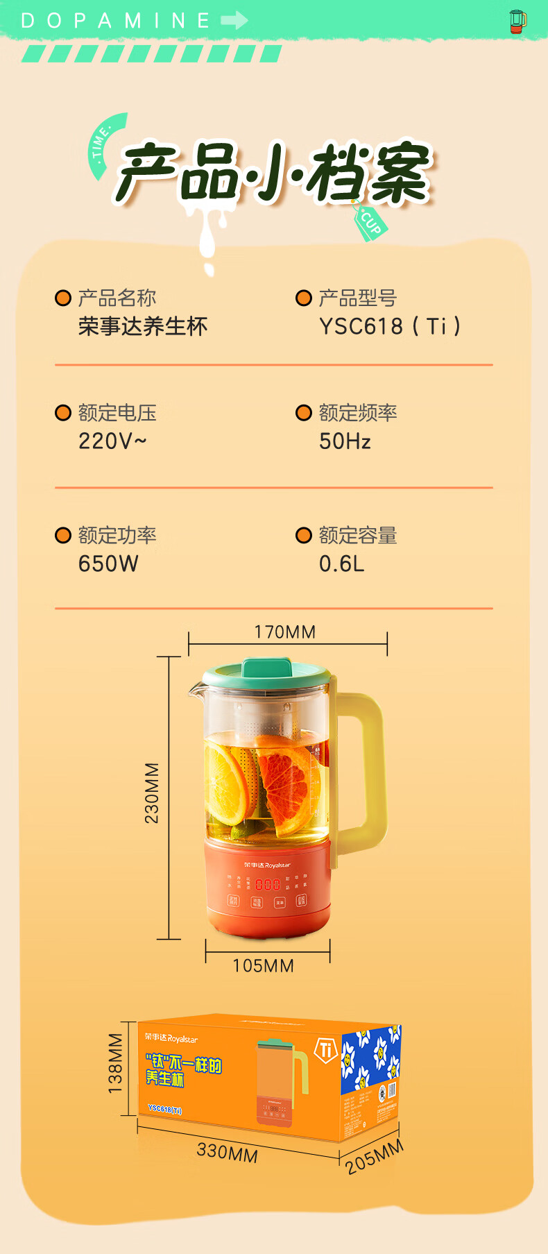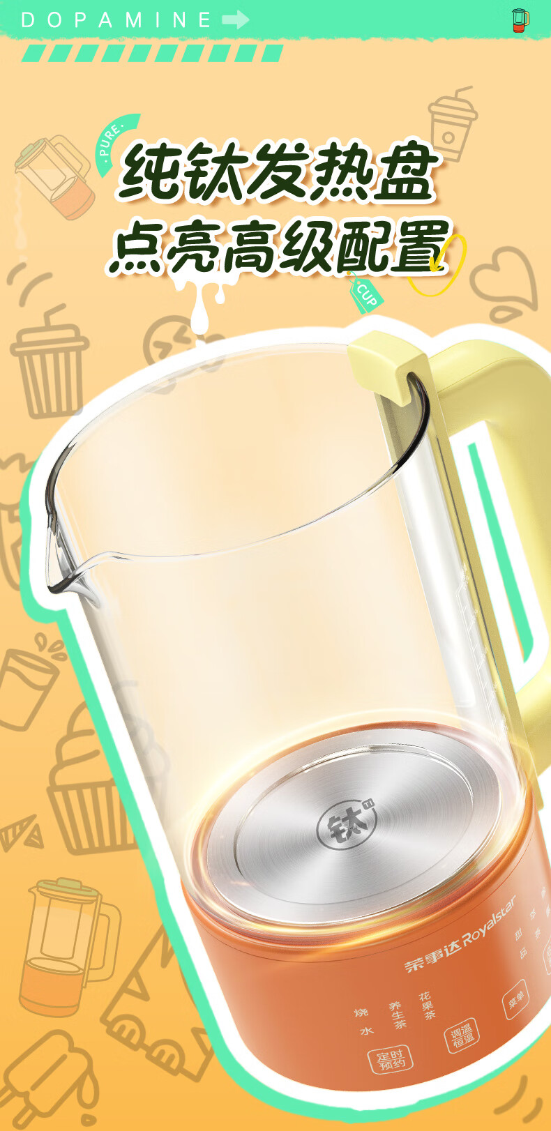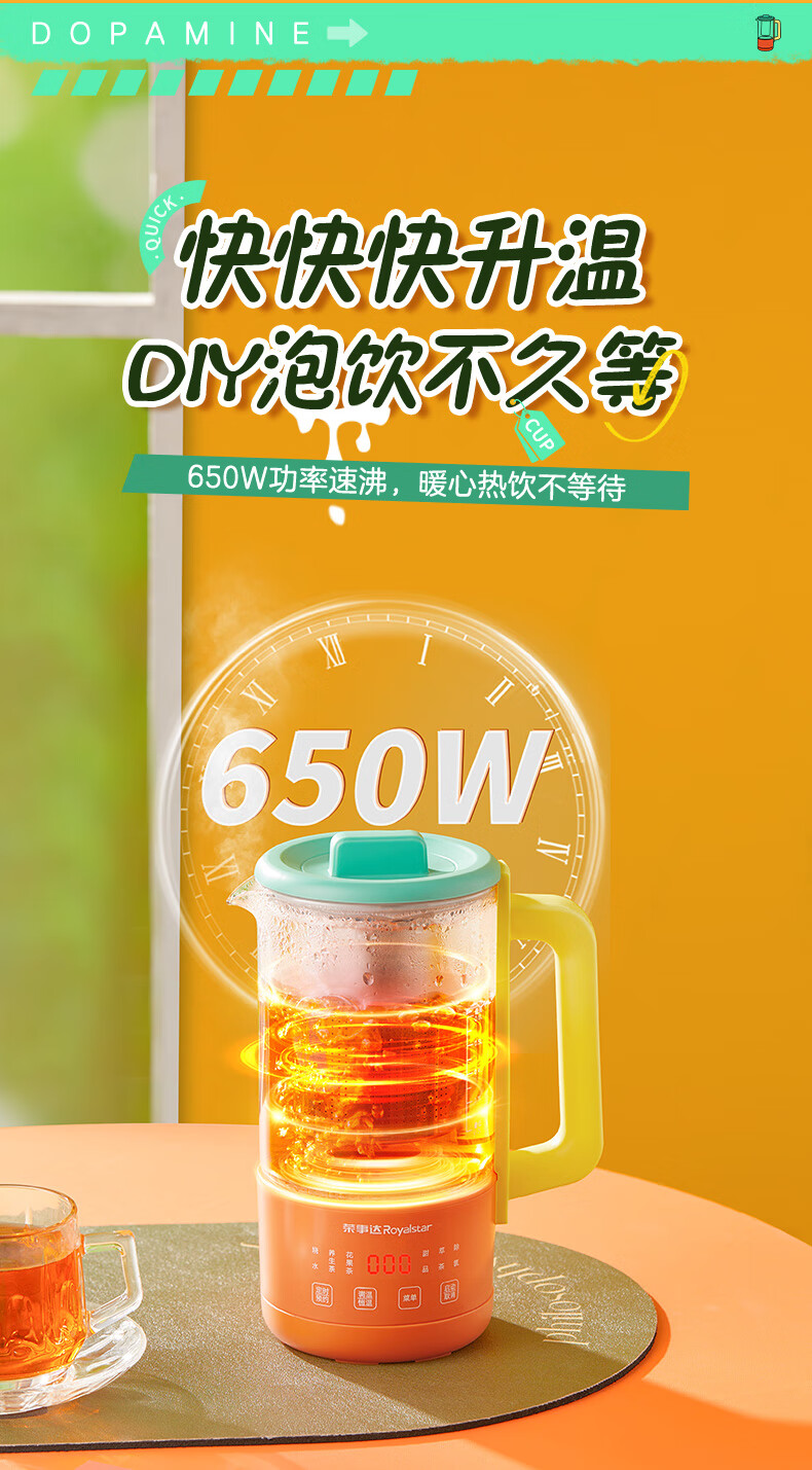 荣事达(Royalstar)养生壶纯钛 煮茶壶烧水壶热水壶办公室迷你恒温壶一人小型花茶壶女生圣诞礼物0.6升YSC618(Ti)