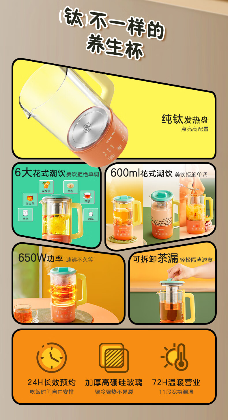 美的全玻璃养生壶 办公室烧水壶 家用多功能煮茶壶 花茶煮茶器 迷你小型电热水壶 围炉煮茶壶 【全玻璃】0金属0胶水0涂层 1L