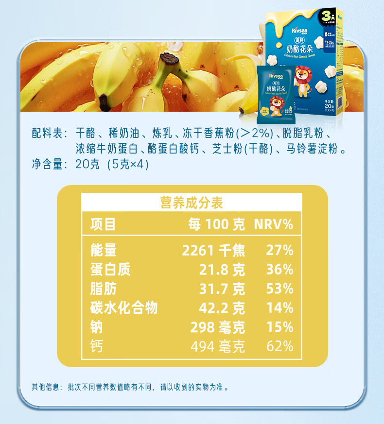 禾泱泱奶酪花朵香蕉味20g 新西兰进口干酪高钙高蛋白宝宝零食