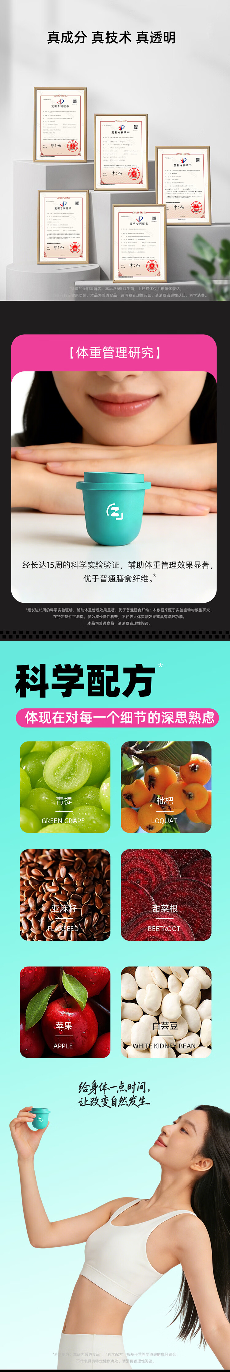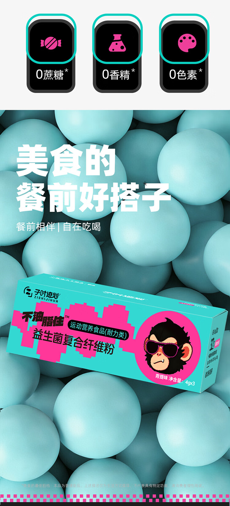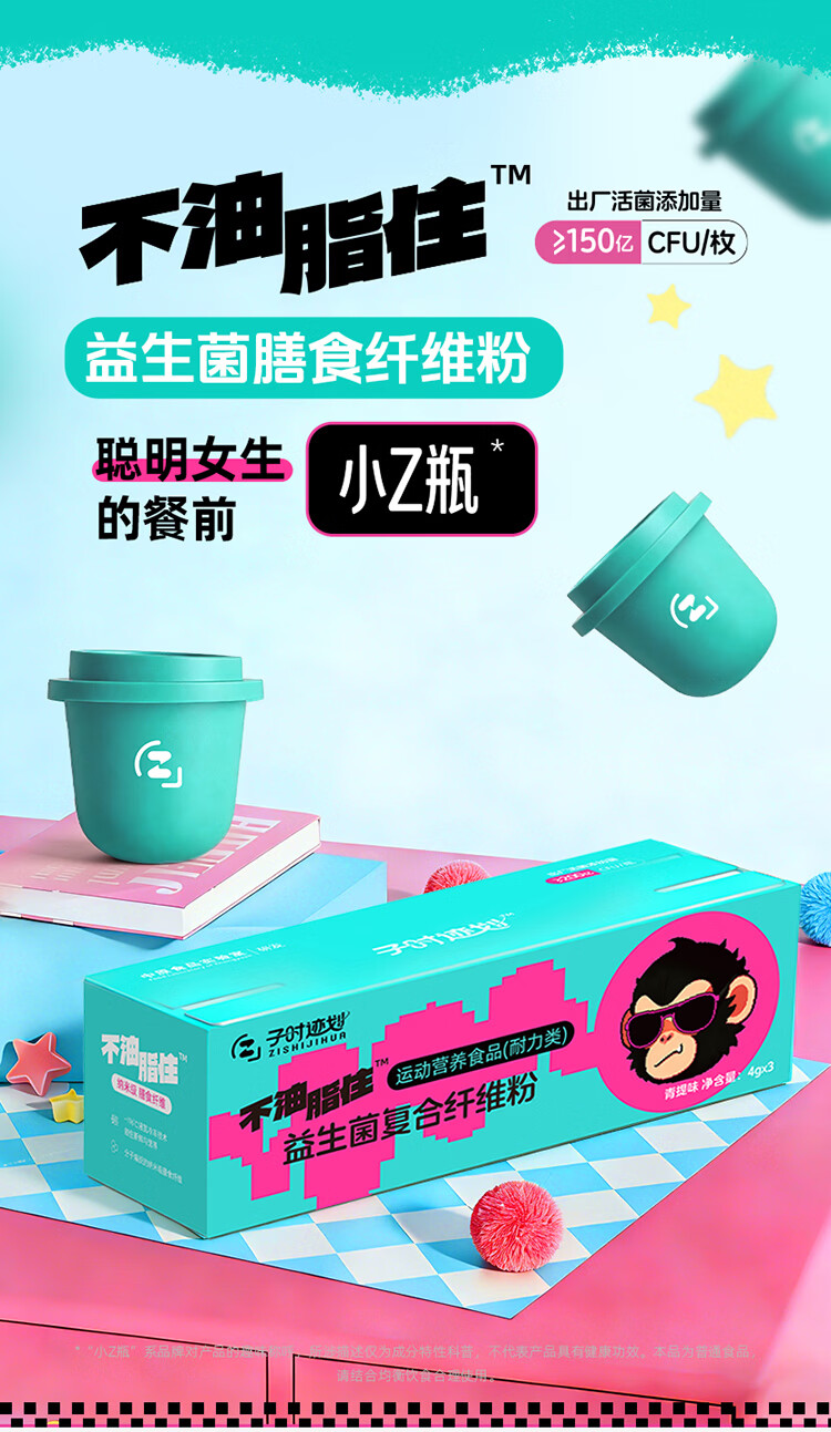 子时迹划益生菌膳食纤维粉 燃 0脂饱腹代餐白芸豆果蔬粉膳食纤维固体饮料 不油脂住™小Z瓶【进阶款】 3瓶*6盒 +定制运动毛巾