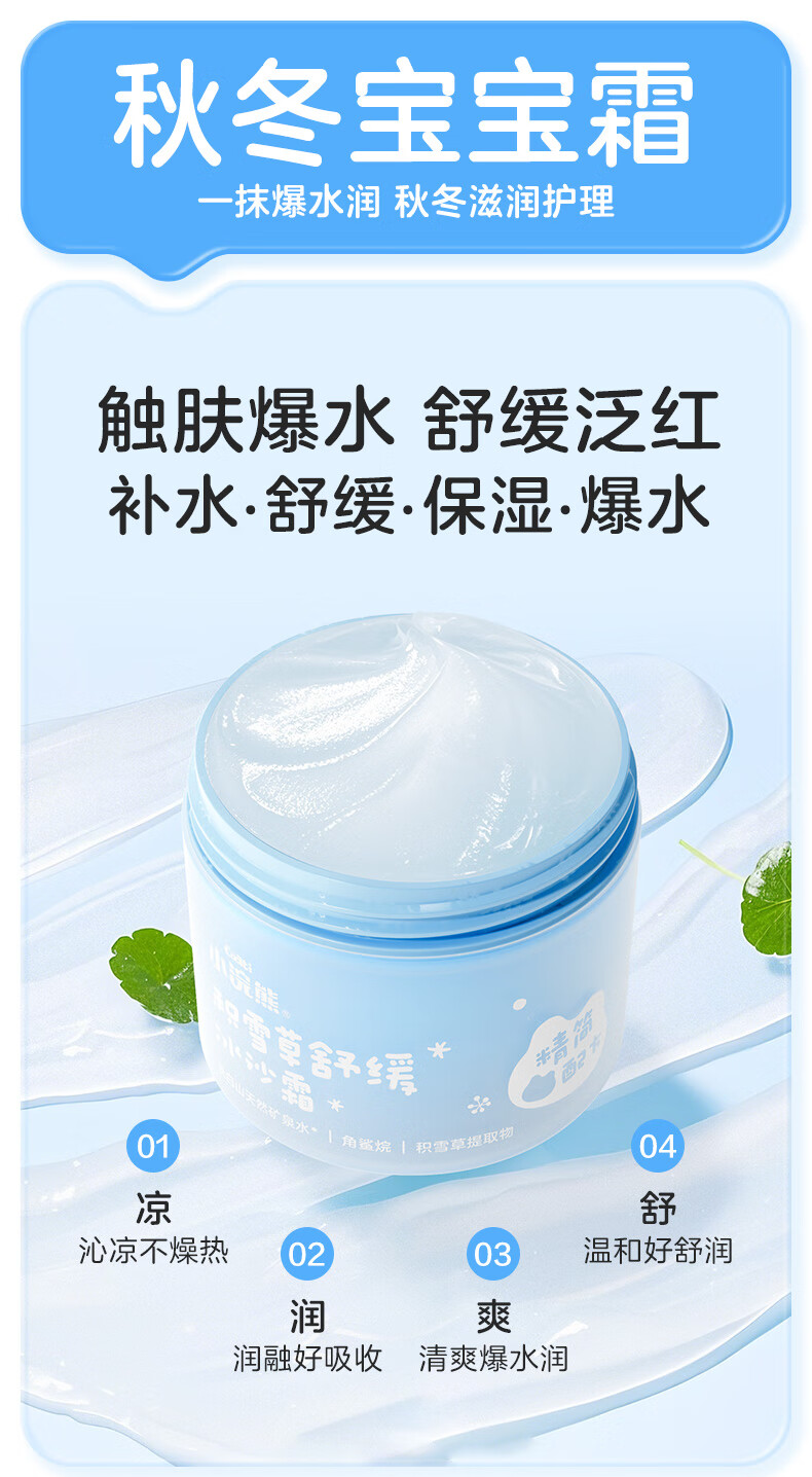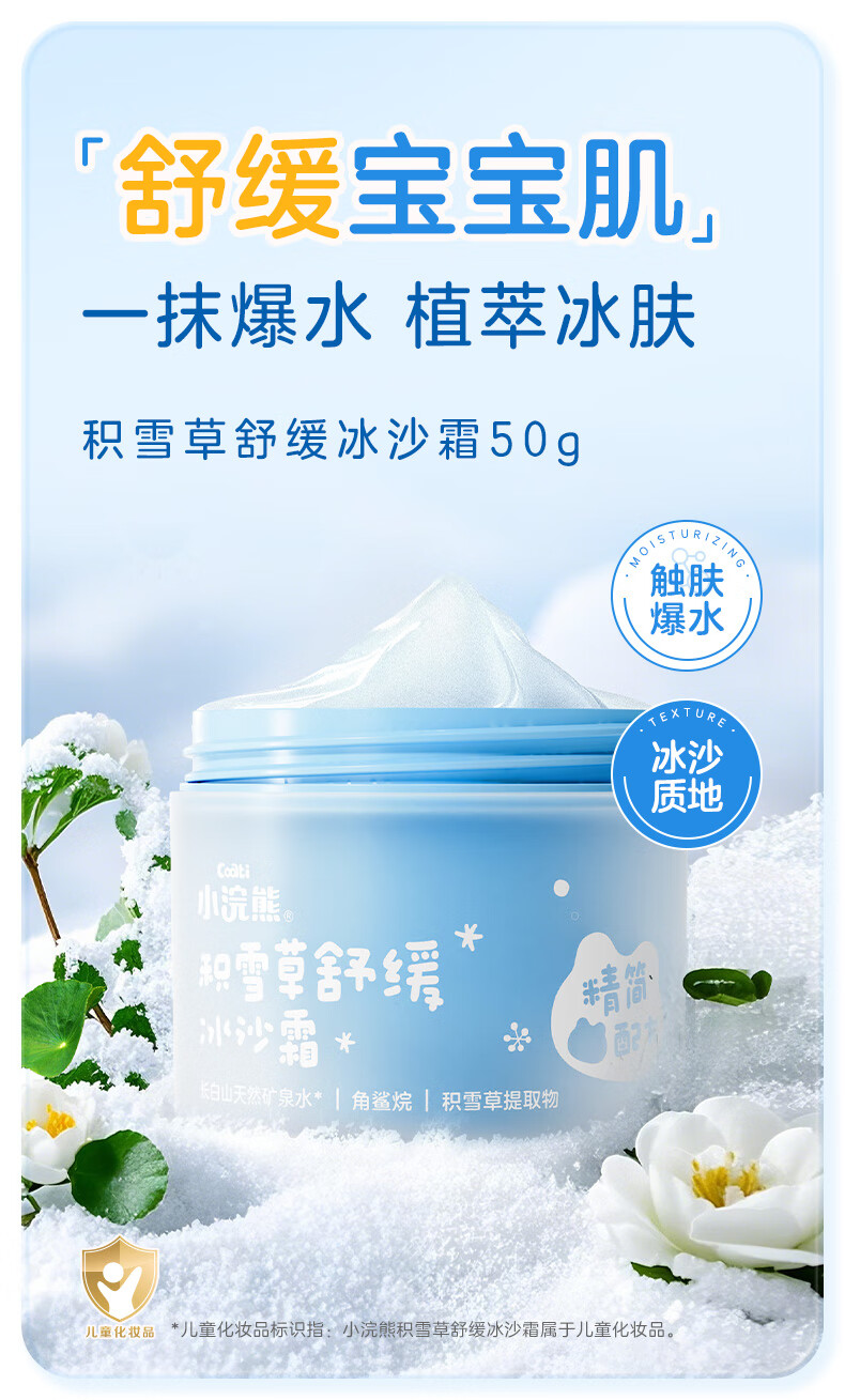 小浣熊儿童面霜 秋冬滋润霜 宝宝冰沙霜 舒缓凉感保湿补水温和滋润 积雪草舒缓冰沙霜50g*2瓶