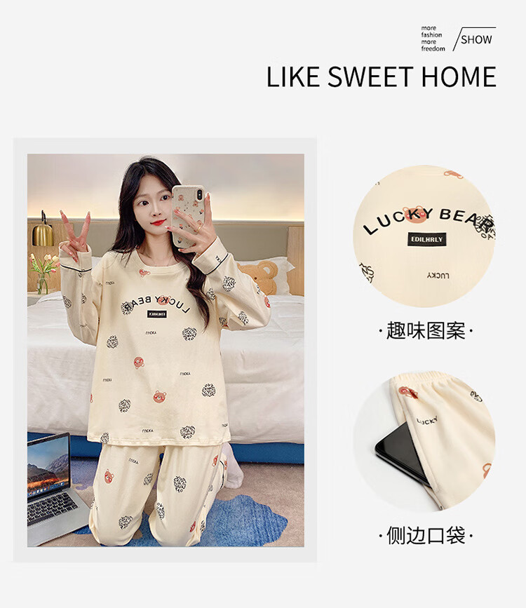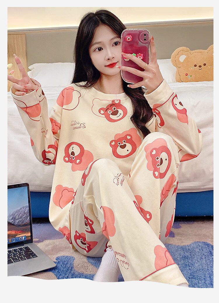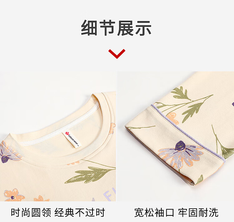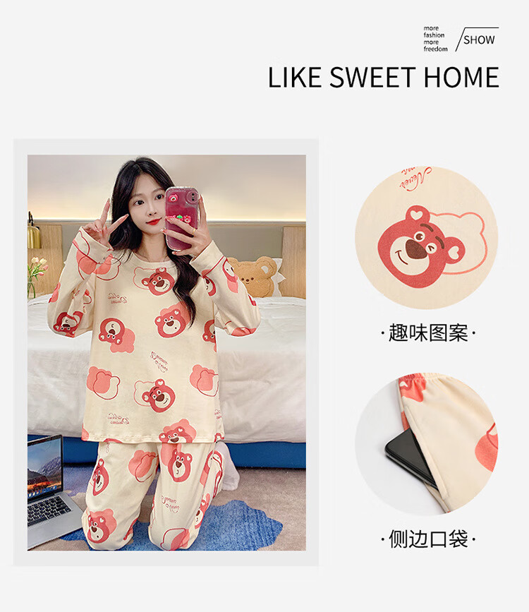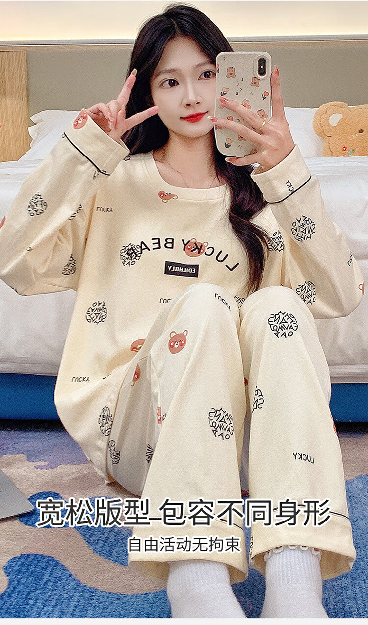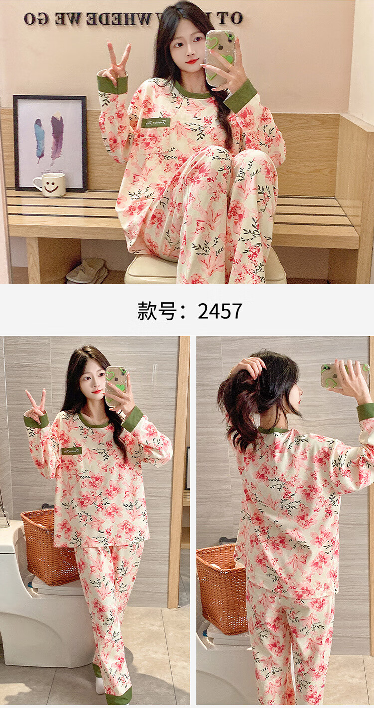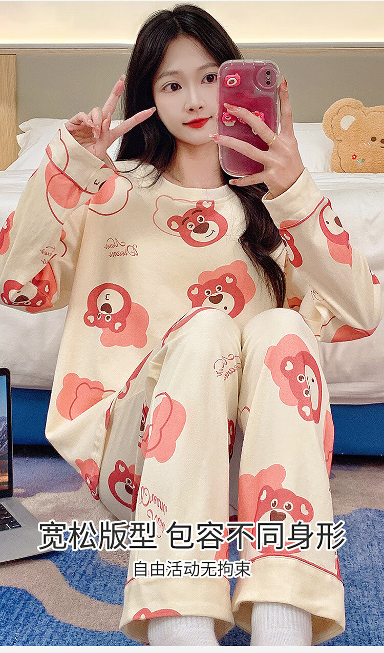 DAPHNE达芙妮【M】自带胸垫睡衣甜美女春秋季牛奶丝长袖长裤套装 XJM-2463【带胸垫】套装 XXL(130-150斤)