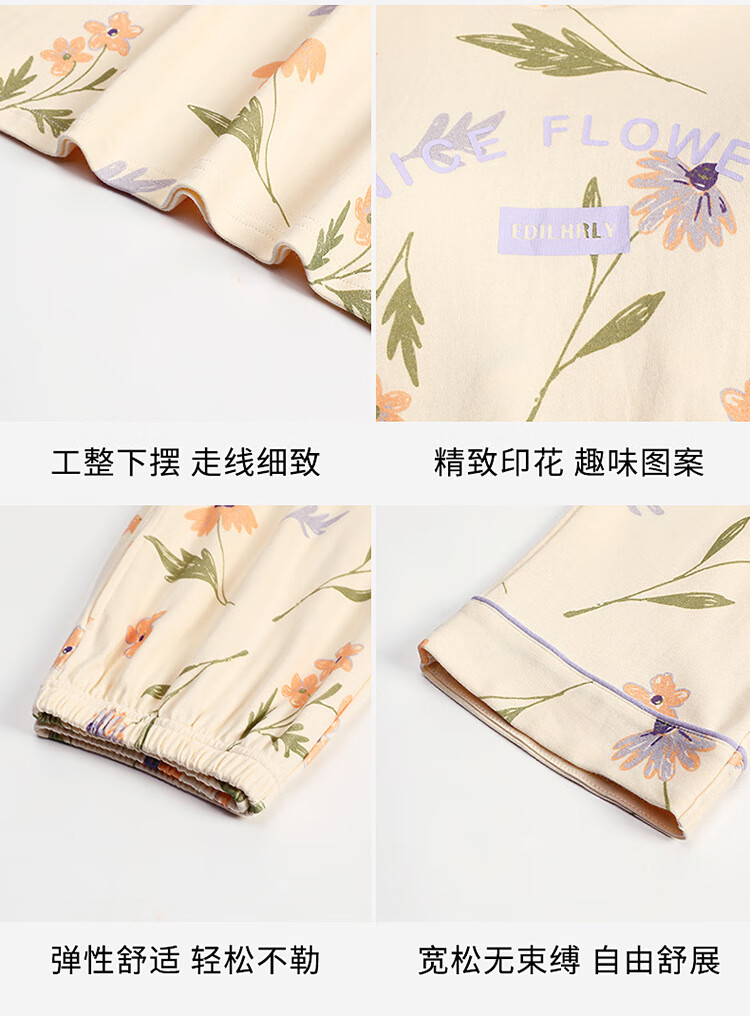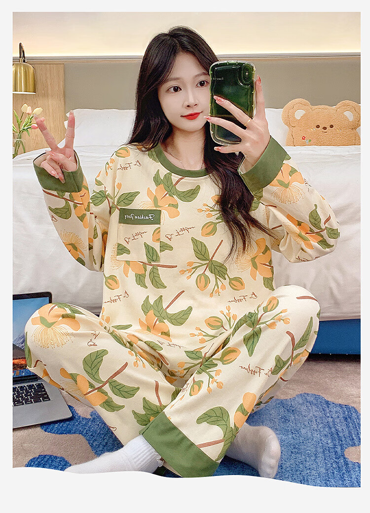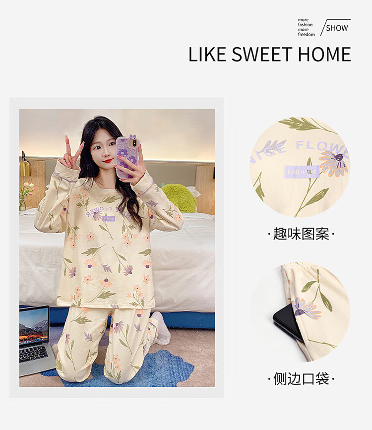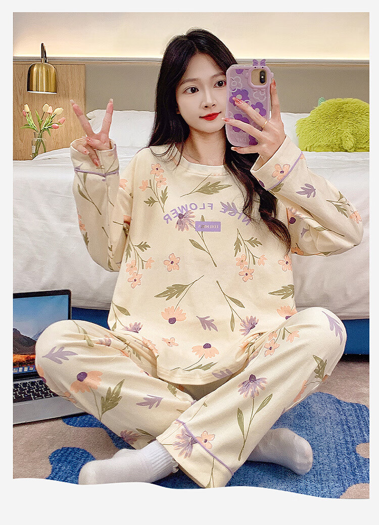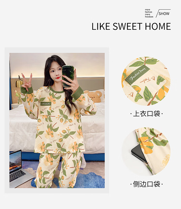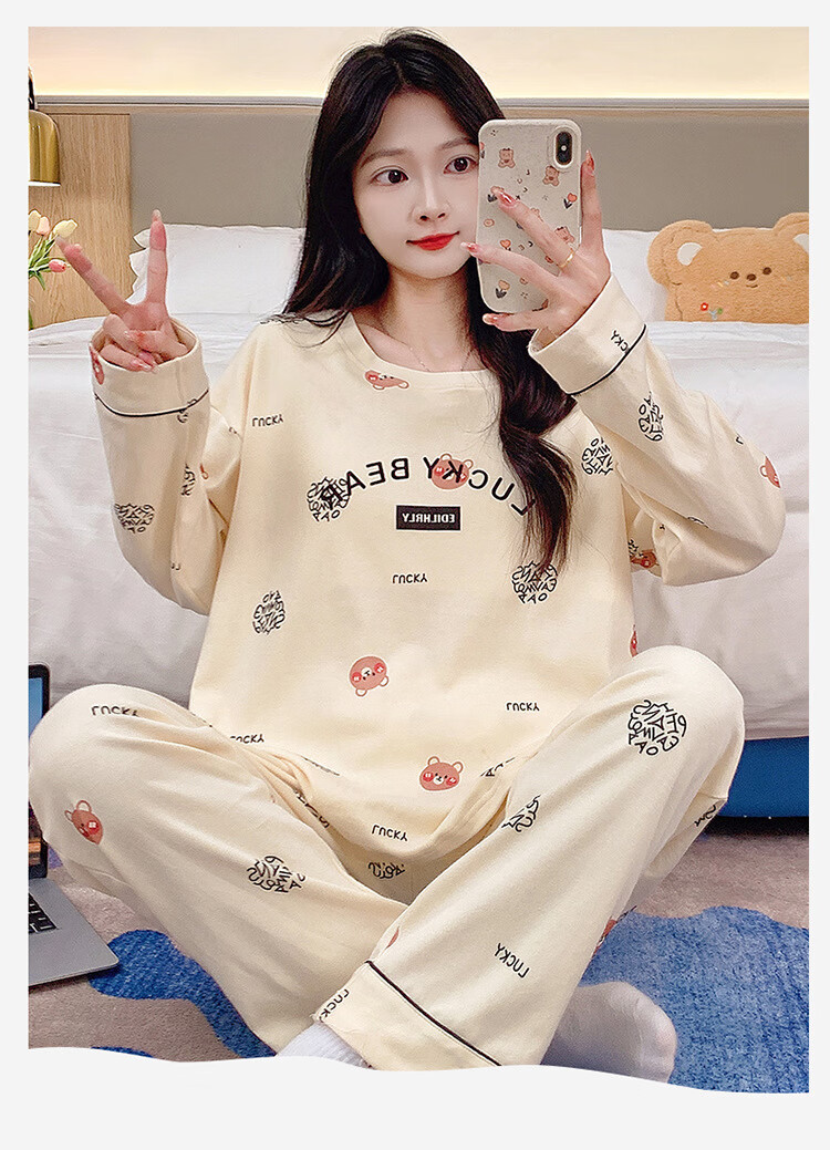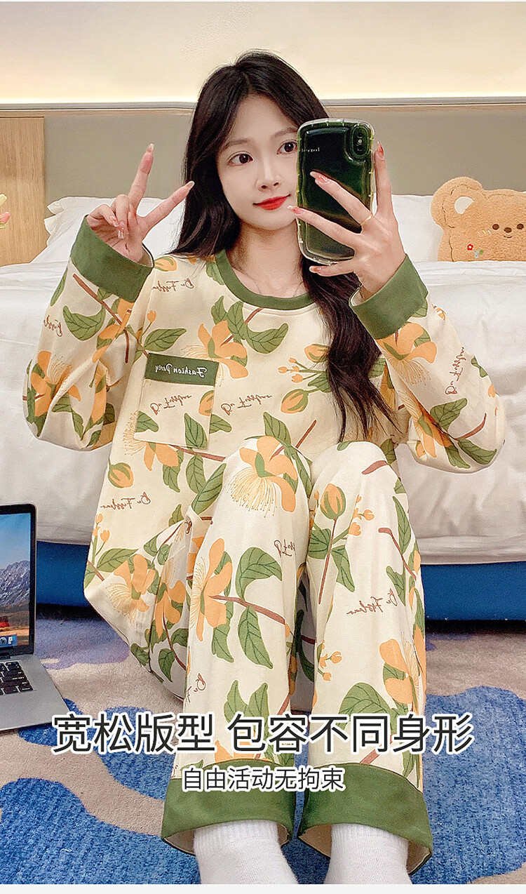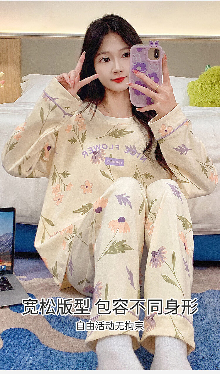 DAPHNE达芙妮【M】自带胸垫睡衣甜美女春秋季牛奶丝长袖长裤套装 XJM-2463【带胸垫】套装 XXL(130-150斤)