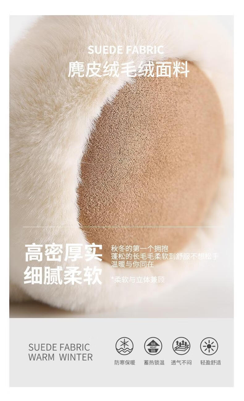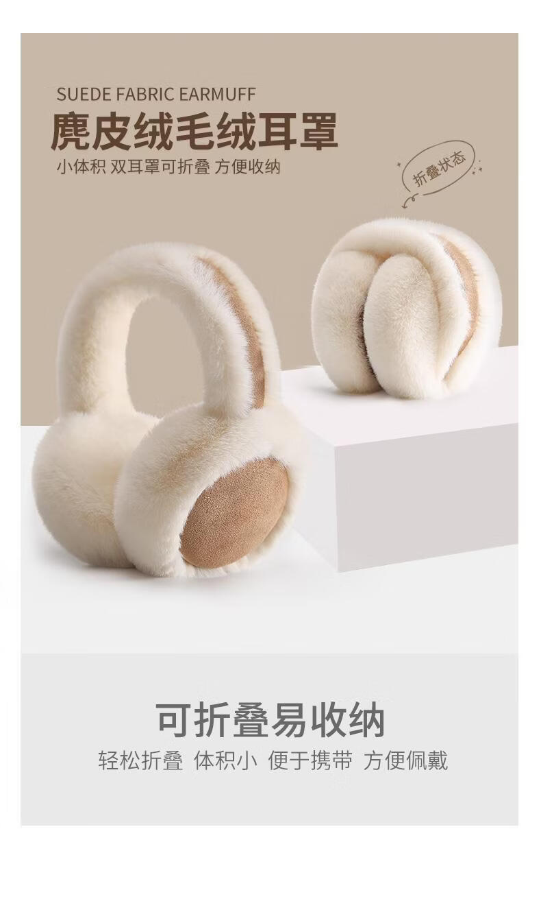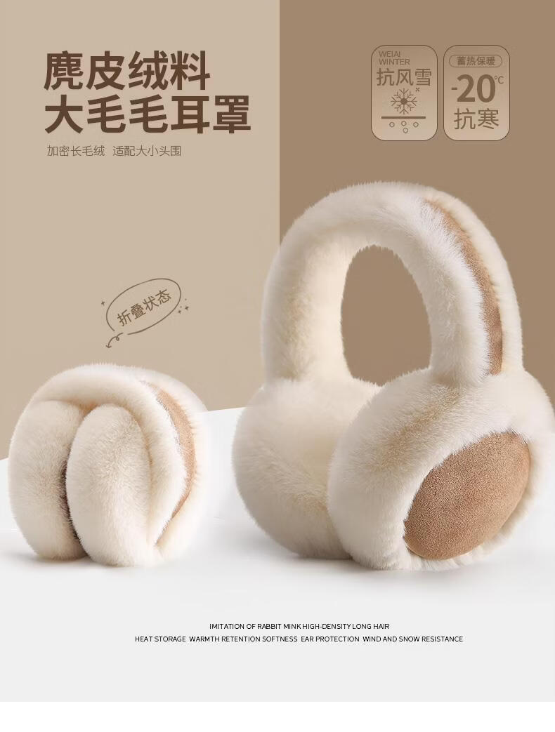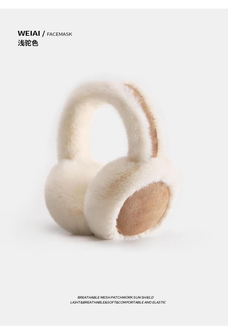 洋臣麂皮绒毛绒耳罩女冬季韩版加绒保暖耳套骑行防寒耳暖防冻耳捂子 【拼色耳罩】-卡其色*1件