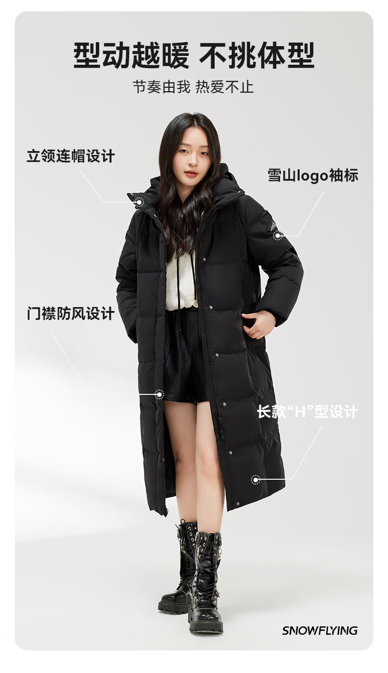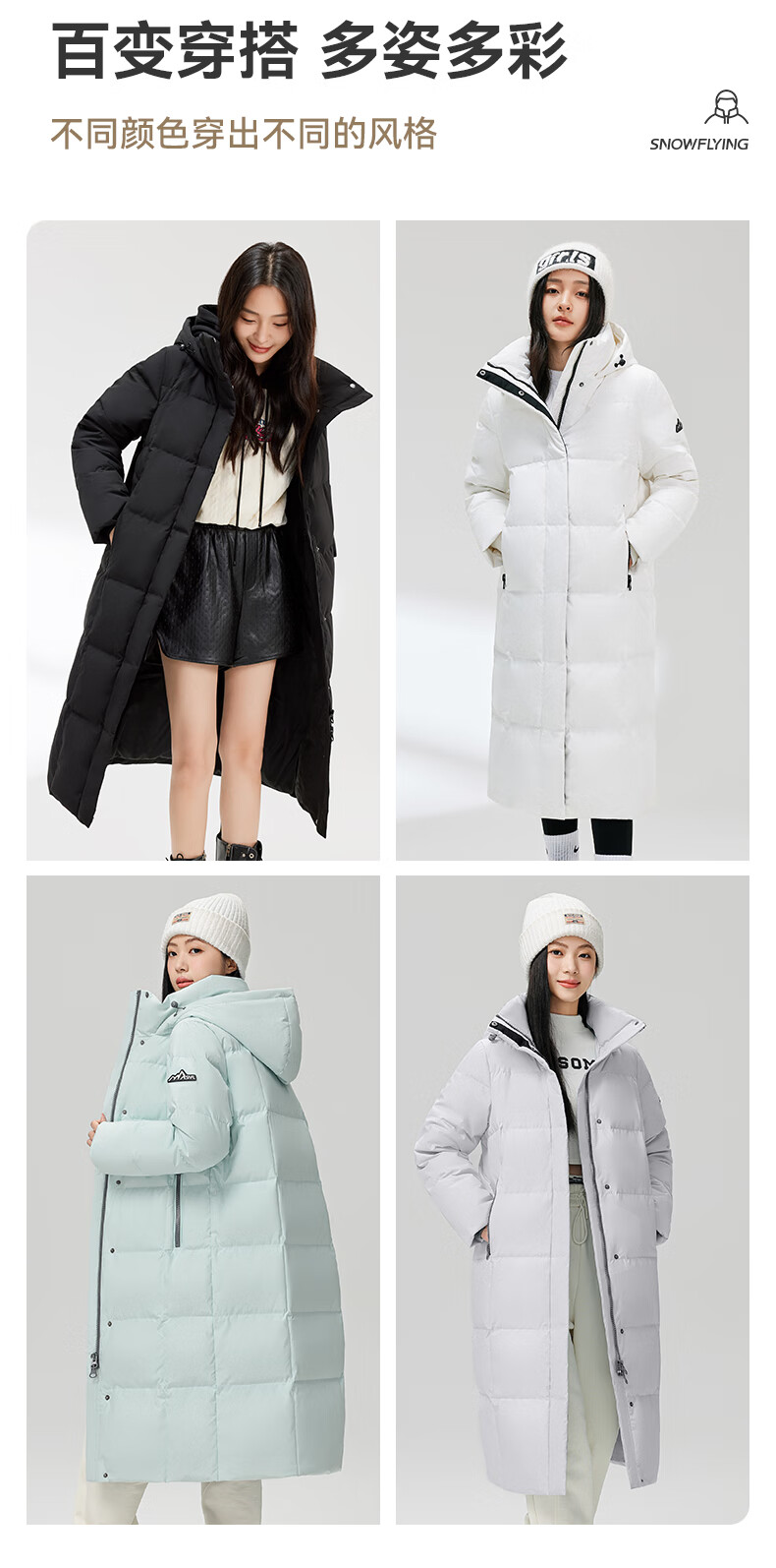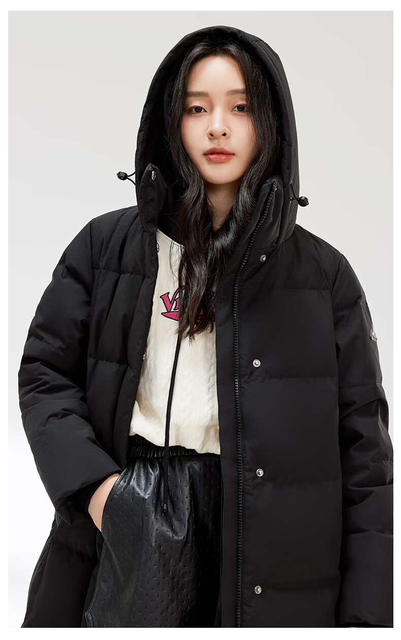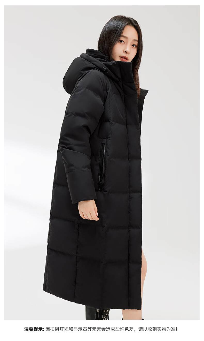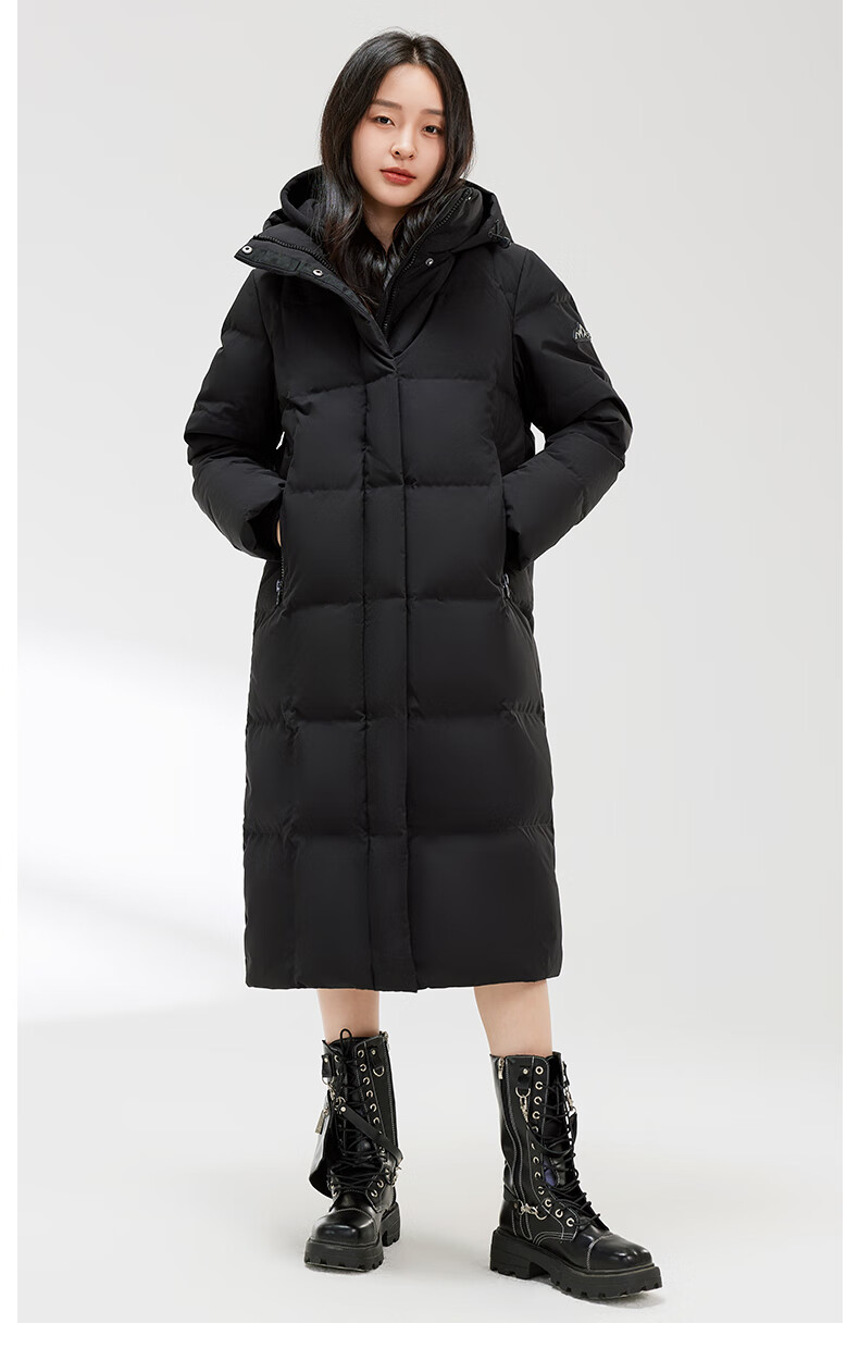 雪中飞【鹅绒】羽绒服女士大长款连帽2025冬爆款修身防寒保暖外套 黑色|8056 L 170/92A