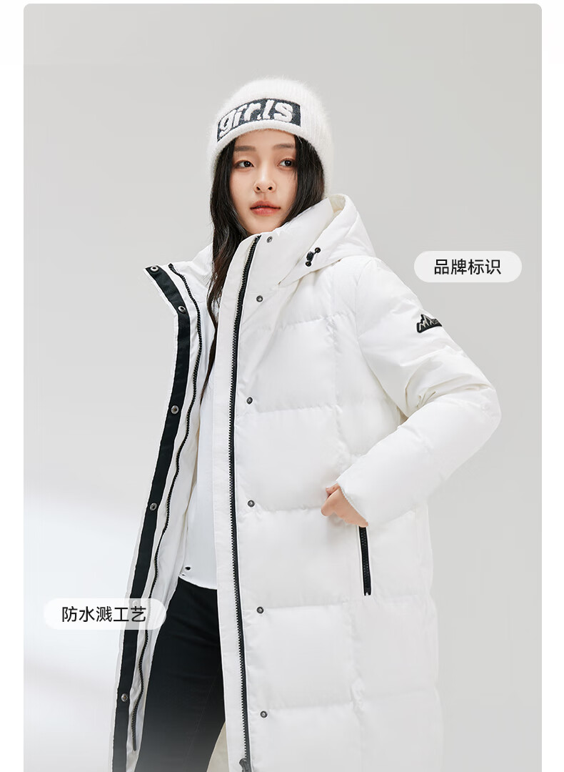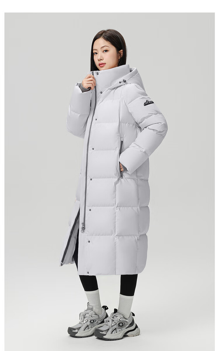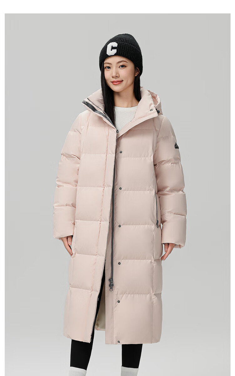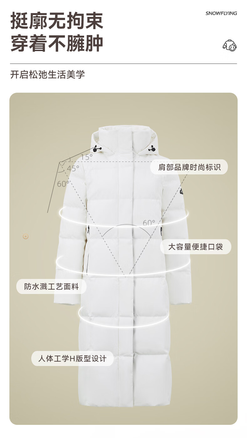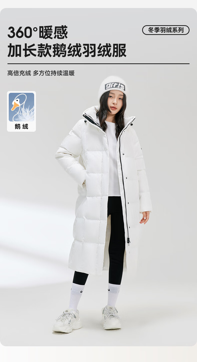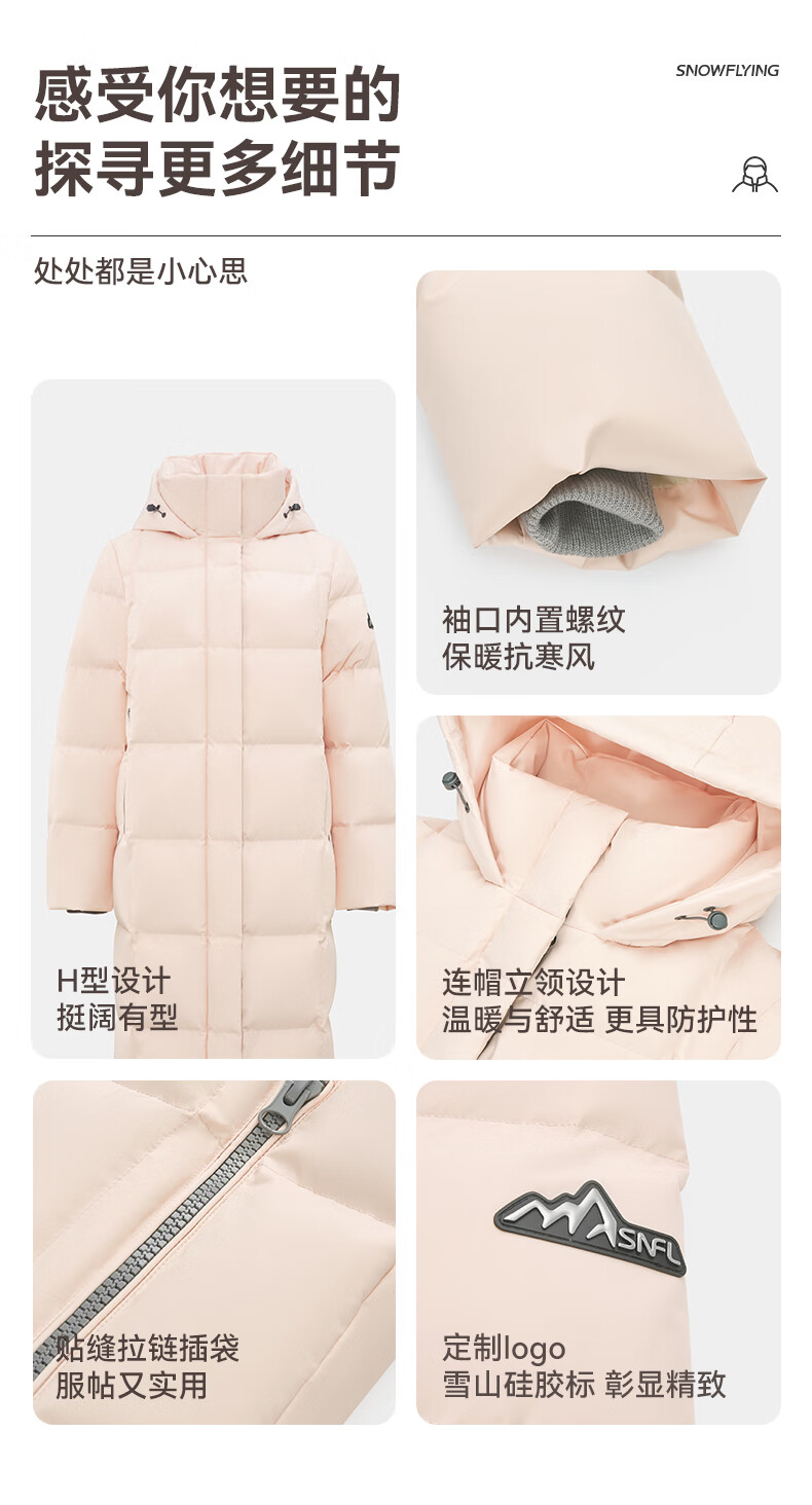 雪中飞【鹅绒】羽绒服女士大长款连帽2025冬爆款修身防寒保暖外套 黑色|8056 L 170/92A