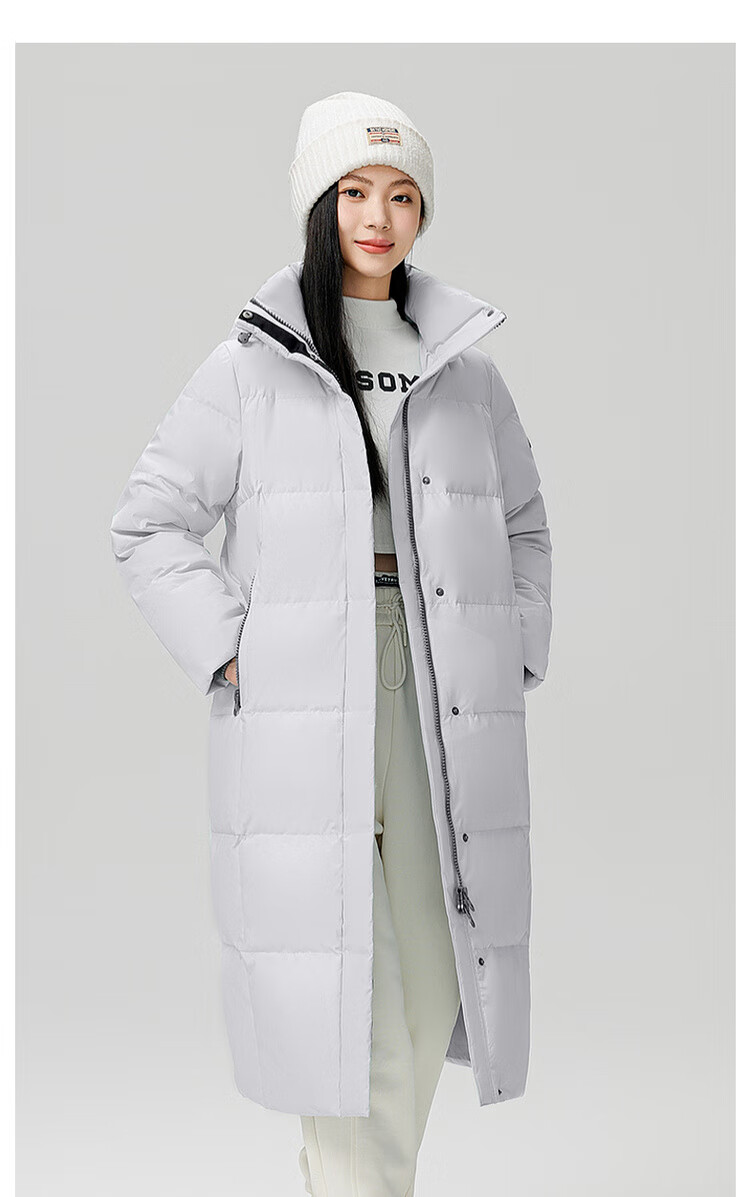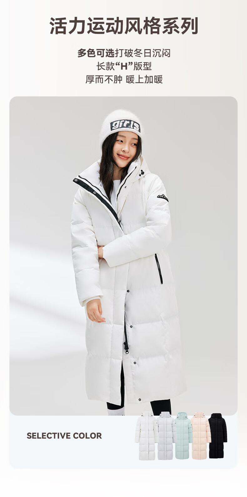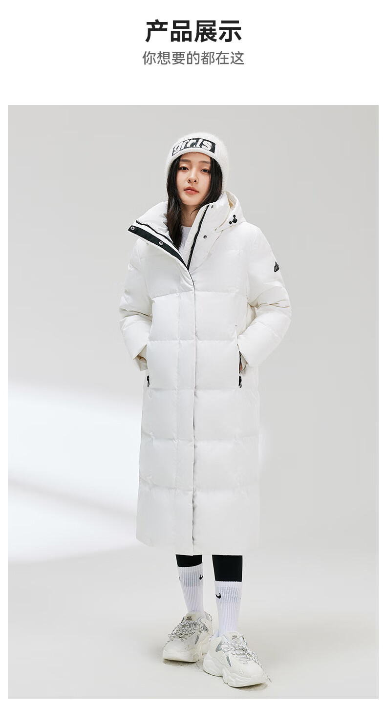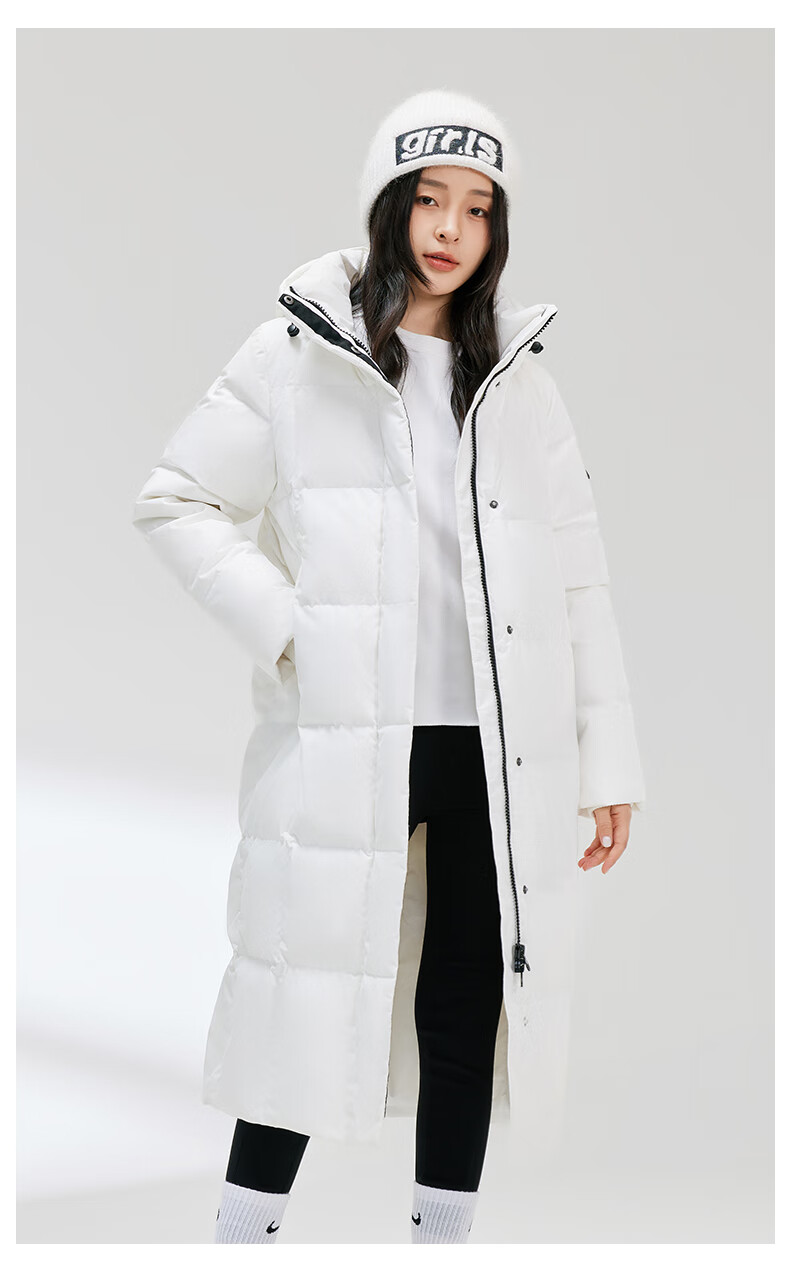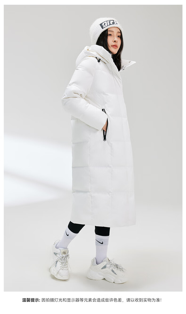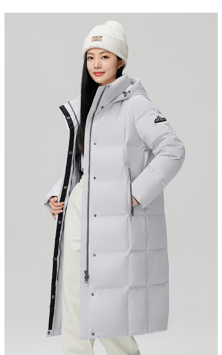 雪中飞【鹅绒】羽绒服女士大长款连帽2025冬爆款修身防寒保暖外套 黑色|8056 L 170/92A