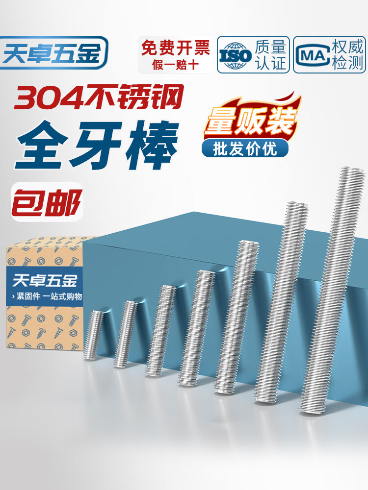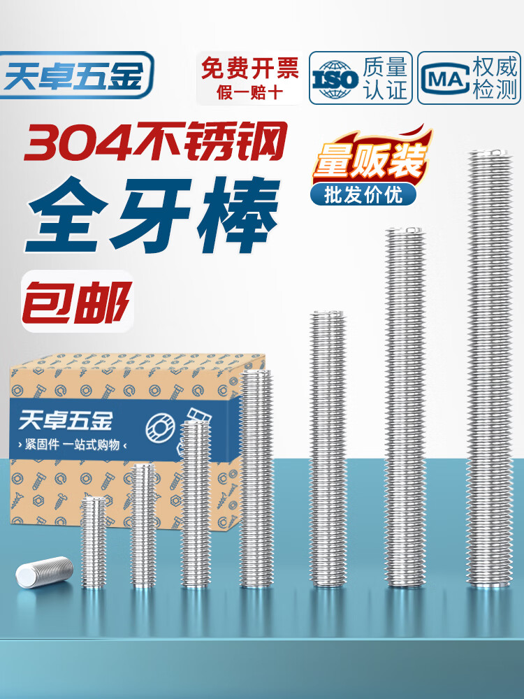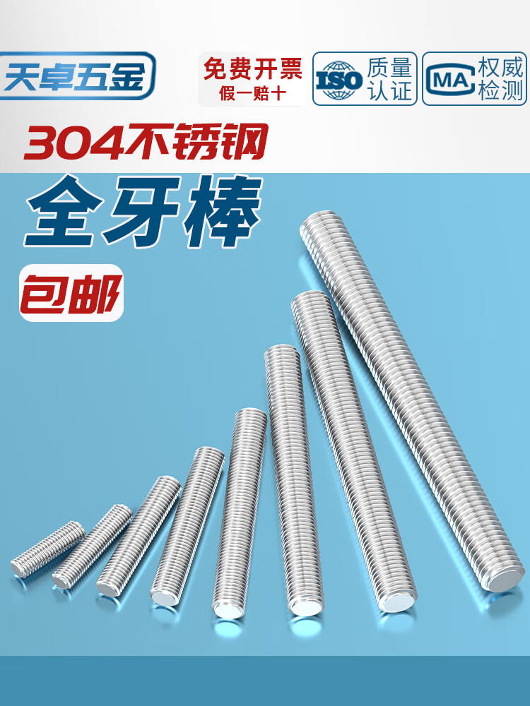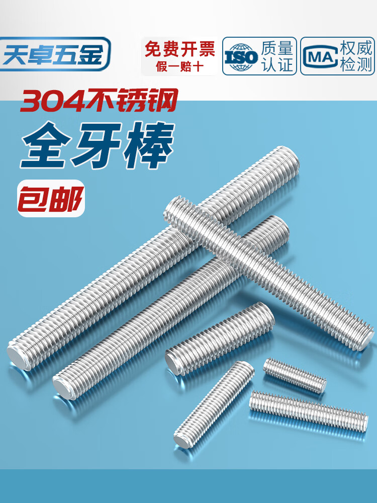 天卓五金M2M2.5M18M20M22M24mm 304不锈钢牙条丝杆通丝全螺纹螺杆螺丝牙棒 M2*16-80个