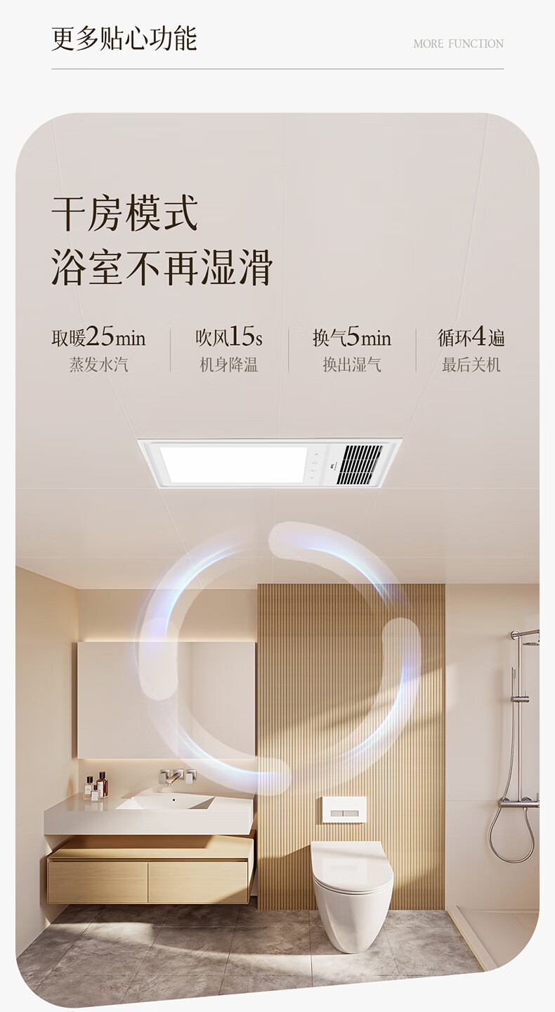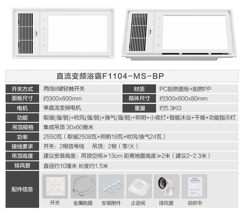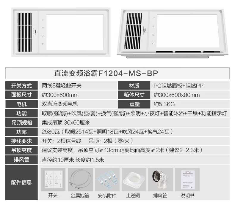 欧普照明(OPPLE)风暖浴霸灯取暖浴室排气扇一体集成吊顶卫生间暖风机S 【F1204-MS】直流双电机/变频恒温取暖