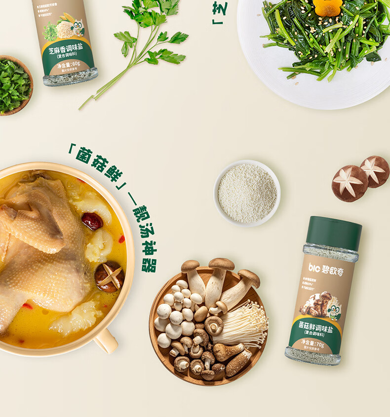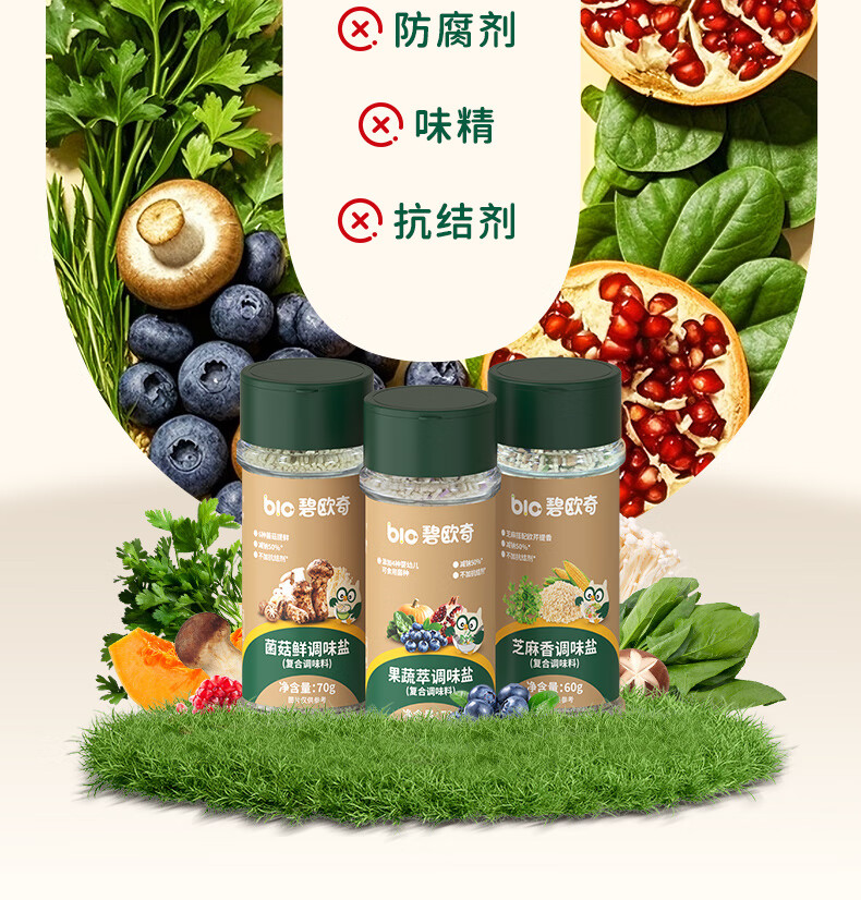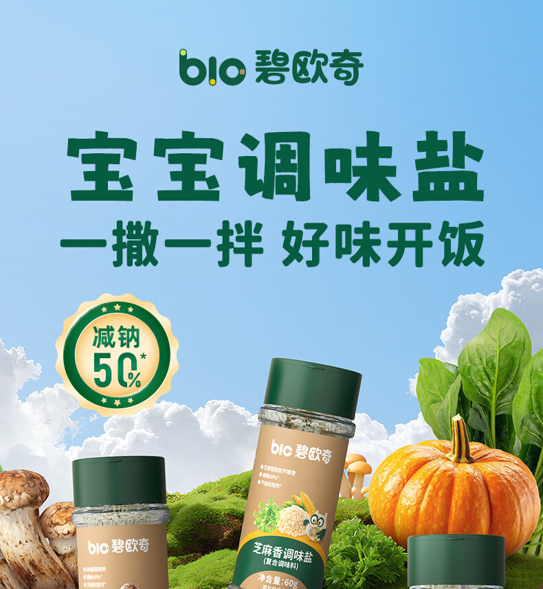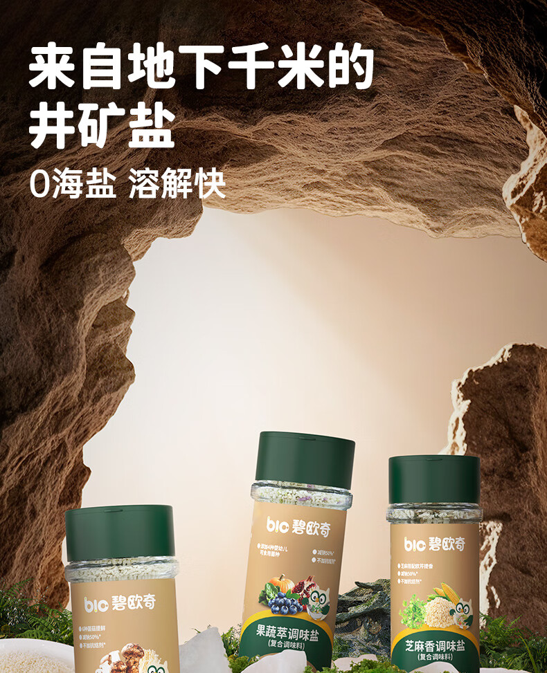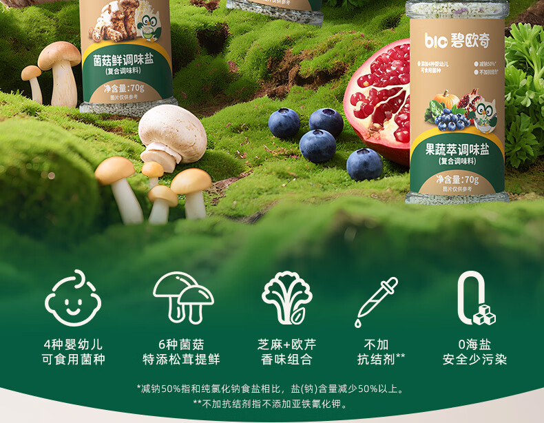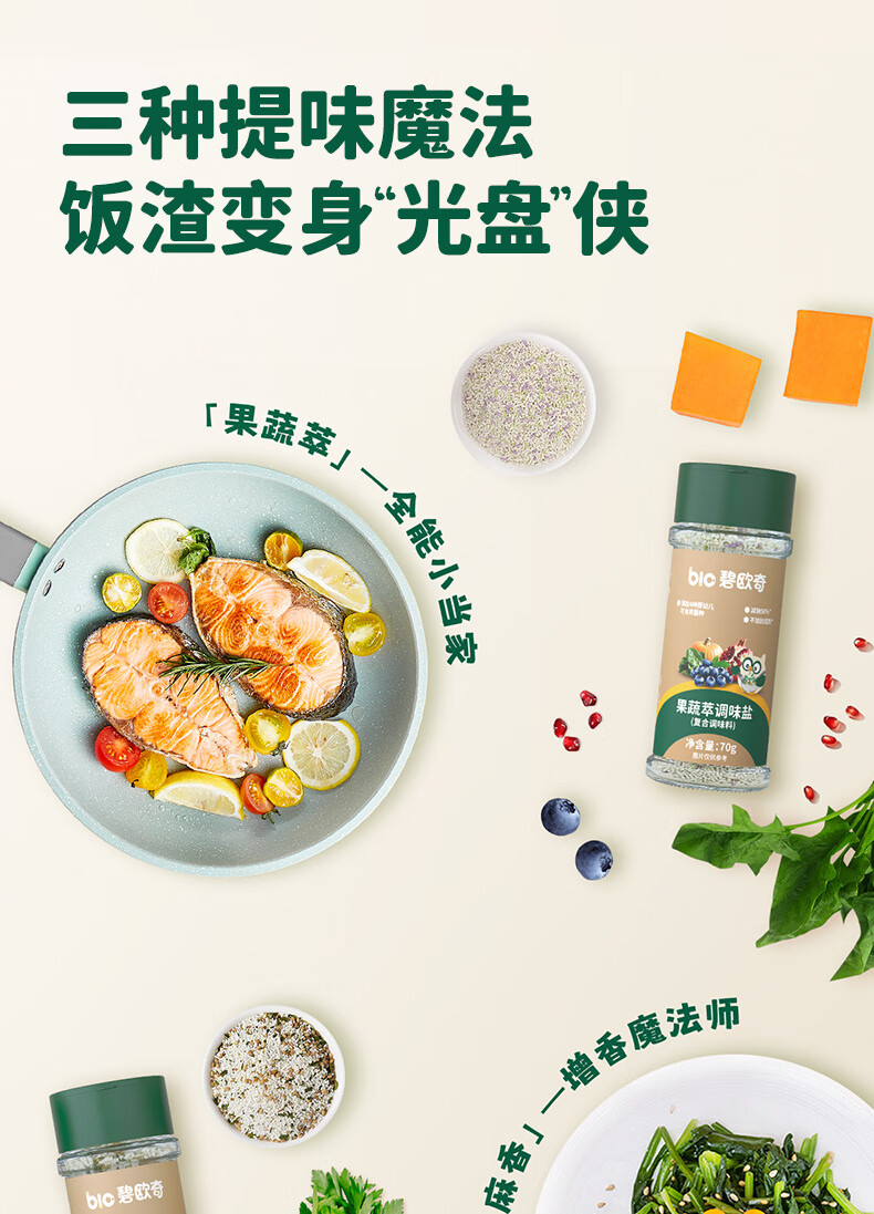 碧欧奇宝宝盐果蔬盐减钠辅食用盐调味料拌饭料食用盐送婴幼儿食谱 松茸酱油100ml+果蔬萃盐70g