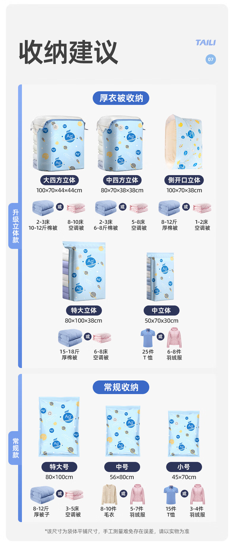 太力真空压缩收纳袋衣服棉被子幼儿园行李箱压缩袋羽绒服真空打包袋 【真抗菌】5特大立体5中立体1电泵