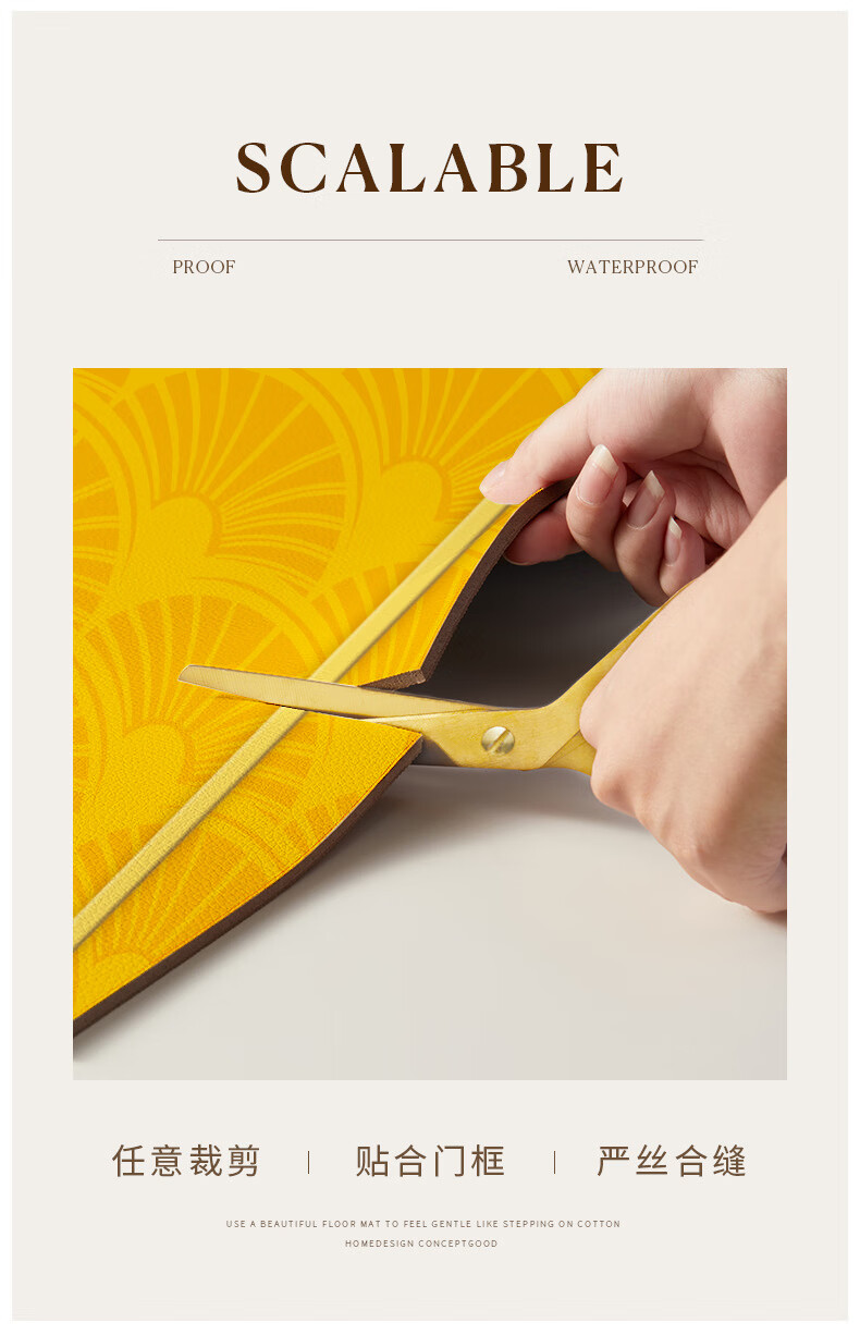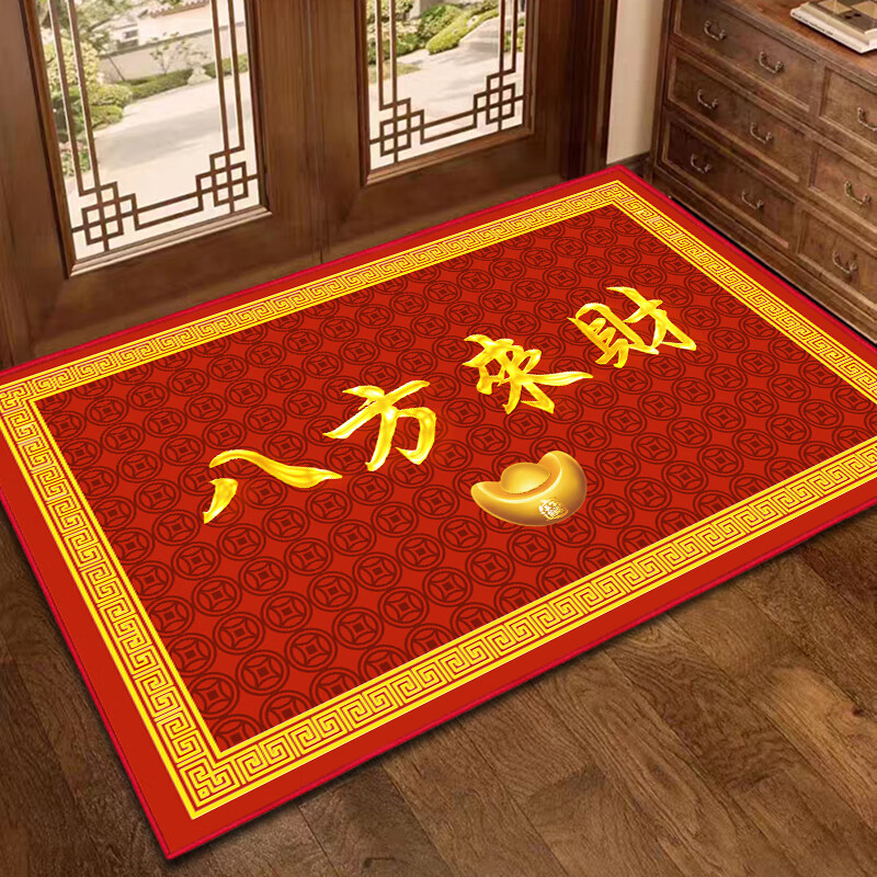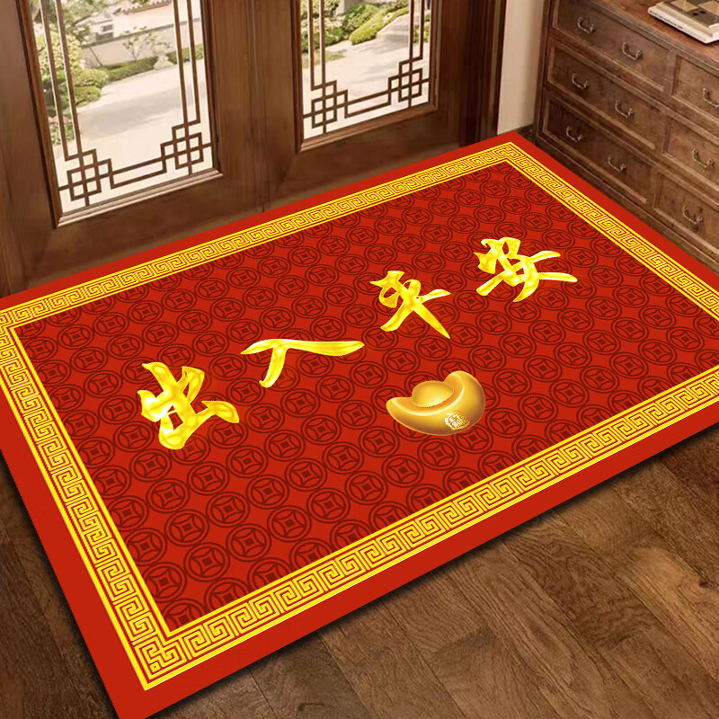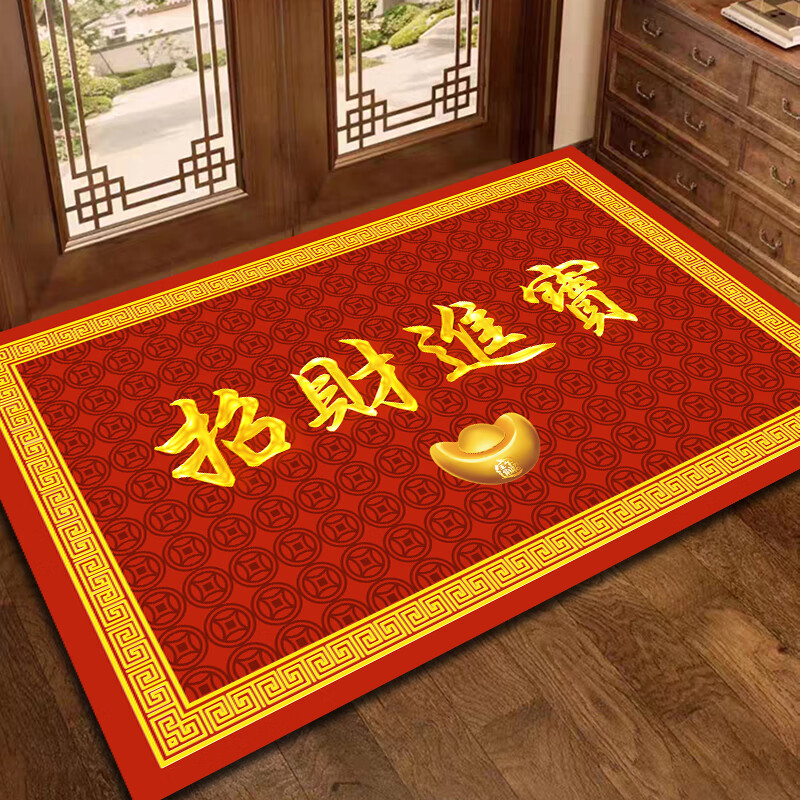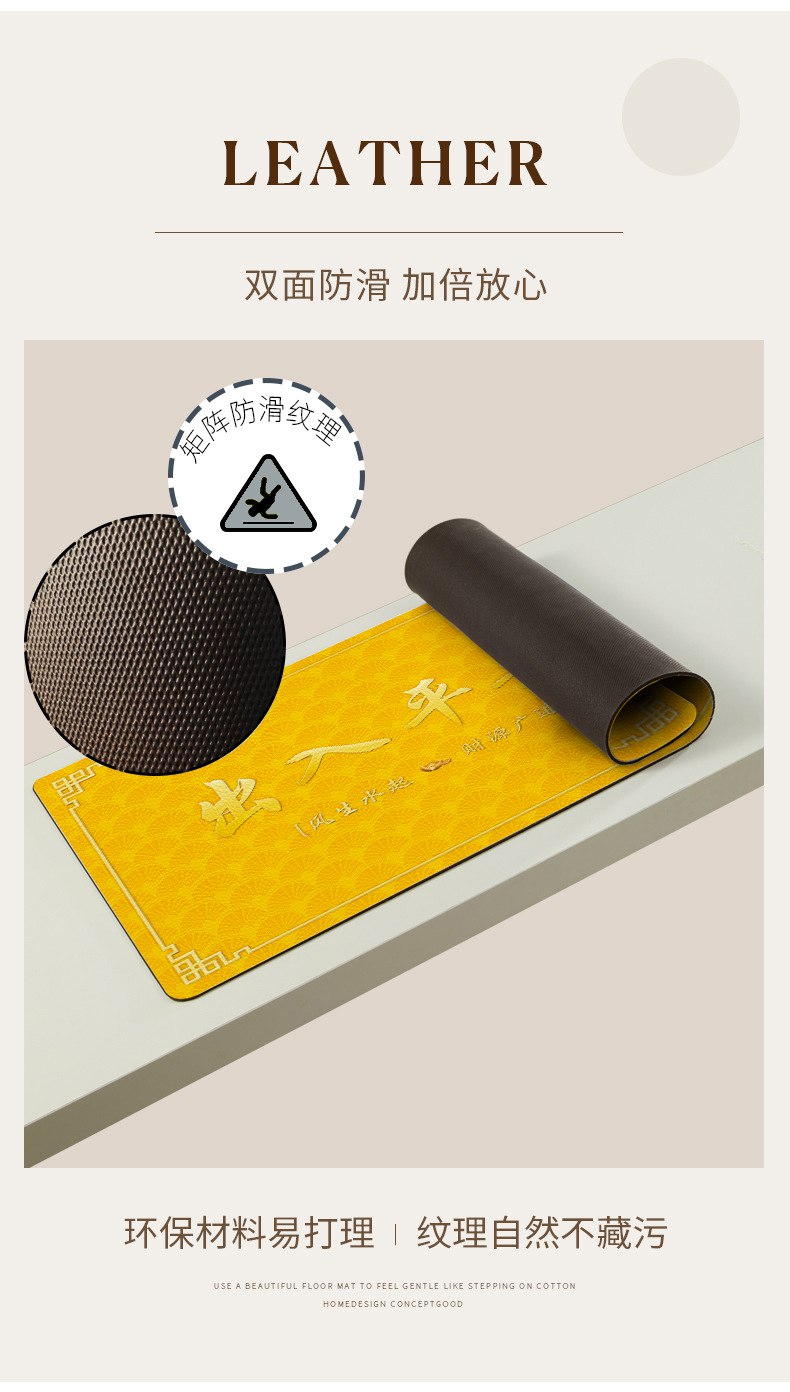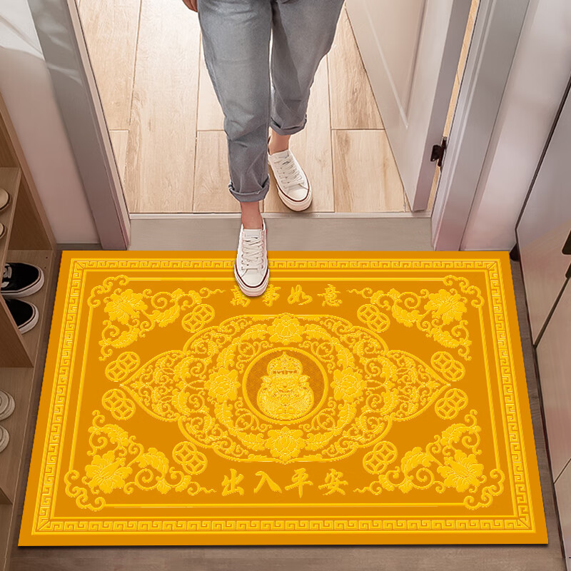 迎菲金色黄色入户门地垫脚垫2026年新款门垫进门口地垫玄关地垫可裁剪 赤金色-聚财(出入平安) 50cm*80cm 【皮革-横版】高*长